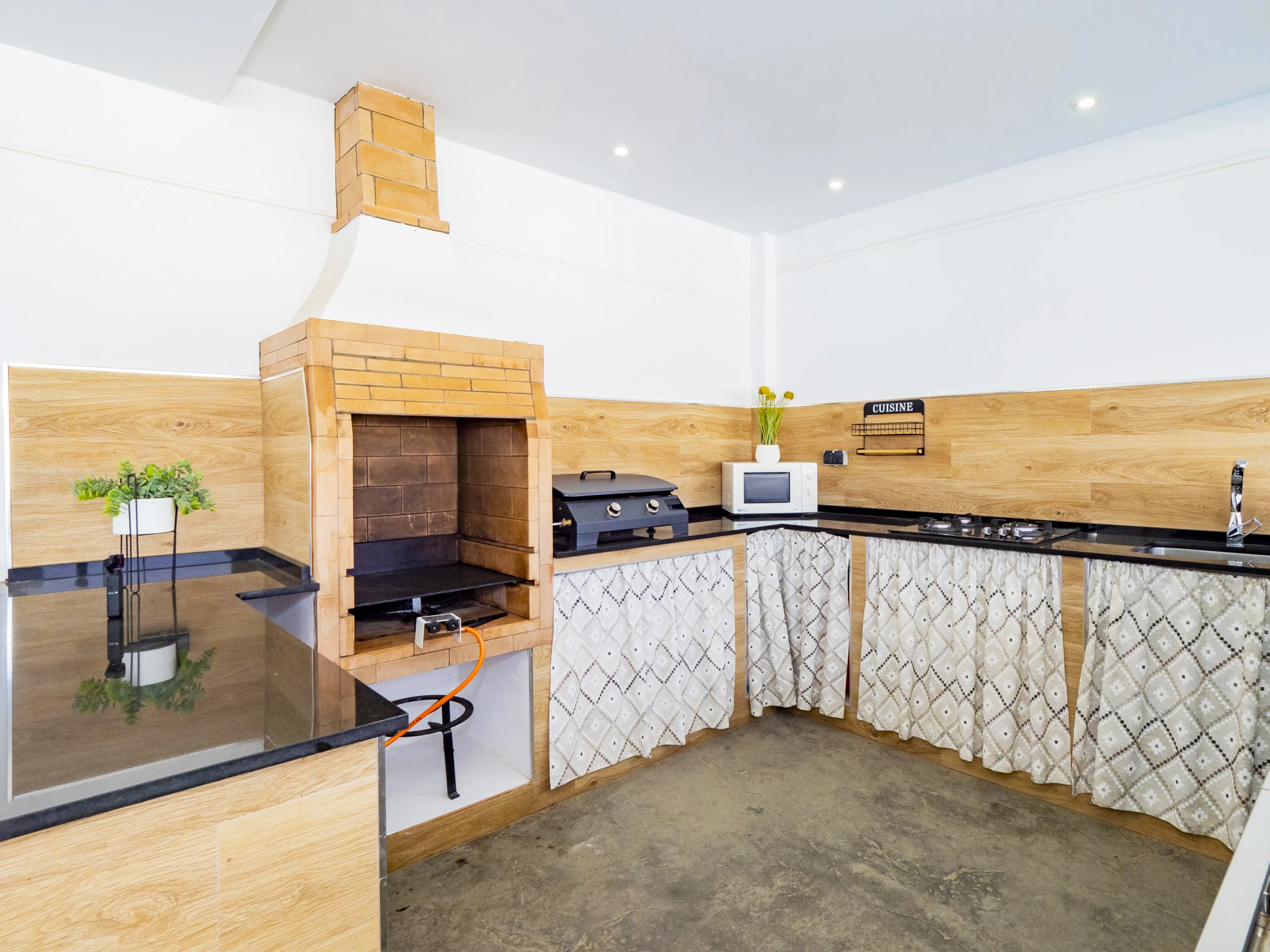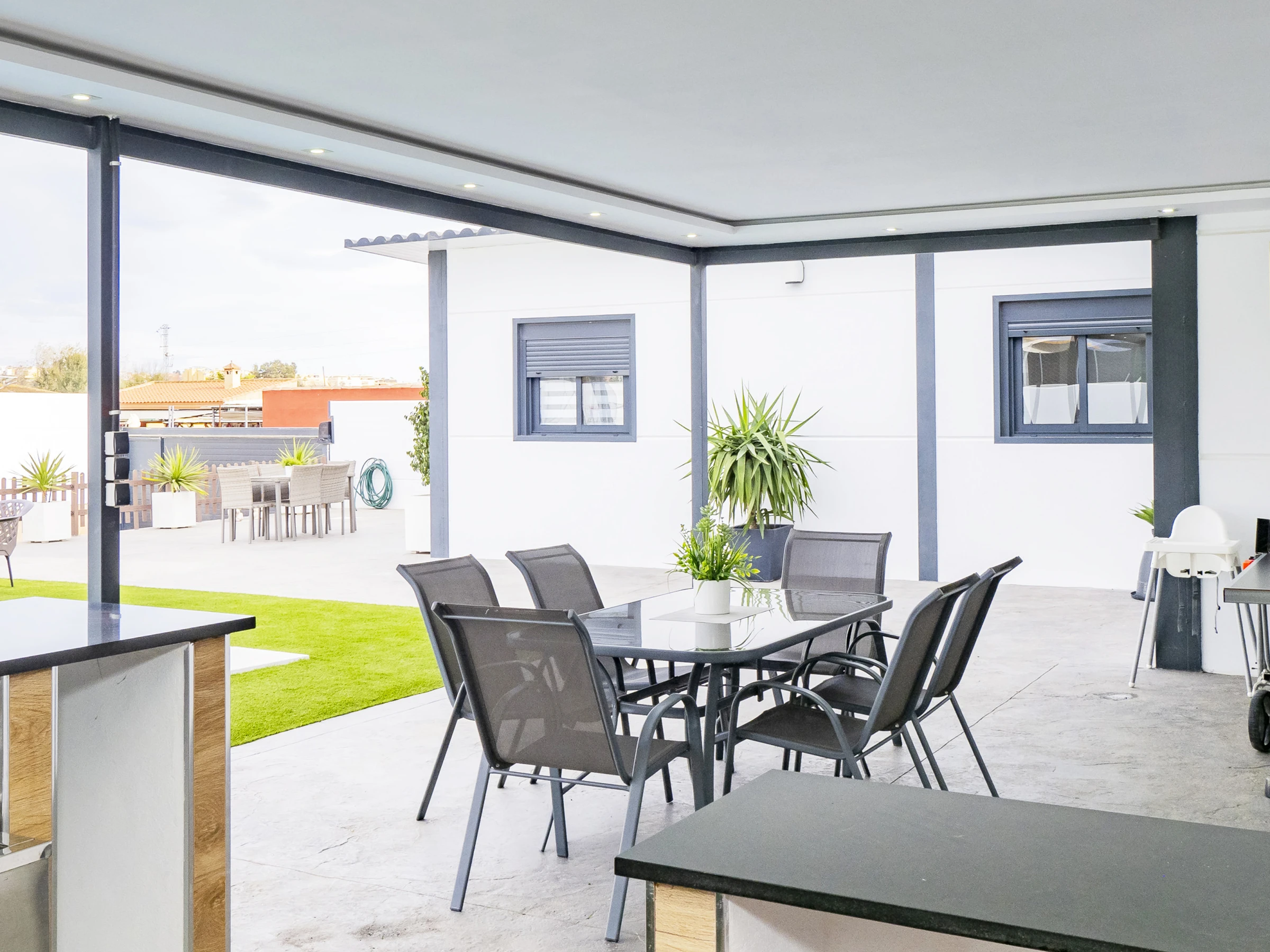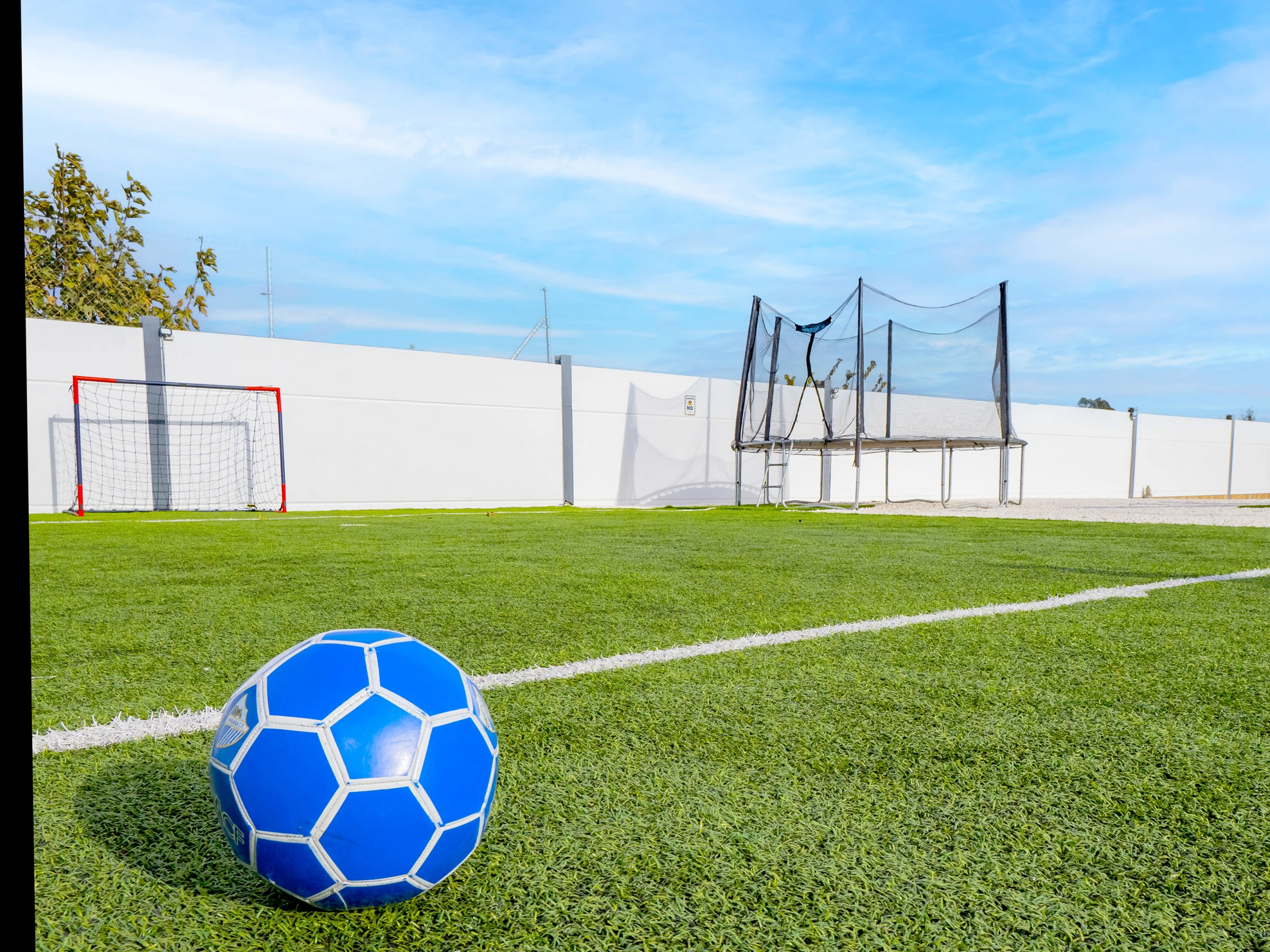 À l'extérieur, l'espace est un véritable paradis pour les loisirs familiaux. La piscine privée se distingue, idéale pour se rafraîchir et profiter du soleil, un terrain de football privé pour les amateurs de sport et un trampoline qui promet des heures de divertissement pour les plus jeunes. De plus, la cuisine extérieure couverte avec des meubles de jardin crée l'ambiance parfaite pour des dîners en plein air et des soirées inoubliables sous les étoiles.