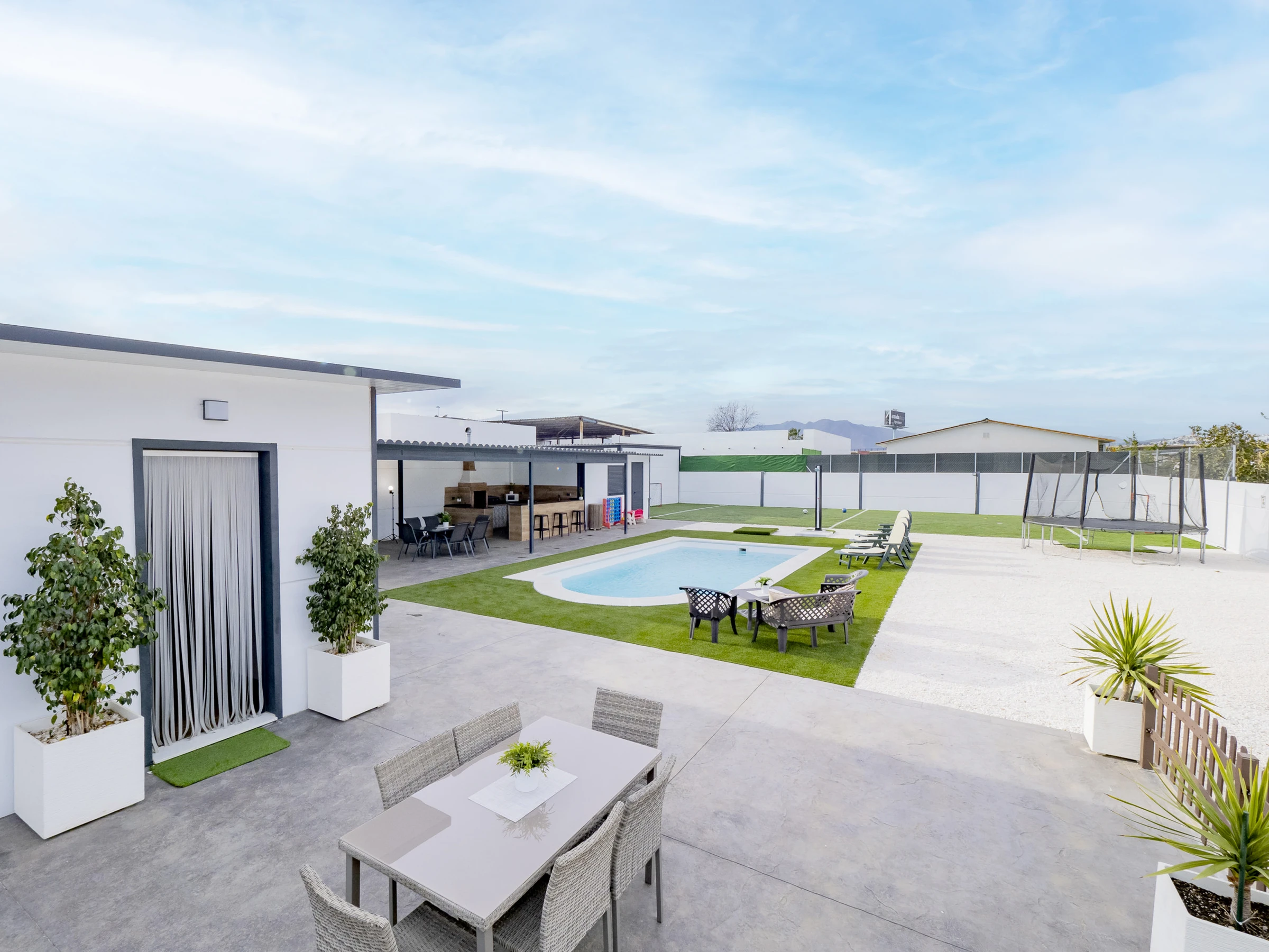 Profitez d'une charmante maison de campagne avec piscine privée et terrain de football à Las Lagunas, Fuengirola, parfaite pour les familles et les groupes de jusqu'à 6 personnes, combinant confort et loisirs sur la Costa del Sol. 🌞🏡⚽