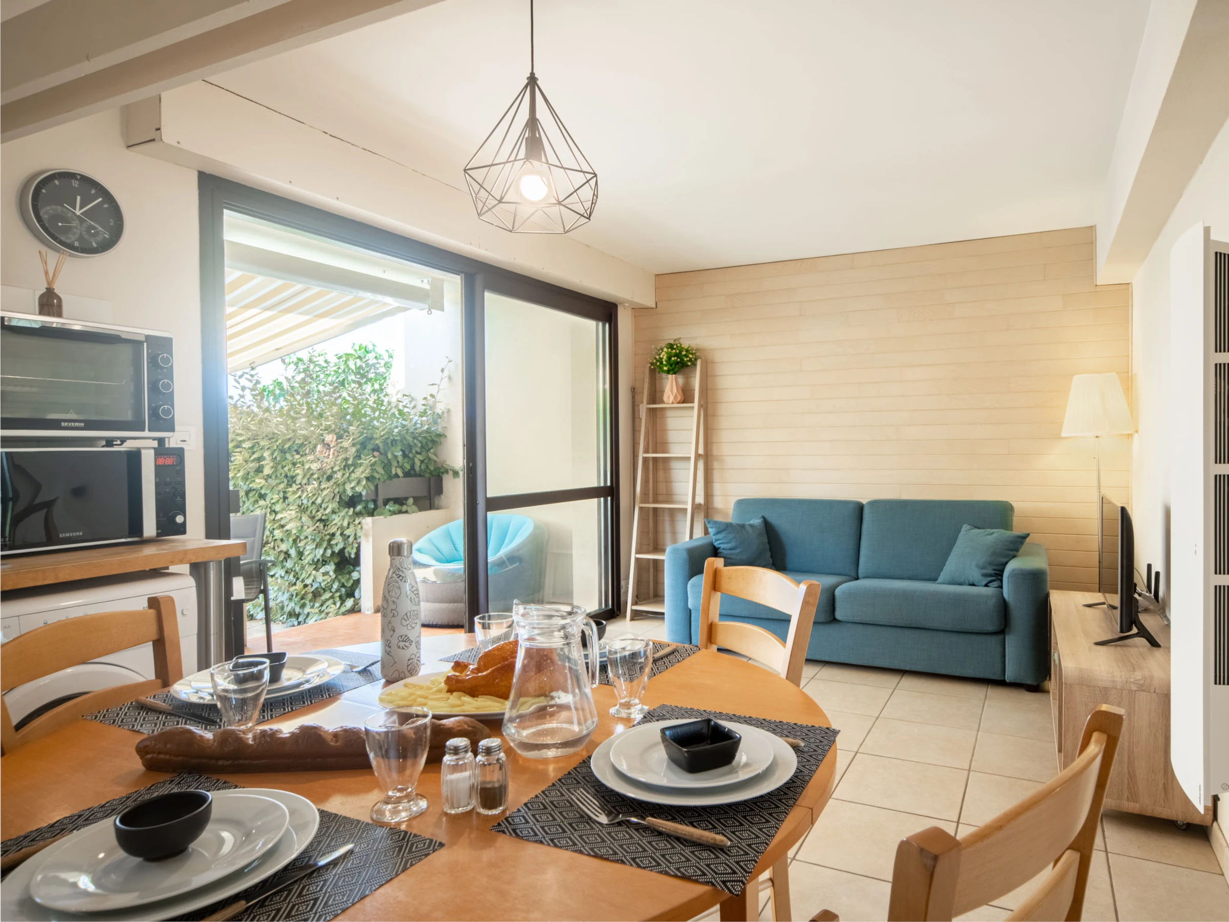 Apt 2 pièces 40 m2, au rez-de-chaussée. Aménagement confortable et agréable: séjour/salle à manger avec 1 divan-lit double (1 x 140 cm, longueur 190 cm), TV et chaînes de TV internationales (écran plat). 1 chambre avec 1 grand-lit (1 x 140 cm, longueur 190 cm). Cuisine ouverte (four, lave-vaisselle, 1 plaques à induction, 4 feux, grille-pain, bouilloire électrique, micro-ondes, cafetière électrique). Douche/WC. Chauffage électrique. Terrasse 20 m2. Meubles de terrasse. A disposition: lave-linge, fer à repasser. Internet (Connexion WIFI, gratuit). Place de parking (1 Voiture). Veuillez noter: logement non-fumeur. Maximum 1 animal/ chien autorisé. Détecteur de fumée. Annonce d'un particulier (art 155, IV du CGI).