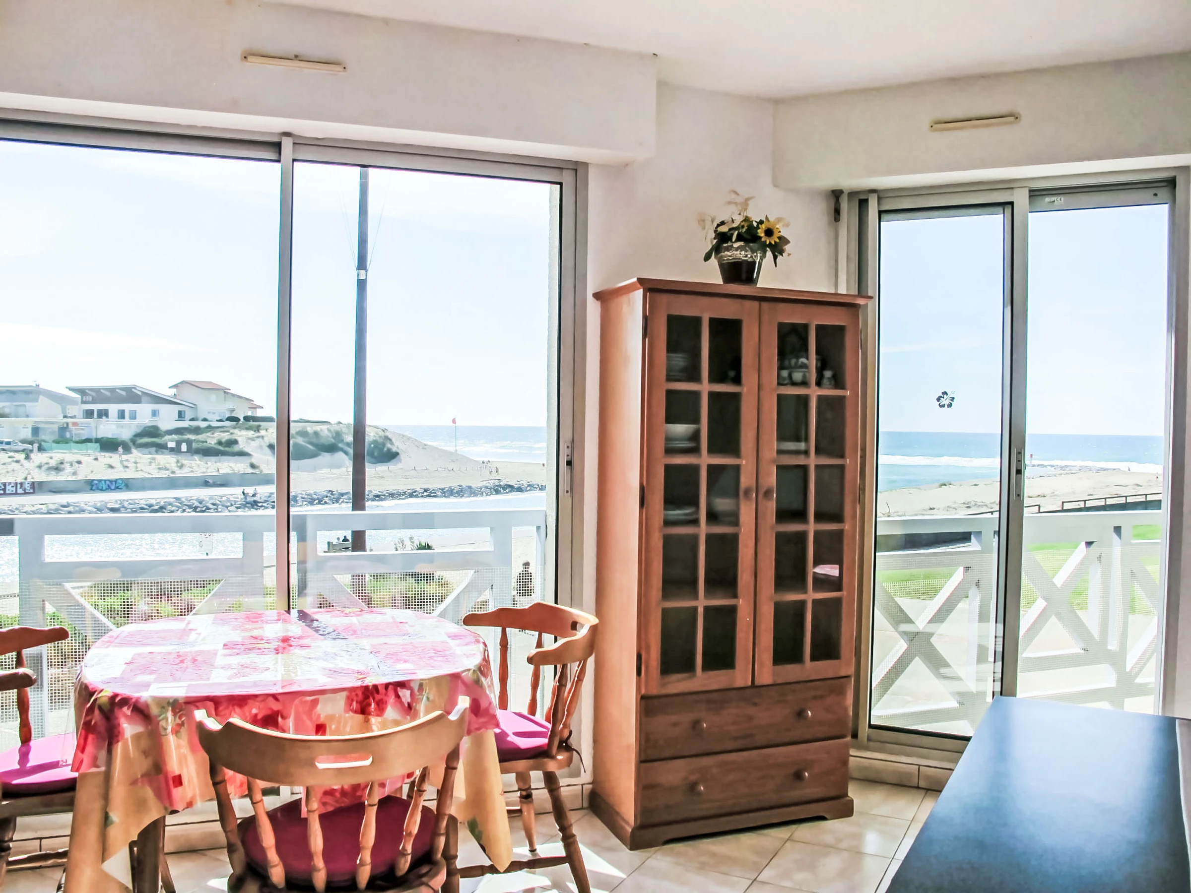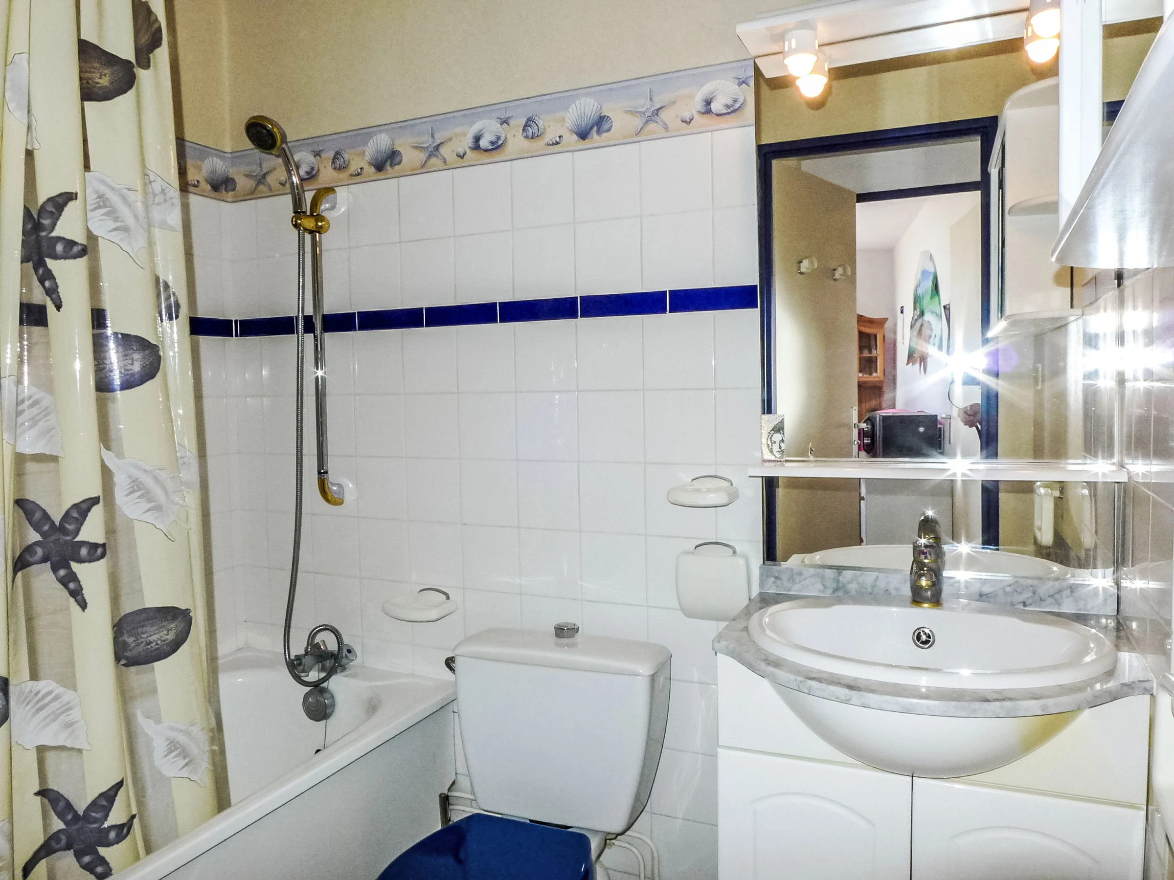 Studio 28 m2 au 1er étage. Logement idéal pour 2 adultes + 1 enfant. Séjour/chambre à coucher avec 1 divan-lit, 1 grand-lit et TV (écran plat). Sortie sur le balcon. Coin cuisine (lave-vaisselle, 2 plaques vitrocéramiques, micro-ondes). Bain/WC. Chauffage électrique. Balcon. Mobilier de balcon. Vue sur la mer. A disposition: Internet (Connexion WIFI, en sus). Veuillez noter: TV seulement FR. Détecteur de fumée.