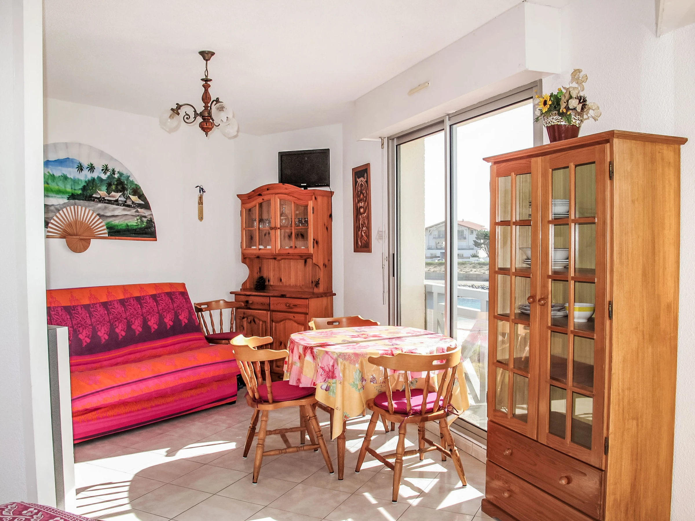 Studio 28 m2 au 1er étage. Logement idéal pour 2 adultes + 1 enfant. Aménagement agréable: séjour/chambre à coucher avec 1 divan-lit, 1 grand-lit et TV (écran plat). Sortie sur le balcon. Coin cuisine (lave-vaisselle, 2 plaques vitrocéramiques, micro-ondes). Bain/WC. Chauffage électrique. Balcon. Mobilier de balcon. Vue sur la mer. A disposition: Internet (Connexion WIFI, en sus). Veuillez noter: logement non-fumeur. TV seulement FR. Détecteur de fumée.