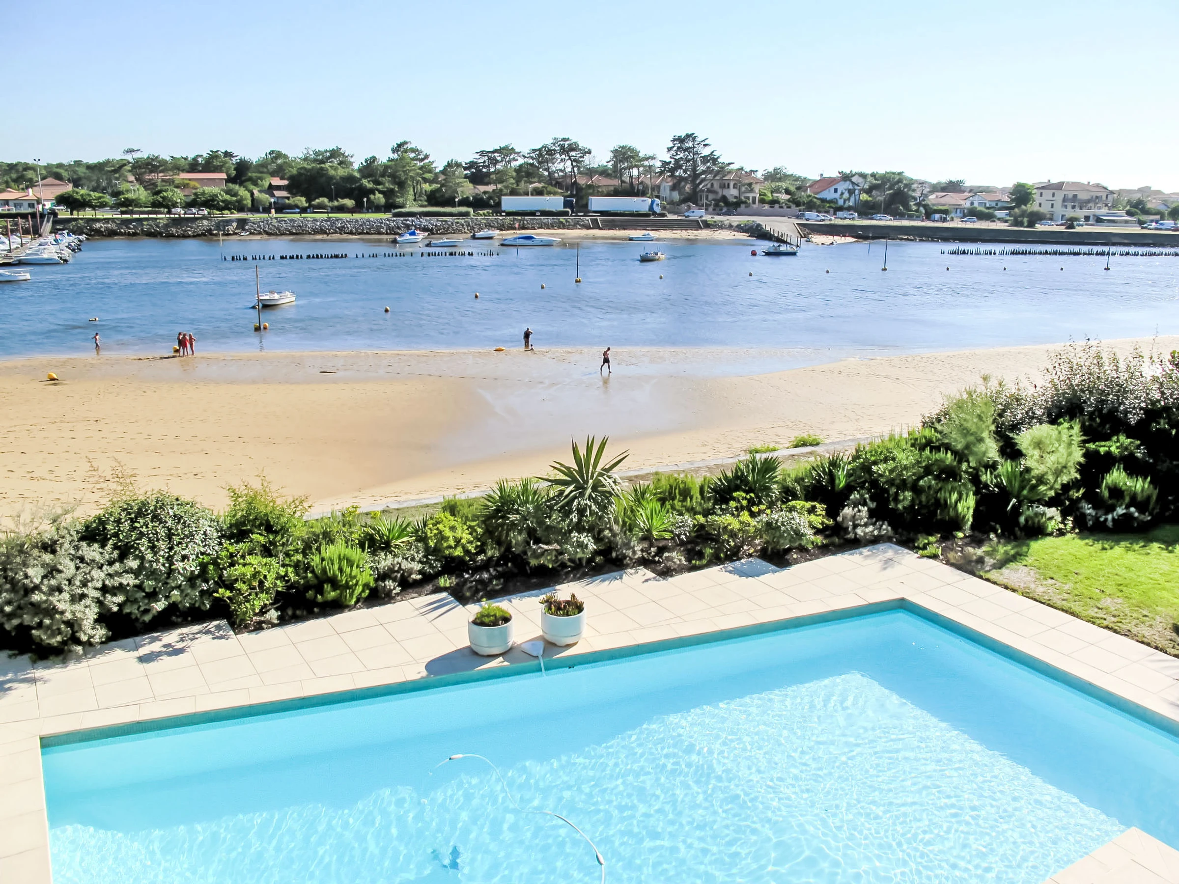 Maison individuelle "Les Pinasses". Dans la localité, à 400 m du centre de Mimizan Plage, à 900 m de la mer, à 900 m de la plage, à 200 m de la rivière. A usage privé: terrain 750 m2, jardin entretenu, pelouse et arbres, piscine (9 x 5 m, disponibilité saisonnière: [hidden] - [hidden] avec alarme de sécurité. Douche extérieure, place de parking sur le terrain, garage individuel. Supermarché 400 m, arrêt de bus 500 m, gare ferroviaire "Labouheyre" 30 km, plage de sable 900 m, piscine couverte 6 km, baignade en lac "Aureilhan" 10 km. Terrain de golf (9 trous) 6 km, ecole de surf 900 m, centre équestre 7 km. Attractions à proximité: Arcachon 70 km, Bordeaux 120 km, Biscarosse 40 km, Centre Nautique 7 km, Casino Mimizan Plage. Région de randonnées: Casino Mimizan Plage. Veuillez noter: terrain en pente.