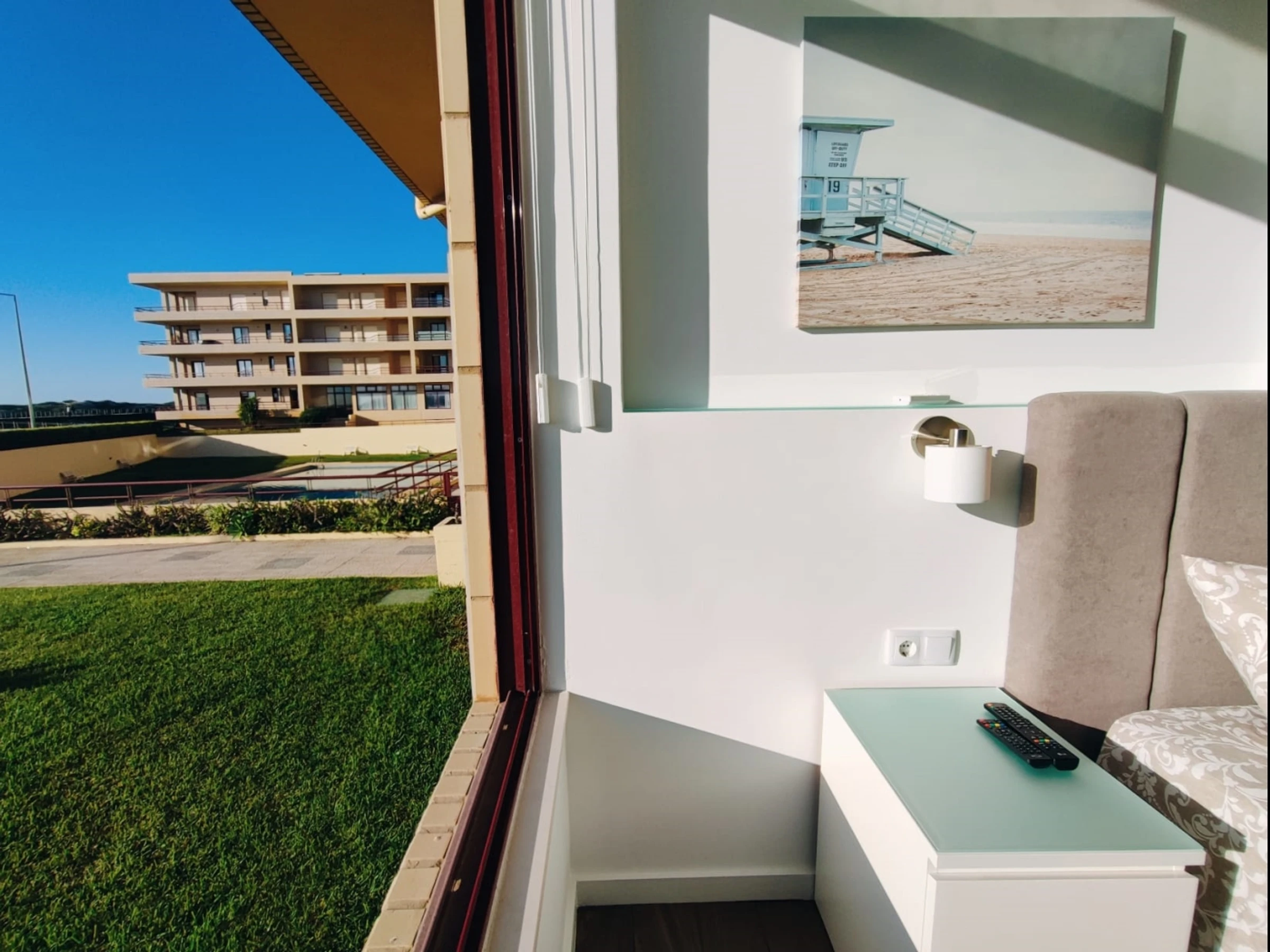 Ici, vous pouvez choisir de vous baigner dans la piscine de la copropriété ou à la plage, en traversant simplement la dune en face, par un chemin en bois qui invite à la promenade à pied ou à vélo.