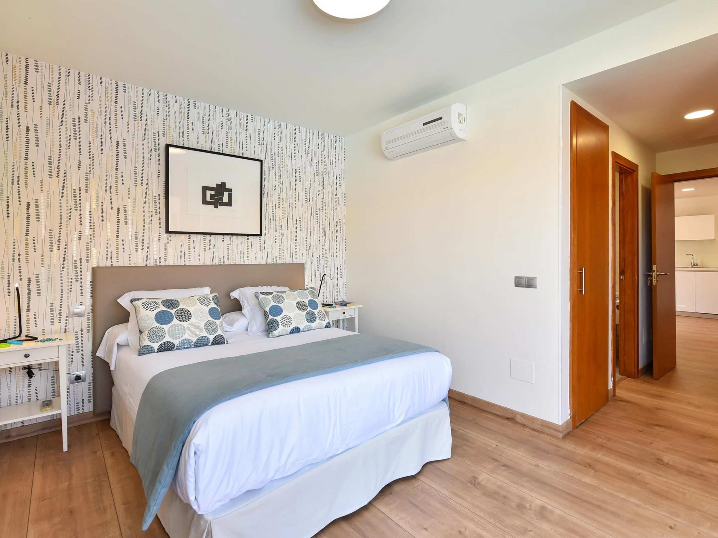 Elle dispose de terrasse, lave-linge, sèche-linge, barbecue, fer à repasser, coffre-fort, accès internet, chauffage central, climatisation, piscine collective, 1 Télévision.