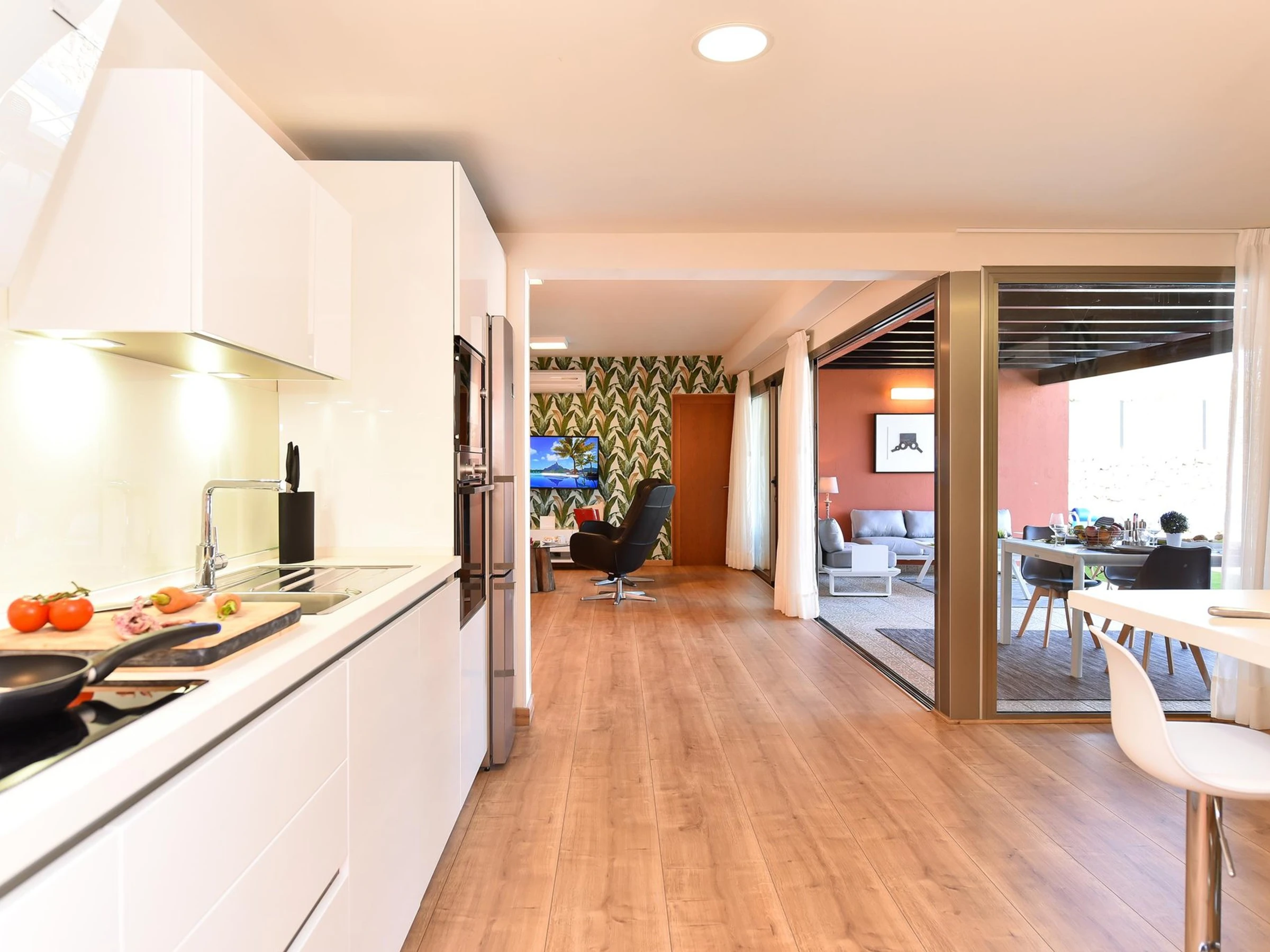 La cuisine, est équipée avec réfrigérateur, micro-ondes, four, congélateur, lave-vaisselle, cafetière, grille pain et bouilloire.