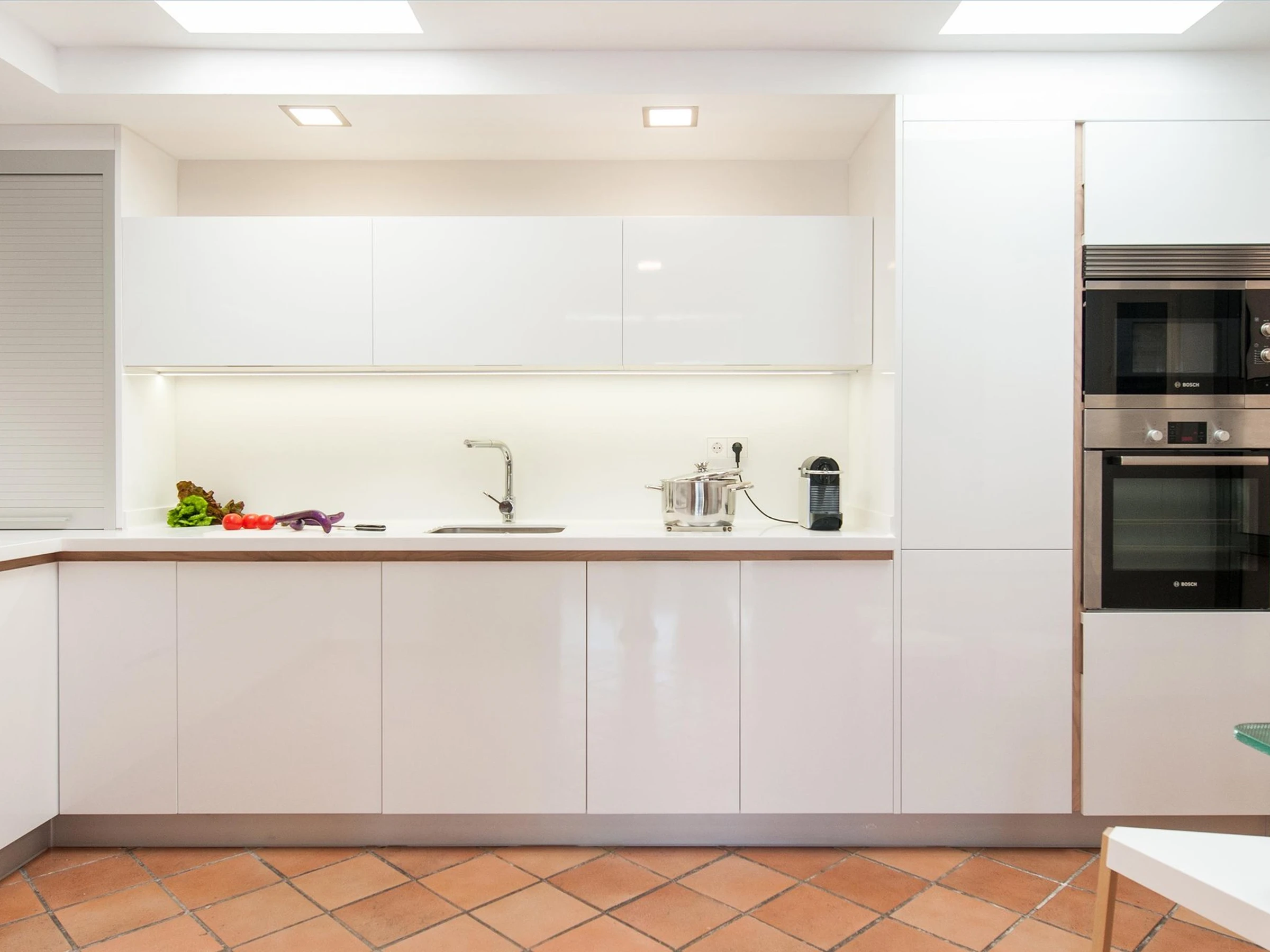 La cuisine, est équipée avec réfrigérateur, micro-ondes, four, congélateur, lave-vaisselle et cafetière.