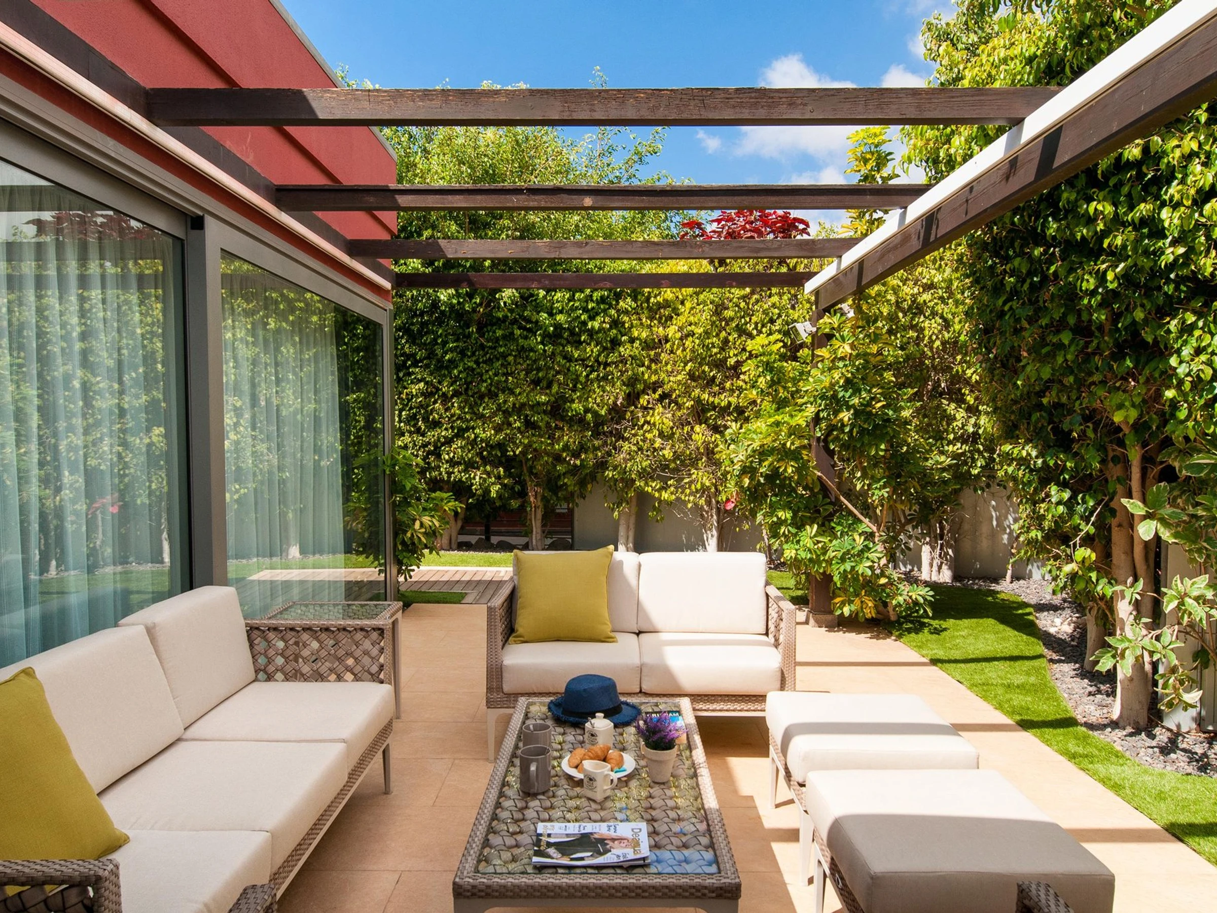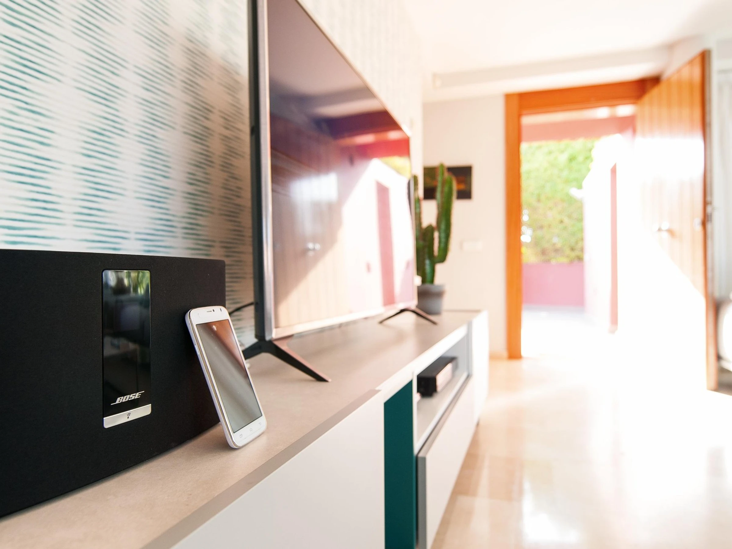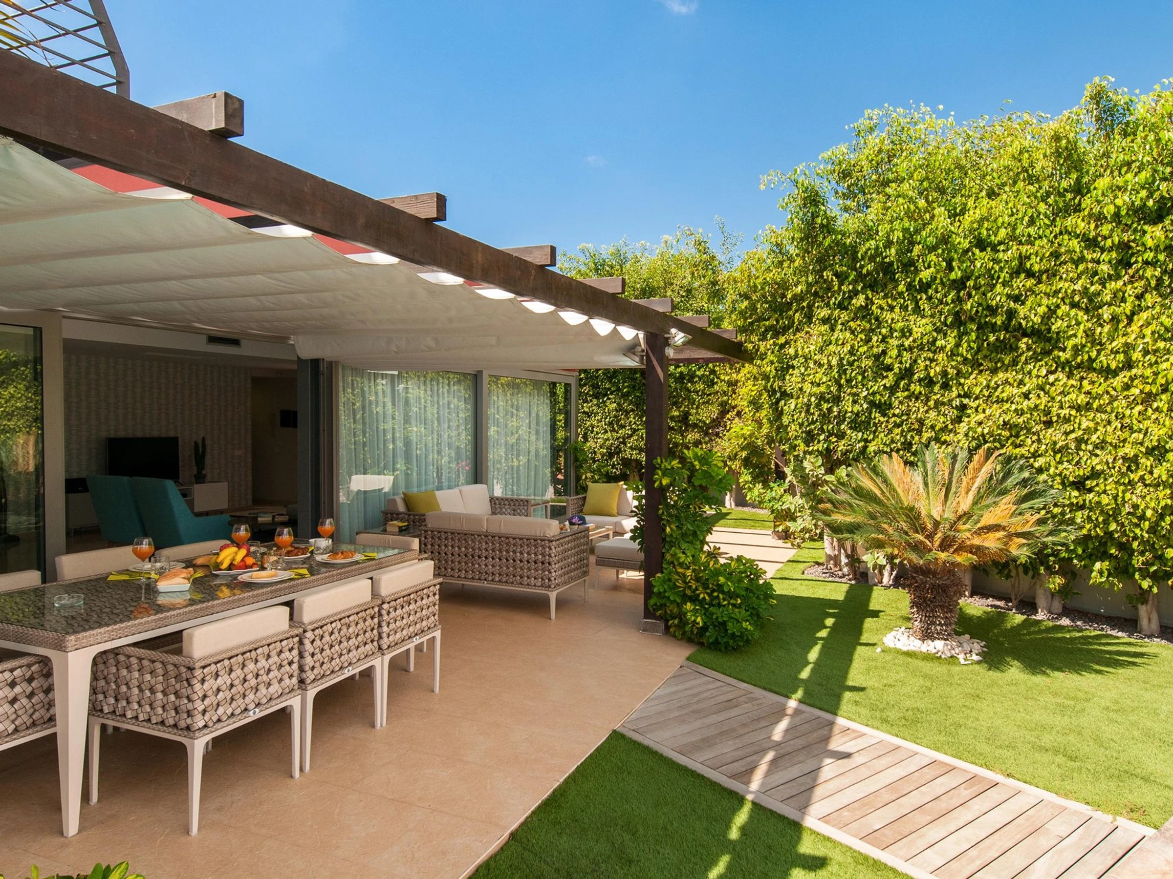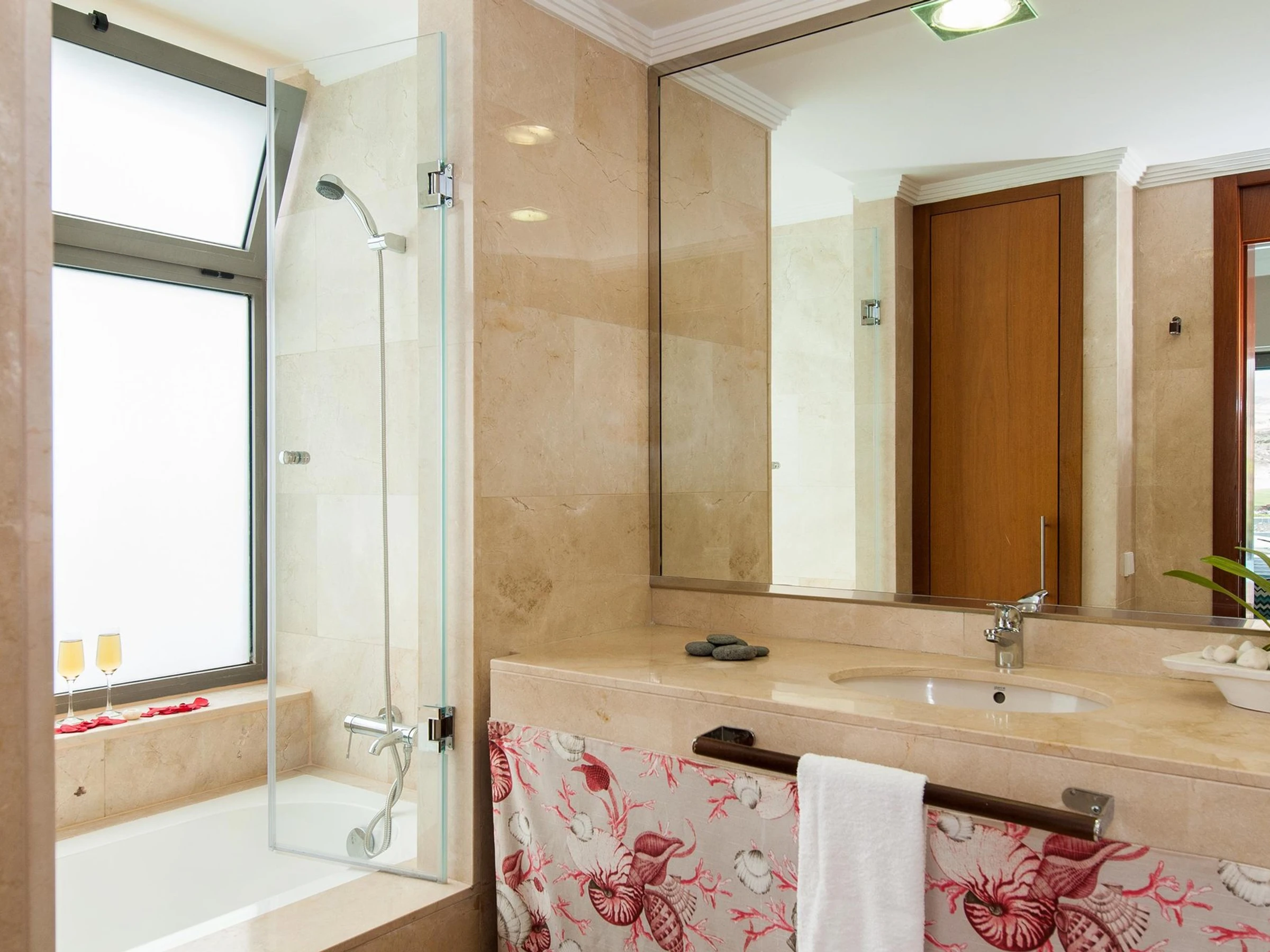 Elle dispose de lave-linge, sèche-linge, barbecue, fer à repasser, coffre-fort, accès internet, balcon, climatisation, piscine collective, piscine chauffée privée, 1 Télévision.