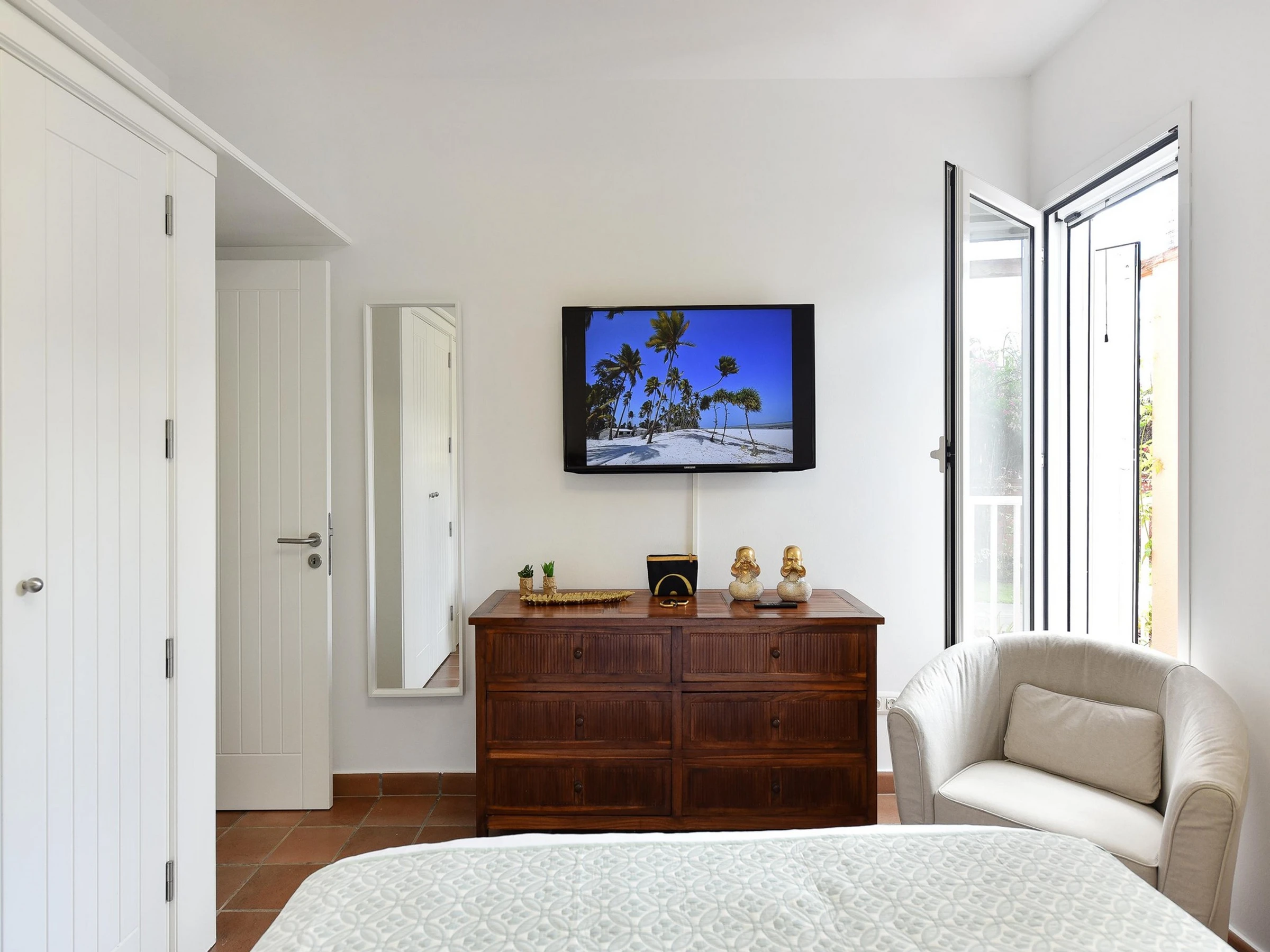 Elle dispose de terrasse, sèche-linge, barbecue, fer à repasser, accès internet, climatisation, piscine collective, piscine chauffée privée, 1 Télévision.