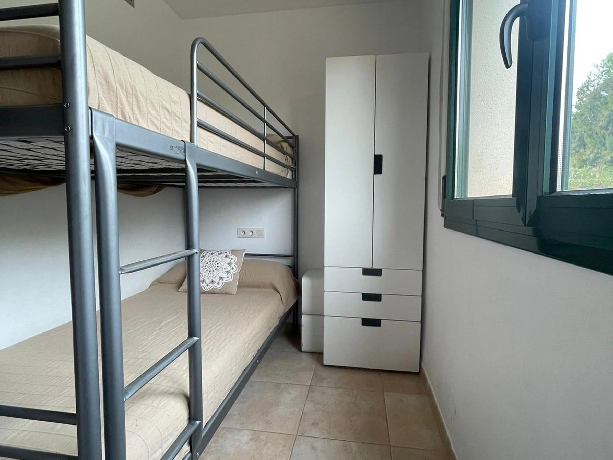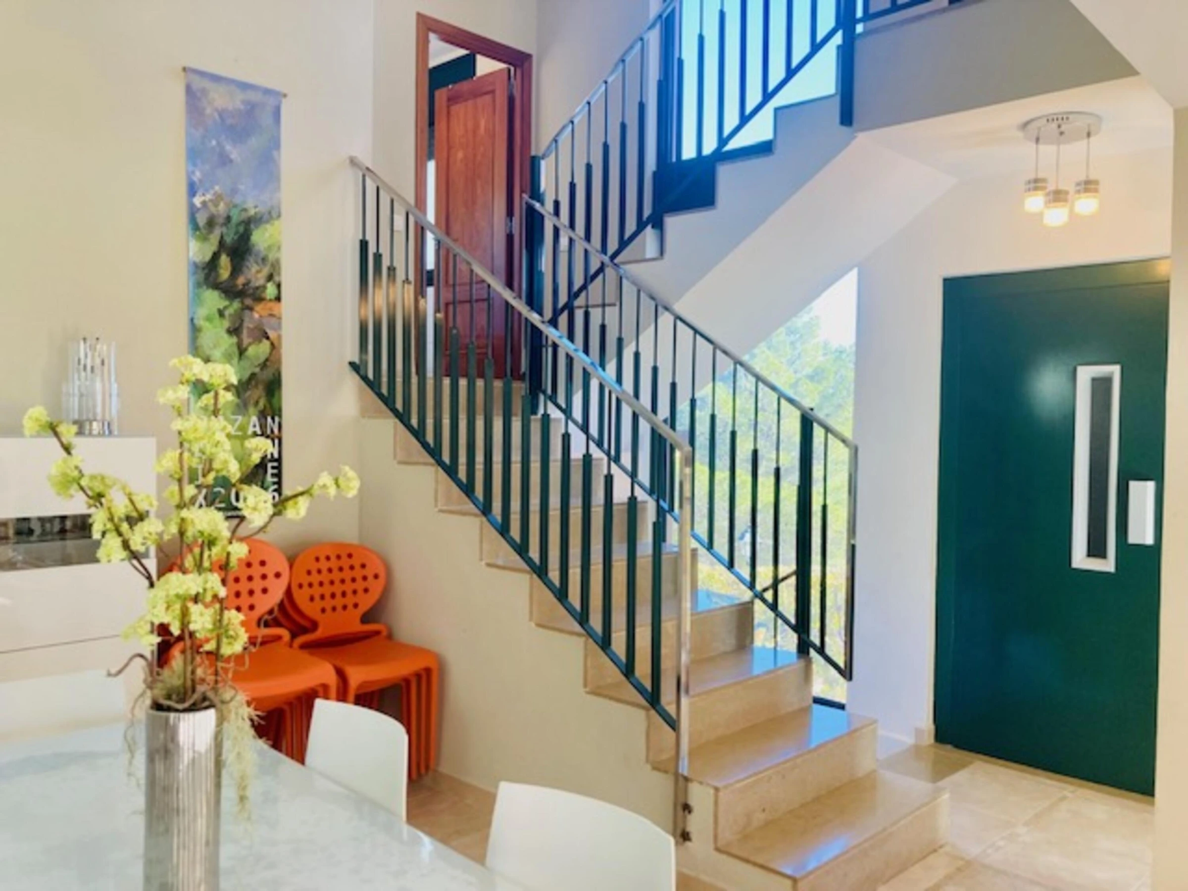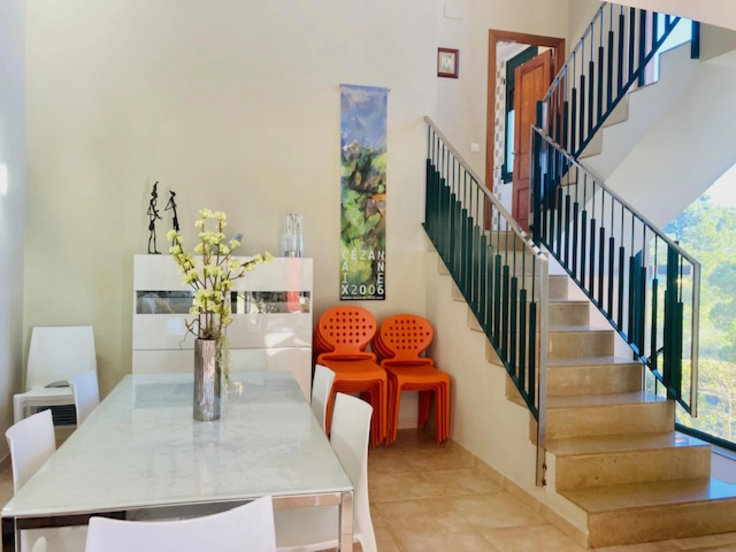 Ce logement élégant est idéal pour les séjours en groupe. Situé dans l'urbanisation du Bonmont Terres Noves Golf Club, il comprend quatre chambres doubles, deux avec lits superposés et deux avec lits doubles. La chambre principale dispose d'une salle de bains privative avec baignoire. Deux autres salles de bains sont à disposition. Le séjour/salle à manger s'ouvre sur un jardin avec barbecue et vue sur le golf. Une cuisine séparée et entièrement équipée est également incluse. Un garage privé avec accès direct à la maison est fourni. La climatisation centrale est installée. Les résidents ont accès à une piscine commune. Réservez vos vacances dans cette urbanisation de luxe conçue pour la tranquillité et la détente. Le linge de lit et les serviettes ne sont pas fournis. La taxe de séjour est à régler à l'arrivée.