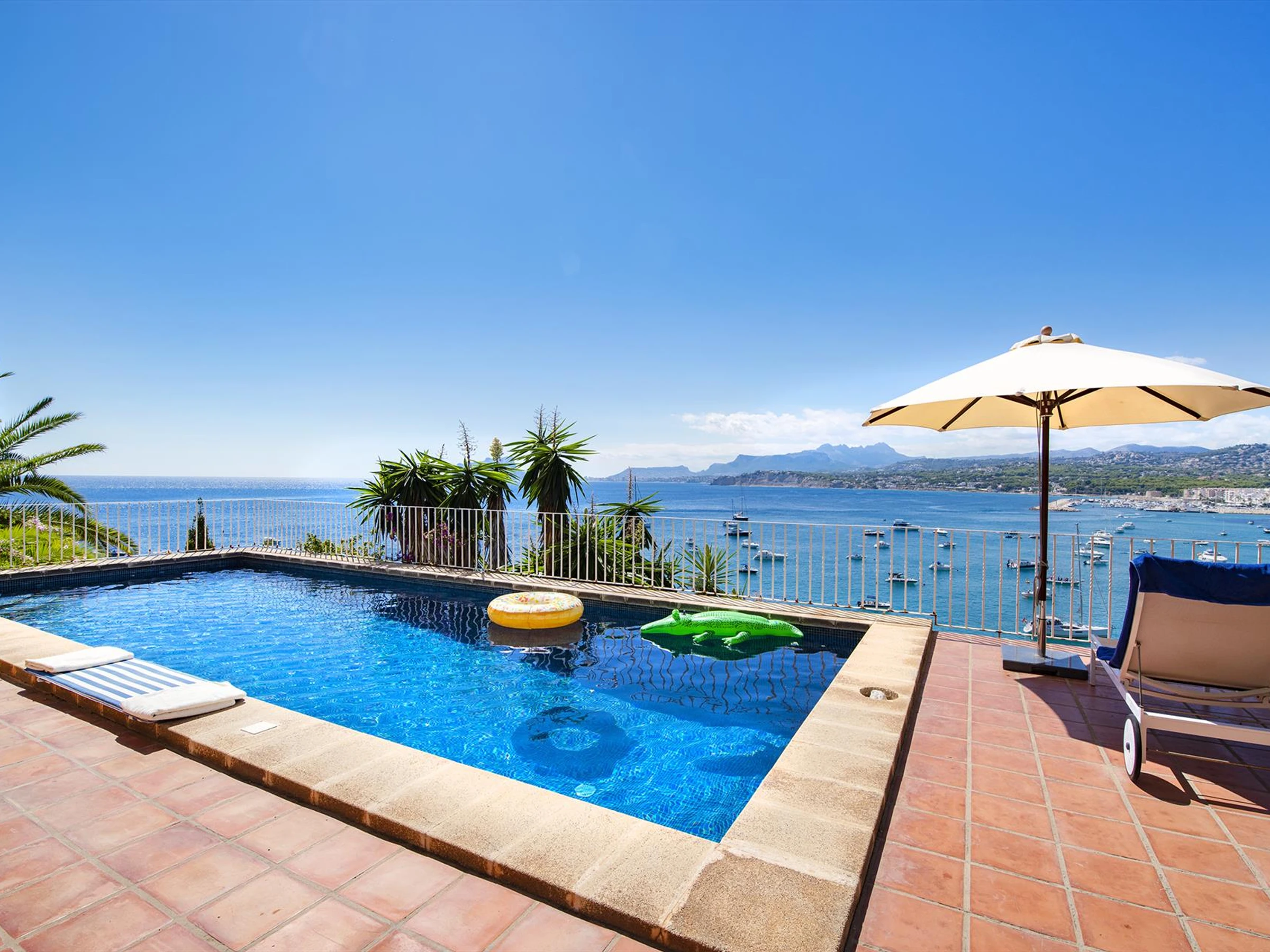 Villa merveilleuse et romantique avec piscine privée à Moraira, Costa Blanca, Espagne pour 4 personnes. La maison de vacances est située dans une région côtière, collineuse et résidentielle et à 1 km de la plage de El Portet.