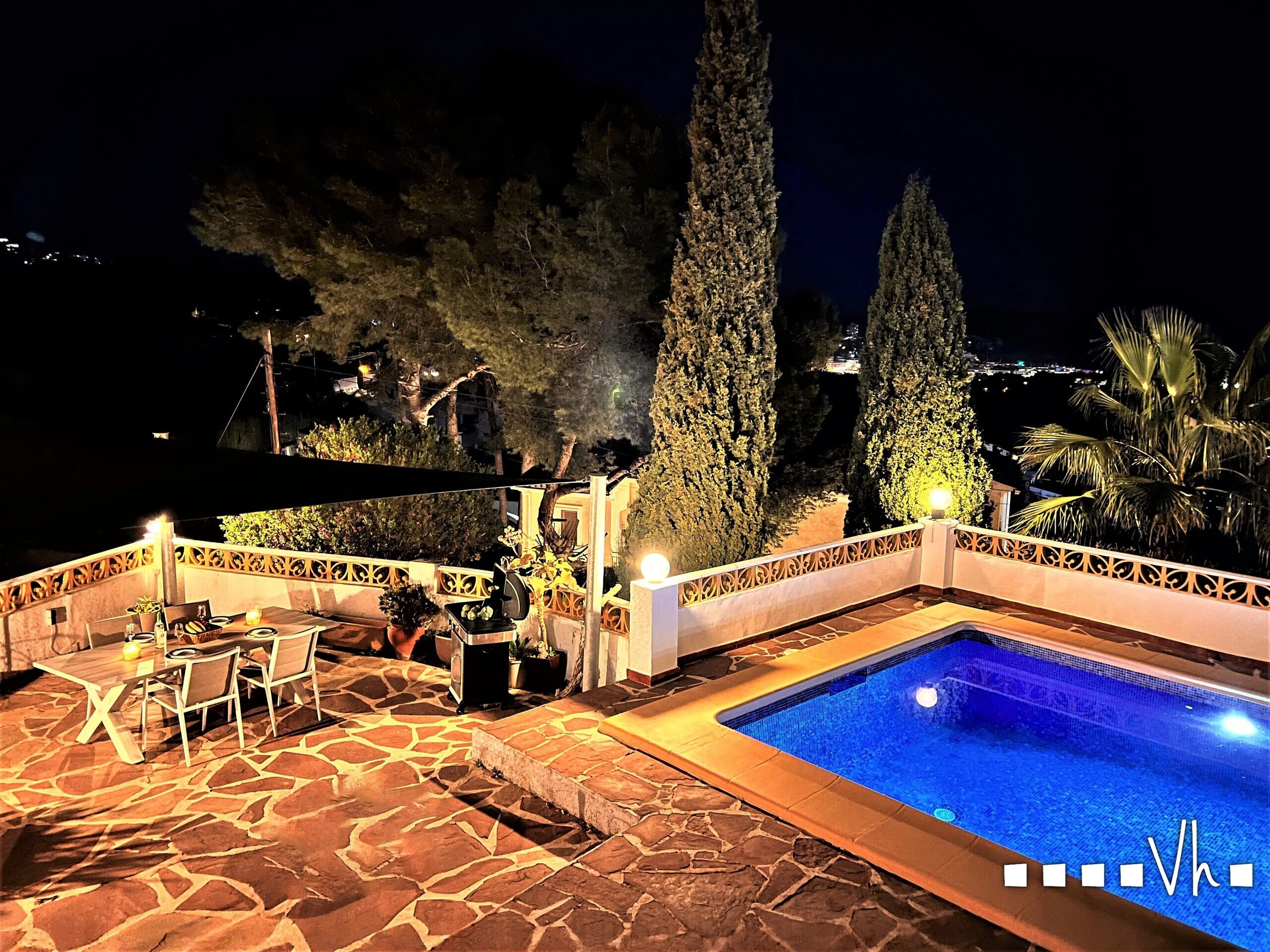 Située dans un lotissement calme et exclusif à Moraira, ville côtière de la province d'Alicante, la villa offre une vue panoramique sur la mer et le port de plaisance et dispose de tous les conforts pour des vacances inoubliables.