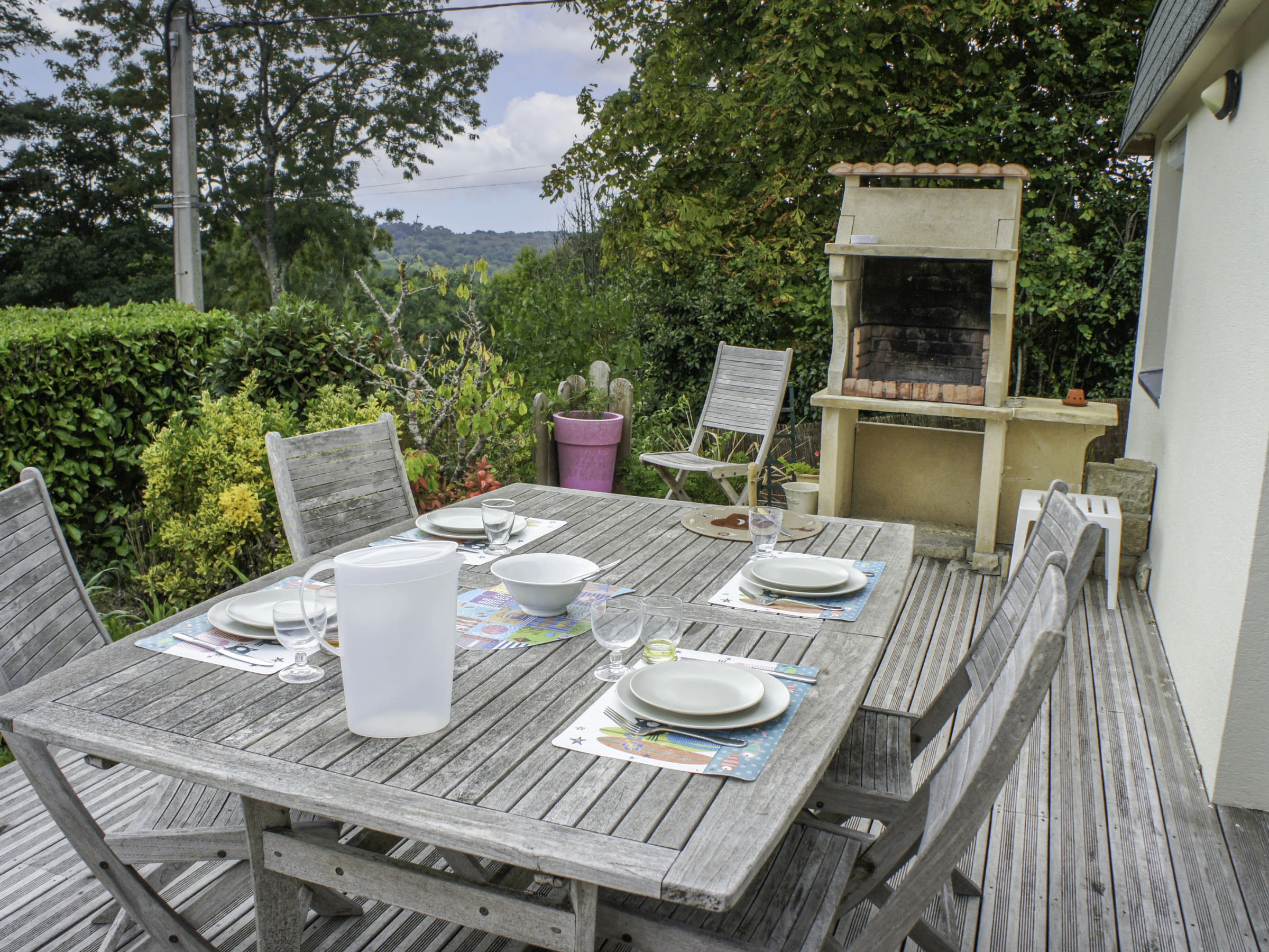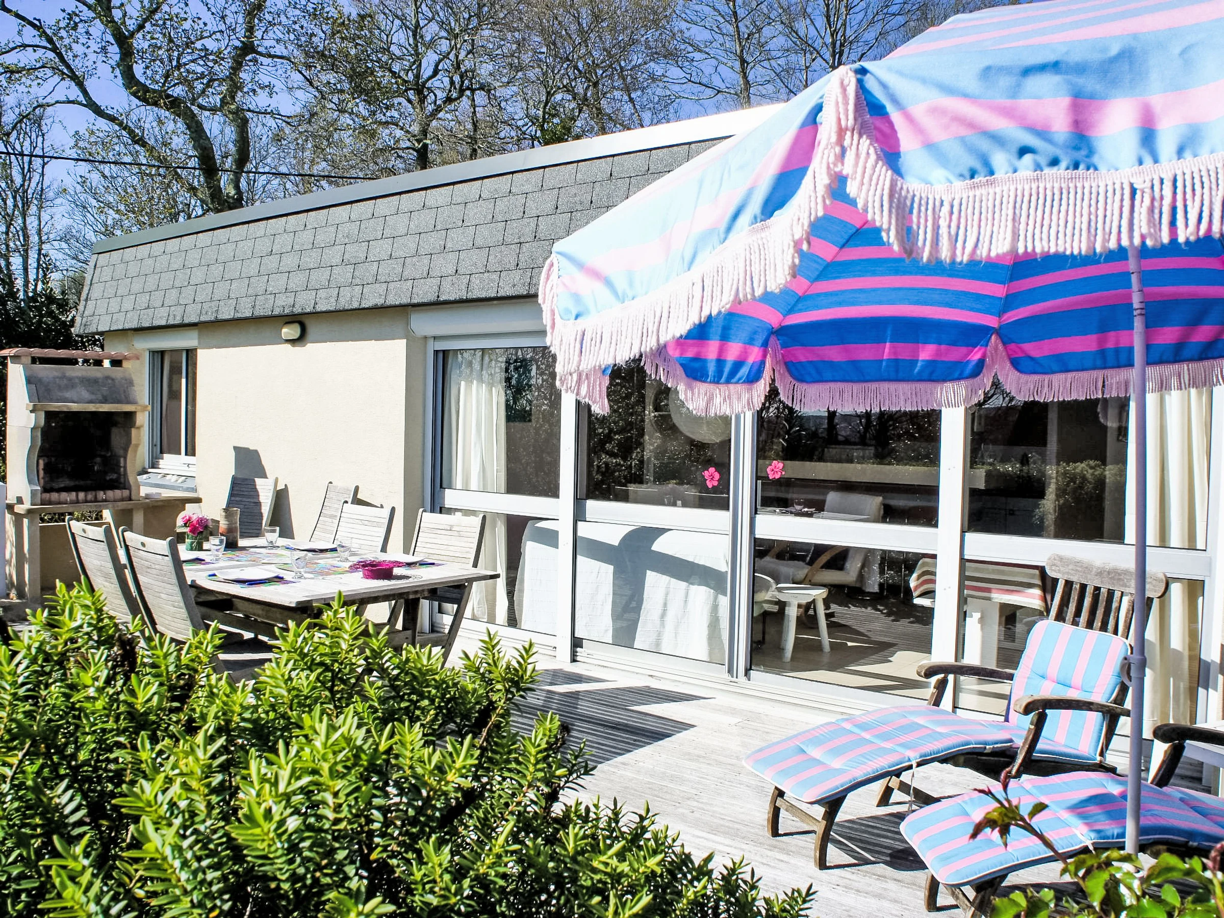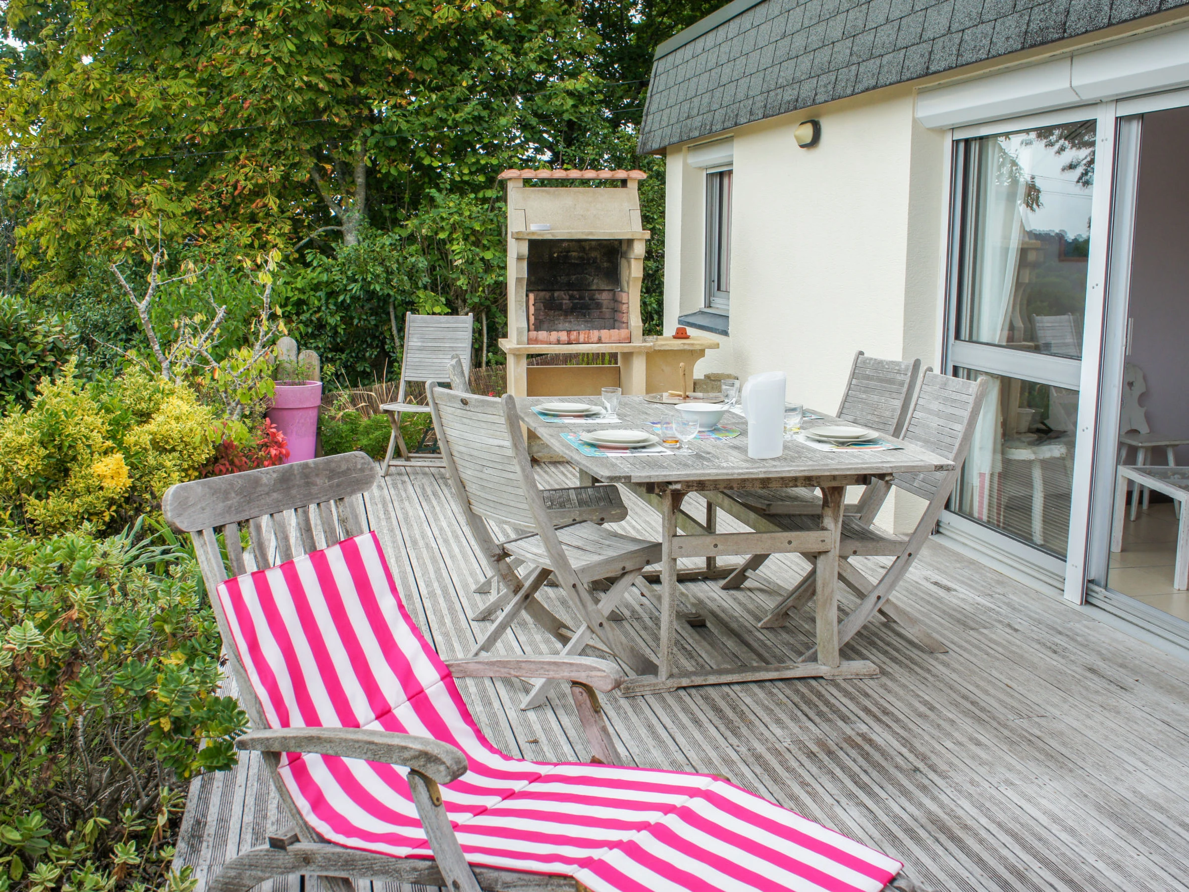 Maison individuelle accueillante "Gevanac". Dans le haut de la station de Crozon, à 700 m de la mer, à 700 m de la plage. A usage privé: jardin naturel 200 m2 (clôturé). Barbecue, place de parking. Magasins, magasin d'alimentation, restaurant 700 m, arrêt de bus 1 km, plage de sable "Le Portzic" 700 m, piscine 1 km. Marina 2 km. Attractions à proximité: Quimper 55 km, Locronan 34 km, Brest 59 km, Douarnenez 42 km. Veuillez noter: voiture recommandée. Maison située sur un terrain en pente, accessible par une dizaine de marches.