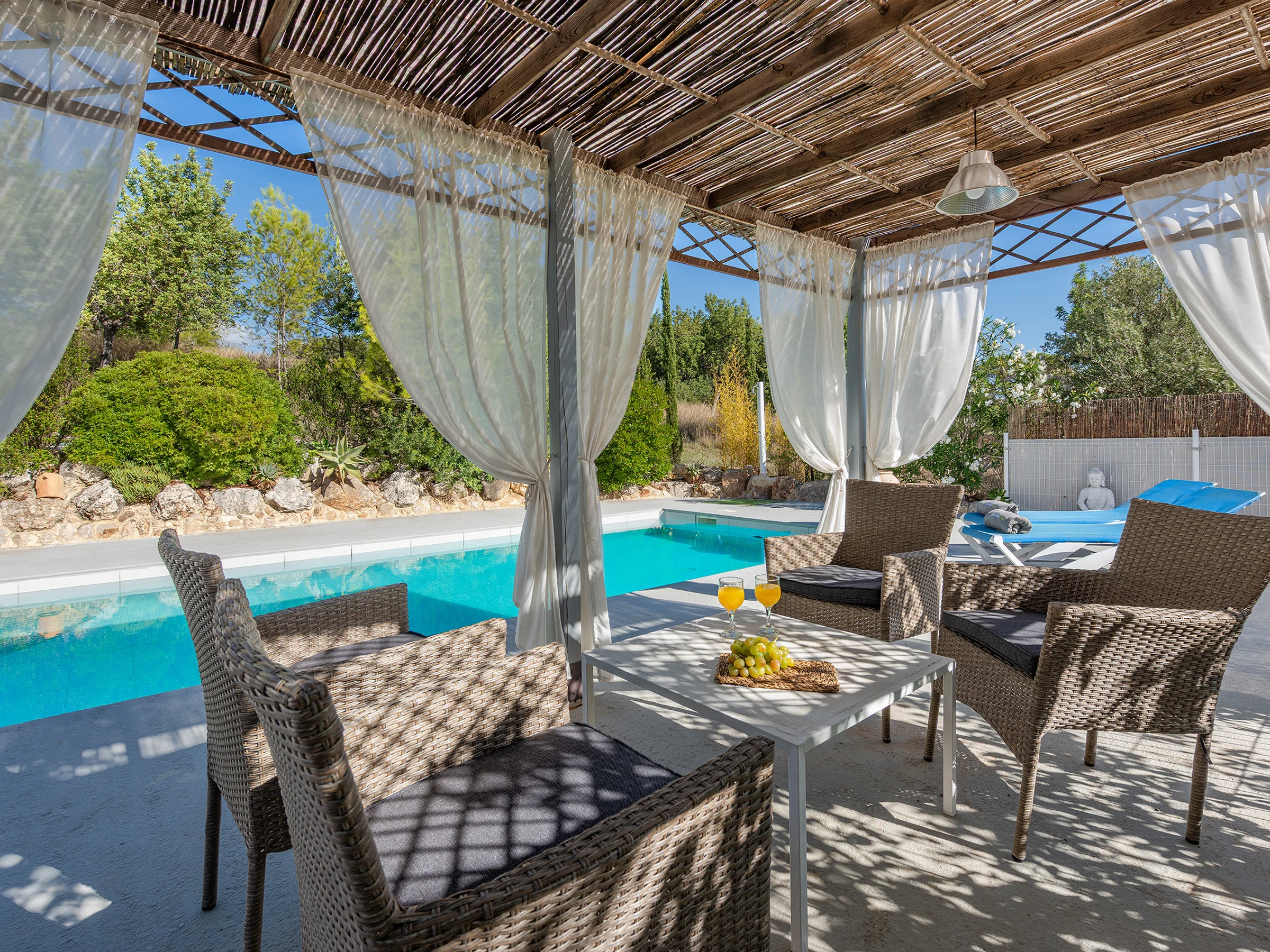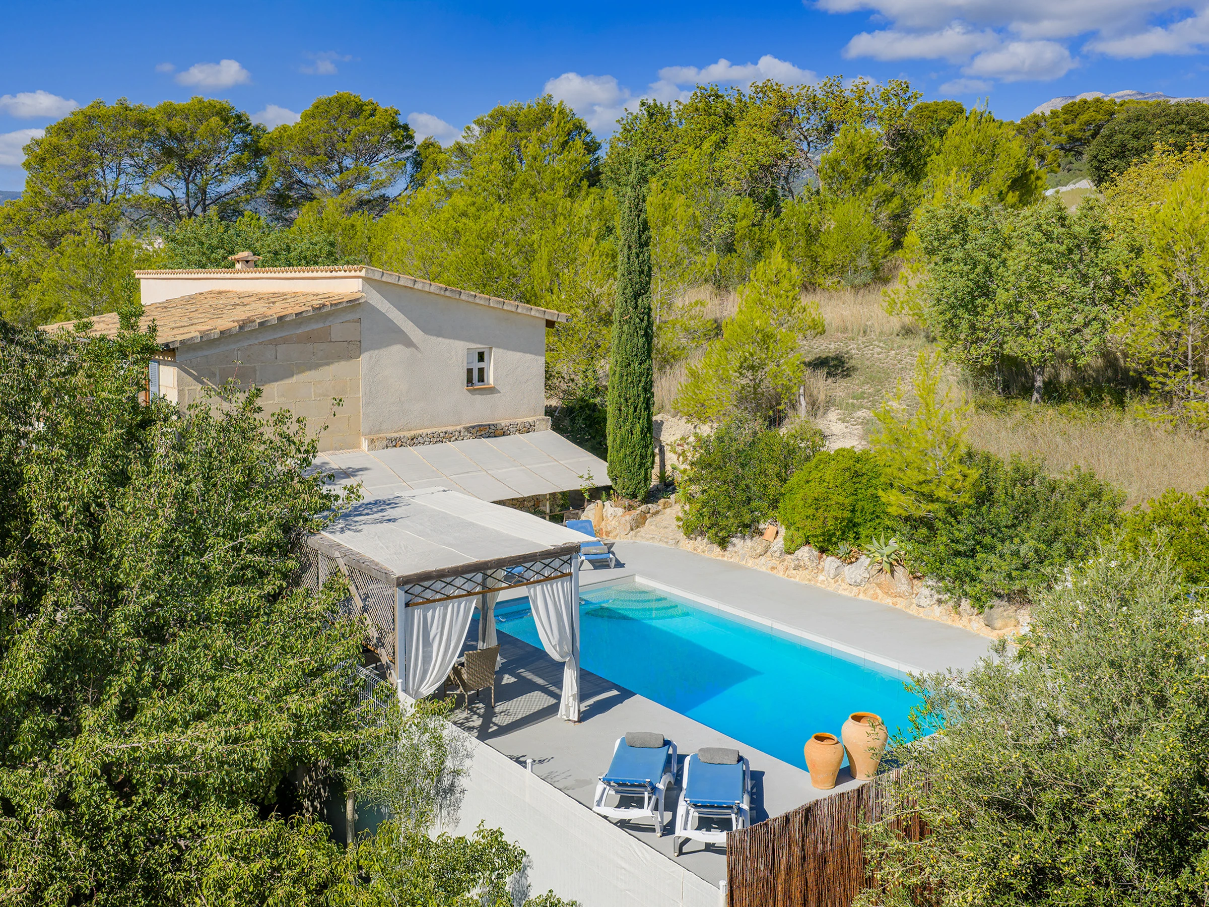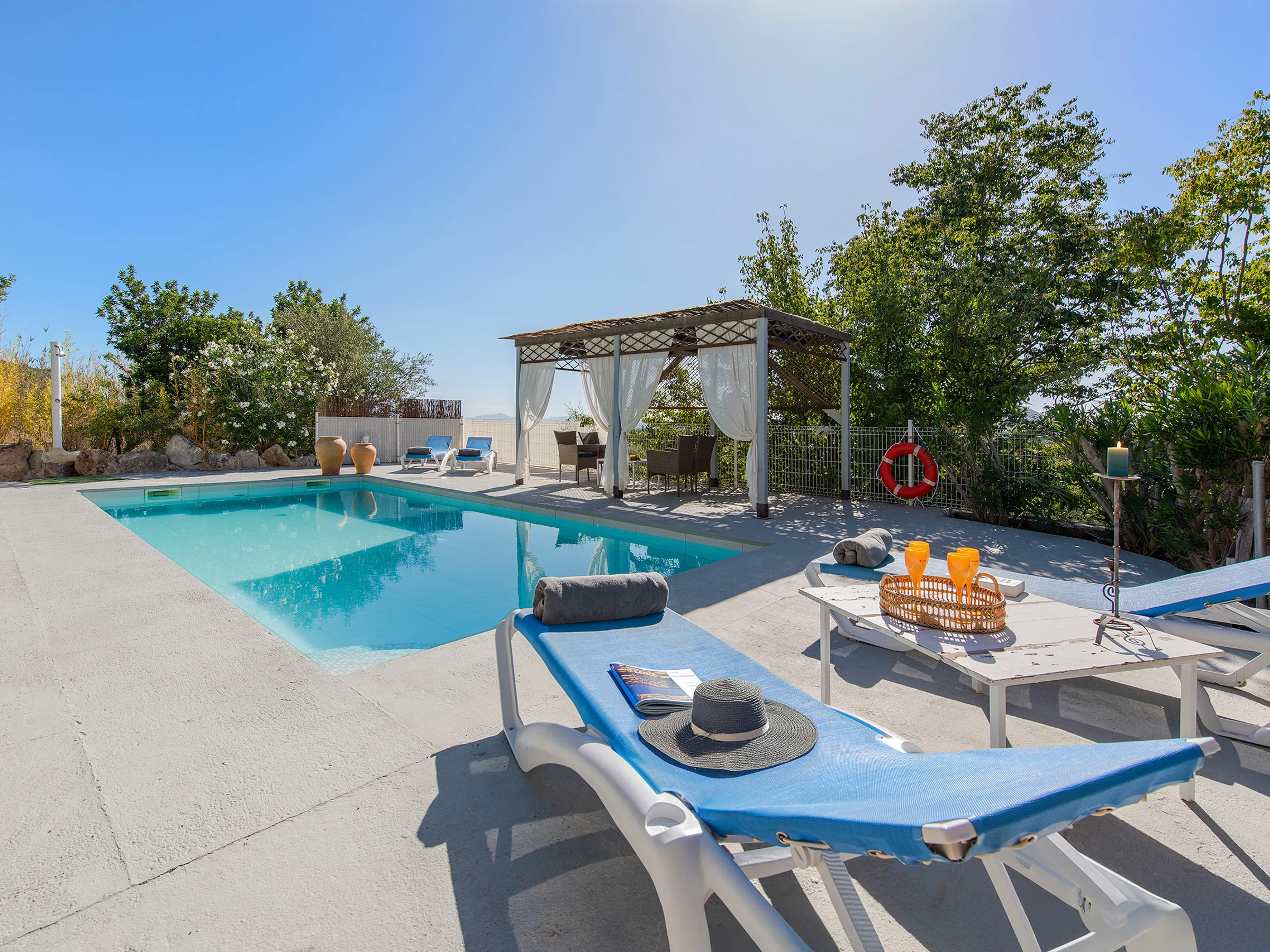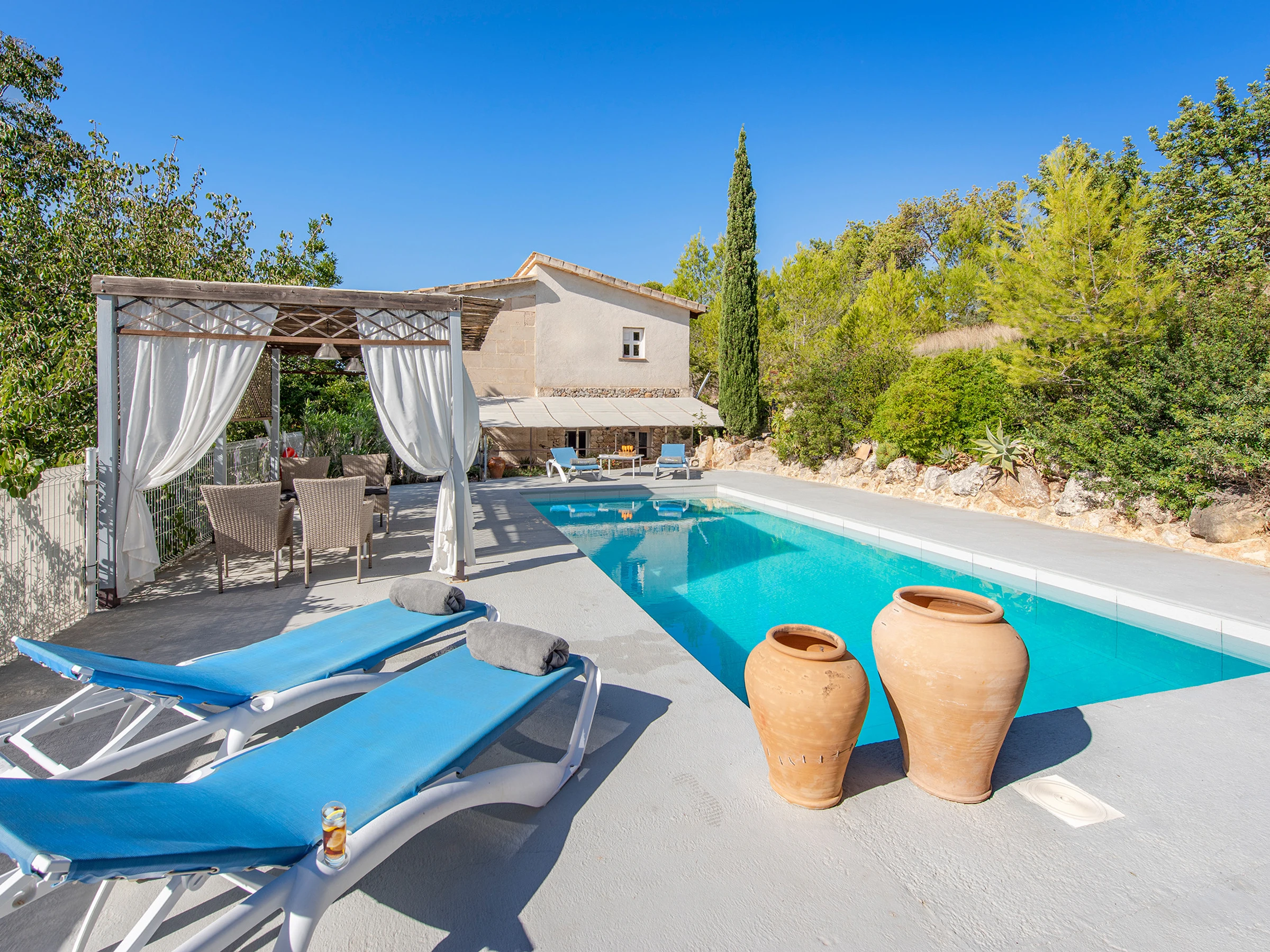Elle dispose de jardin, mobilier de jardin, clôture, terrasse, lave-linge, barbecue, cheminée, fer à repasser, accès internet (wifi), sèche-cheveux, balcon, chauffage pompe à chaleur, climatisation, piscine privée, parking extérieur même bâtiment, 1 ventilateur, TV, tv satellite (Langues: Espagnol, Anglais).