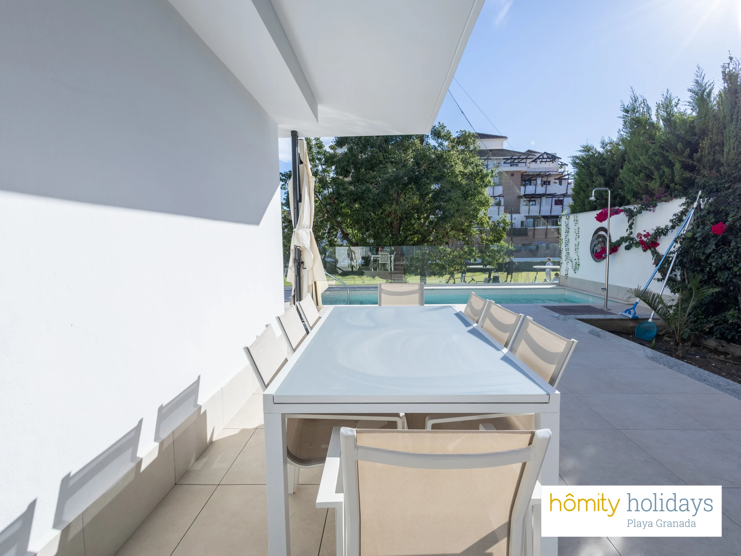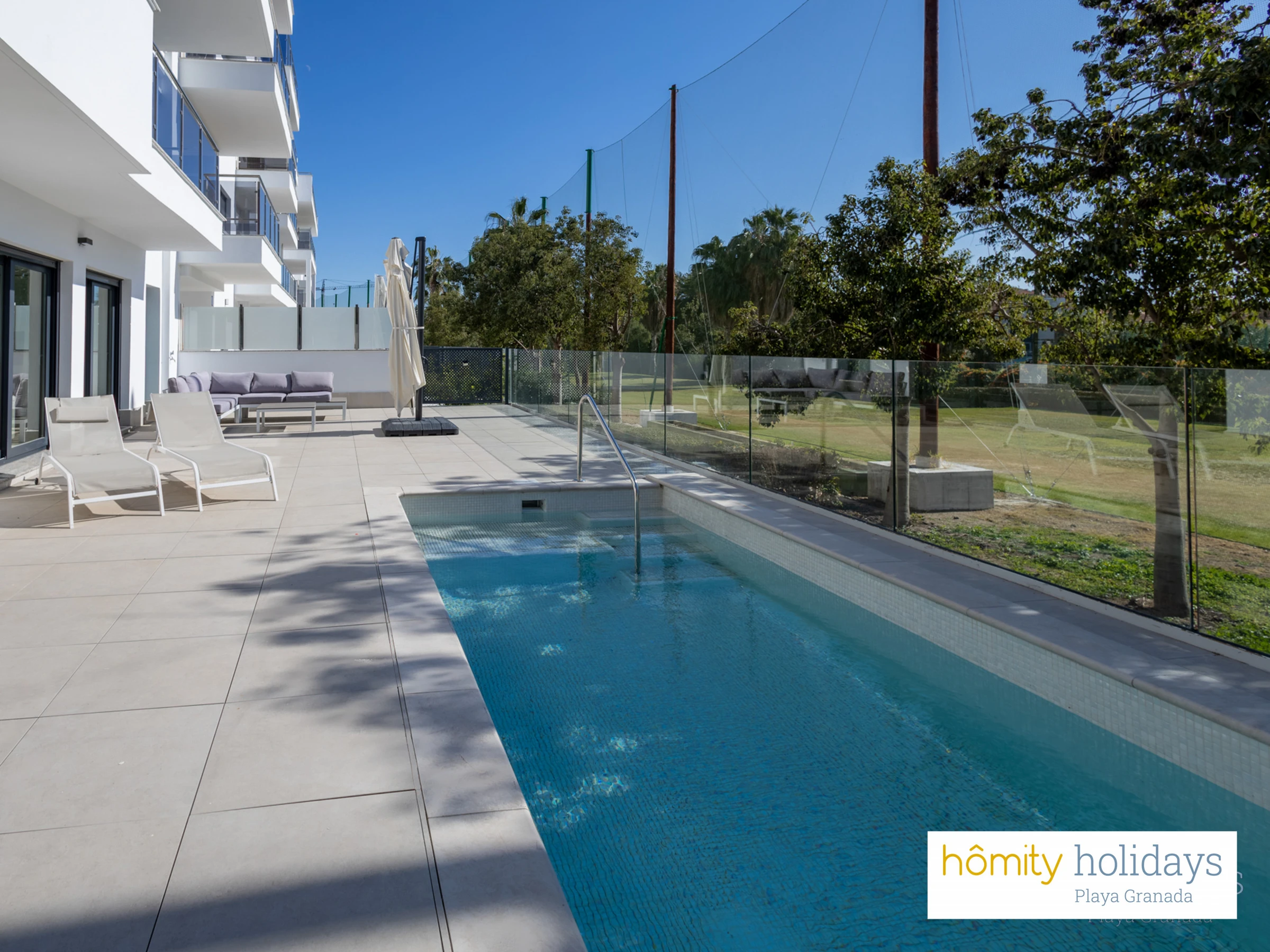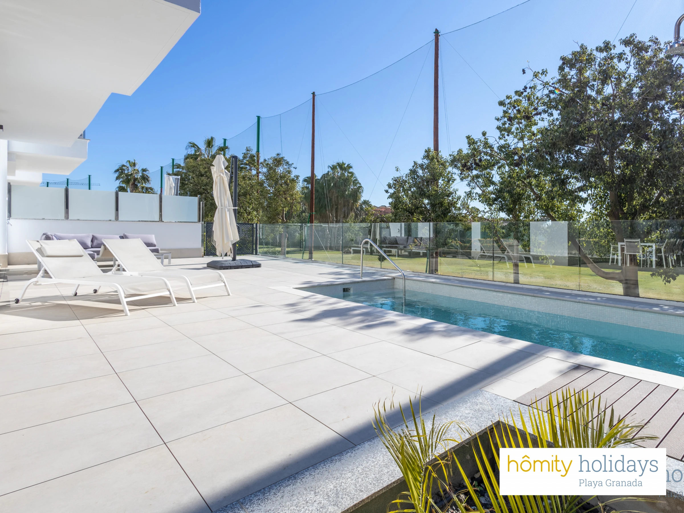 Elle dispose de ascenseur, jardin, mobilier de jardin, 170 m² de terrasse, lave-linge, sèche-linge, fer à repasser, accès internet (wifi), sèche-cheveux, zone pour les enfants, salle de sport, chauffage pompe à chaleur, climatisation dans tout le logement, piscine privée, garage même bâtiment, 3 ventilateurs, 3 Télévisions.