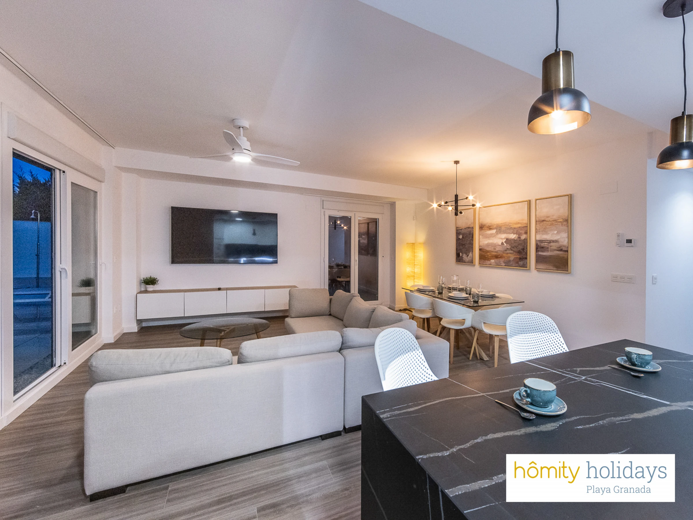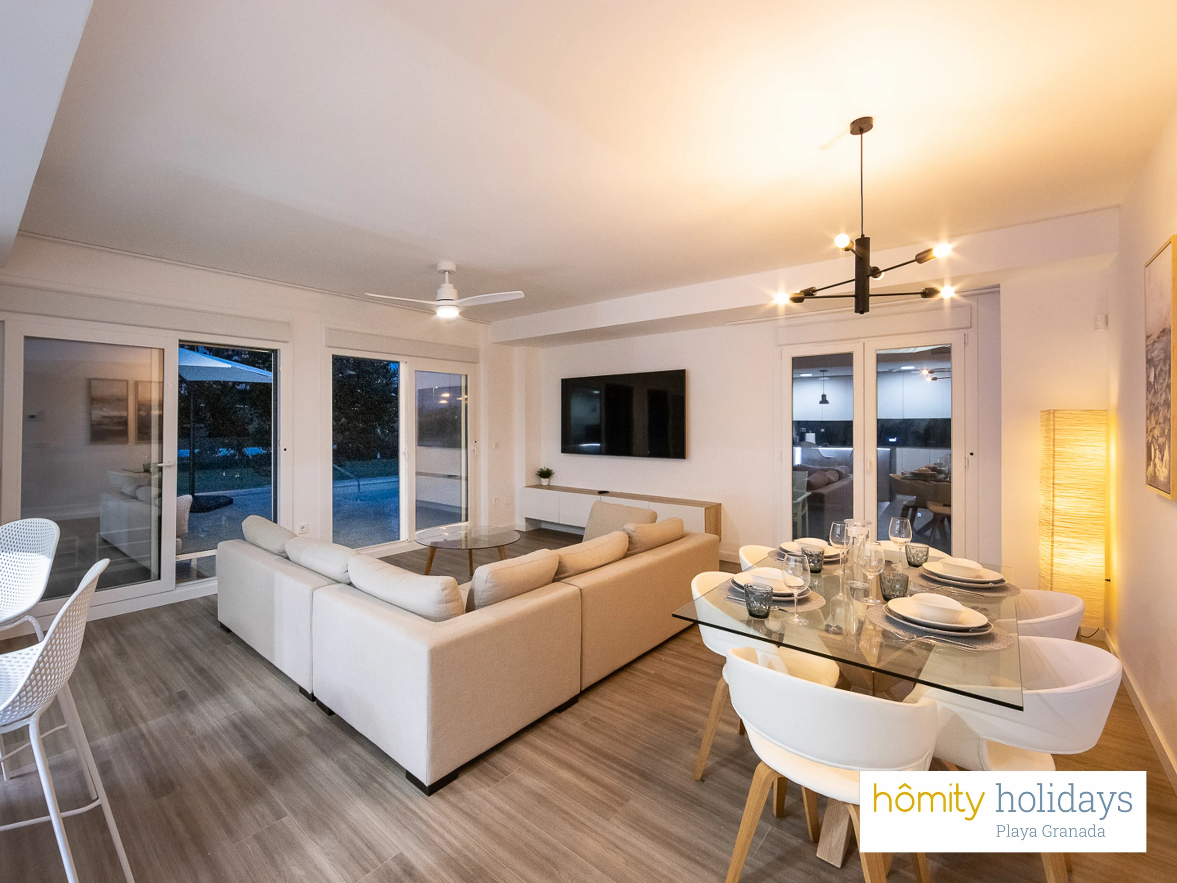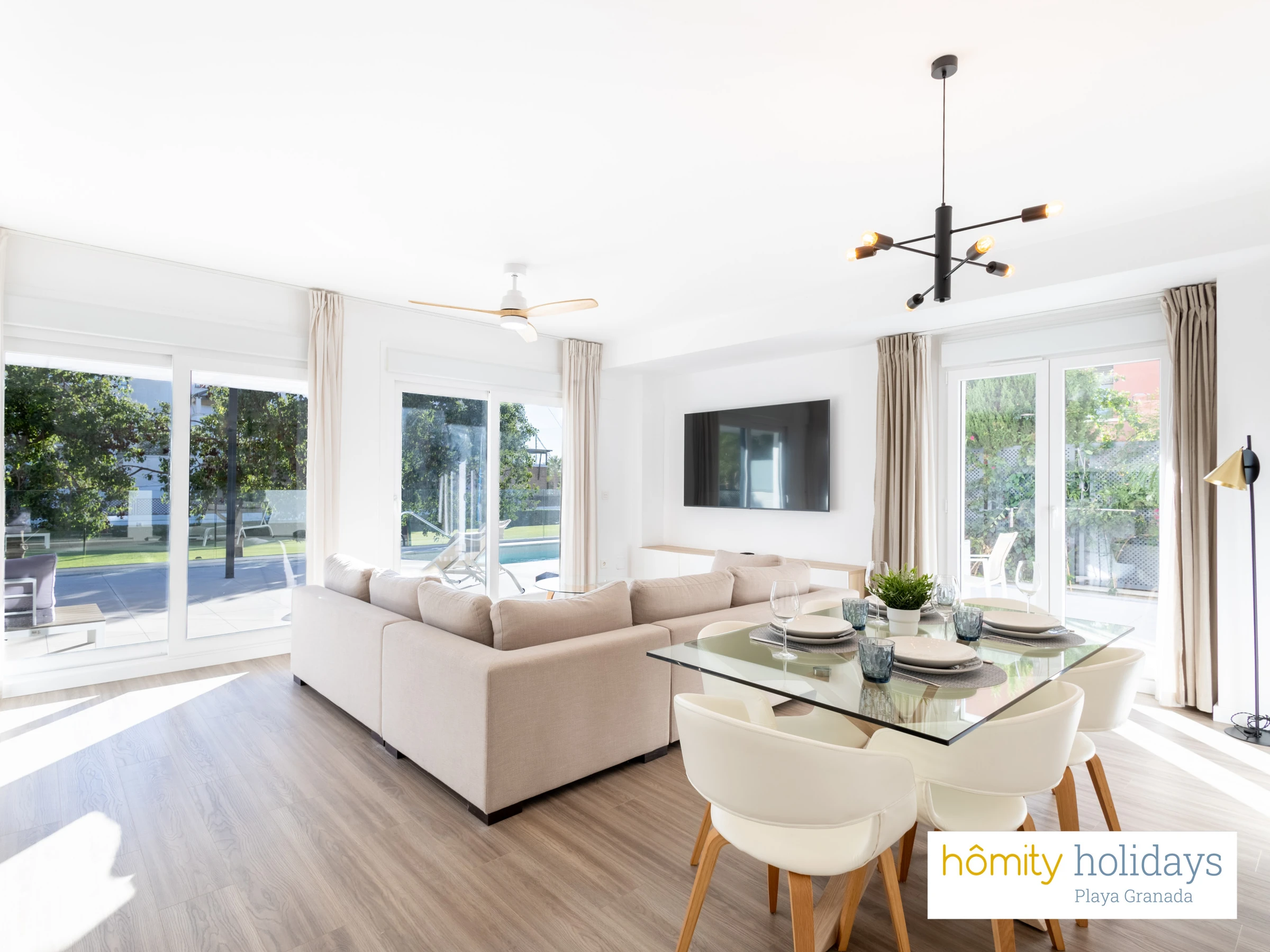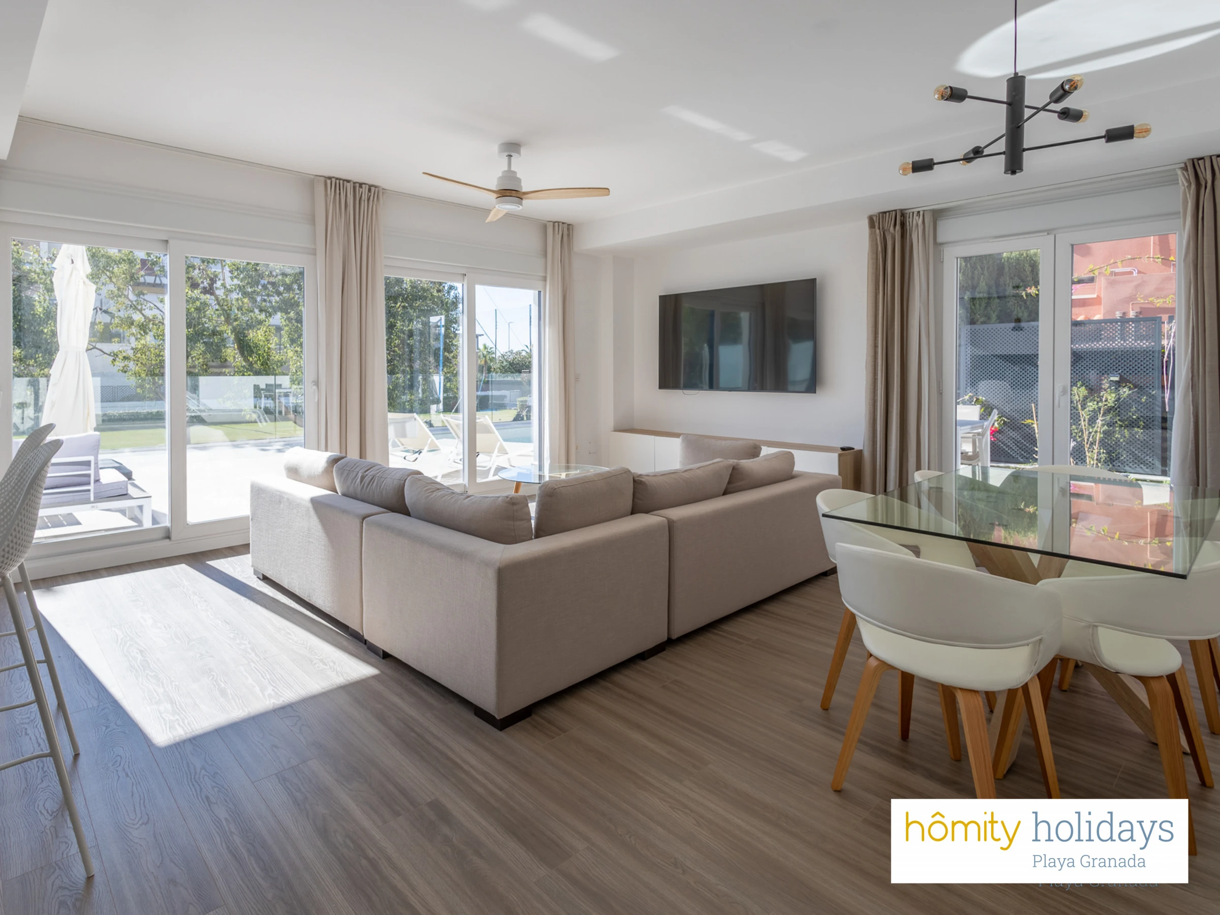 Elle dispose de ascenseur, jardin, mobilier de jardin, 170 m² de terrasse, lave-linge, sèche-linge, fer à repasser, accès internet (wifi), sèche-cheveux, zone pour les enfants, salle de sport, chauffage pompe à chaleur, climatisation dans tout le logement, piscine privée, garage même bâtiment, 3 ventilateurs, 3 Télévisions.