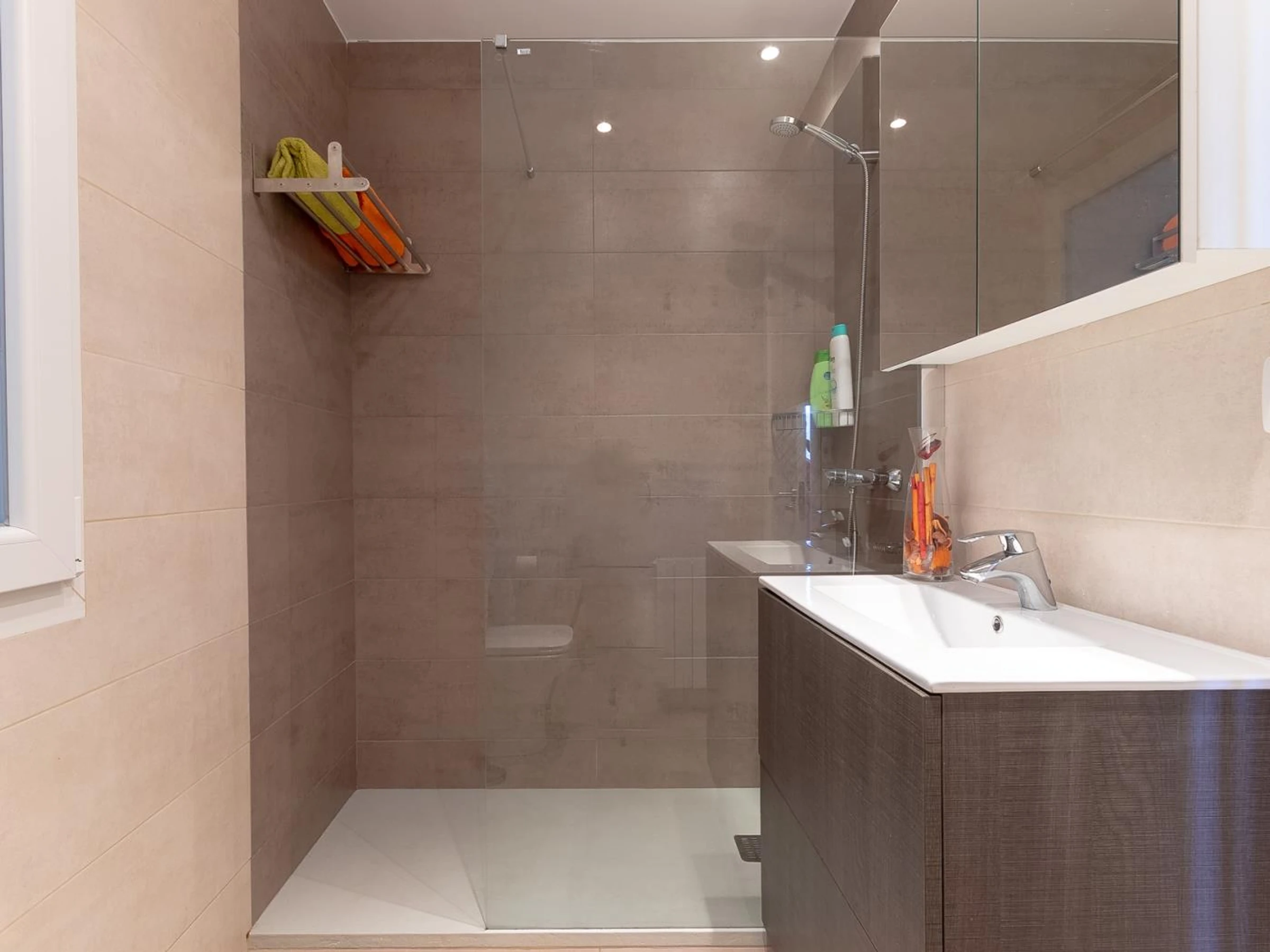 L'appartement est très lumineux et offre une vue incroyable sur l'extérieur de la ville, avec des stores sur toutes les fenêtres. Il dispose de deux chambres (un lit double et deux lits simples) et d'une salle de bain avec douche. Il y a des canapés et l'appartement fournit la literie, les oreillers, les serviettes, le shampoing et le gel.