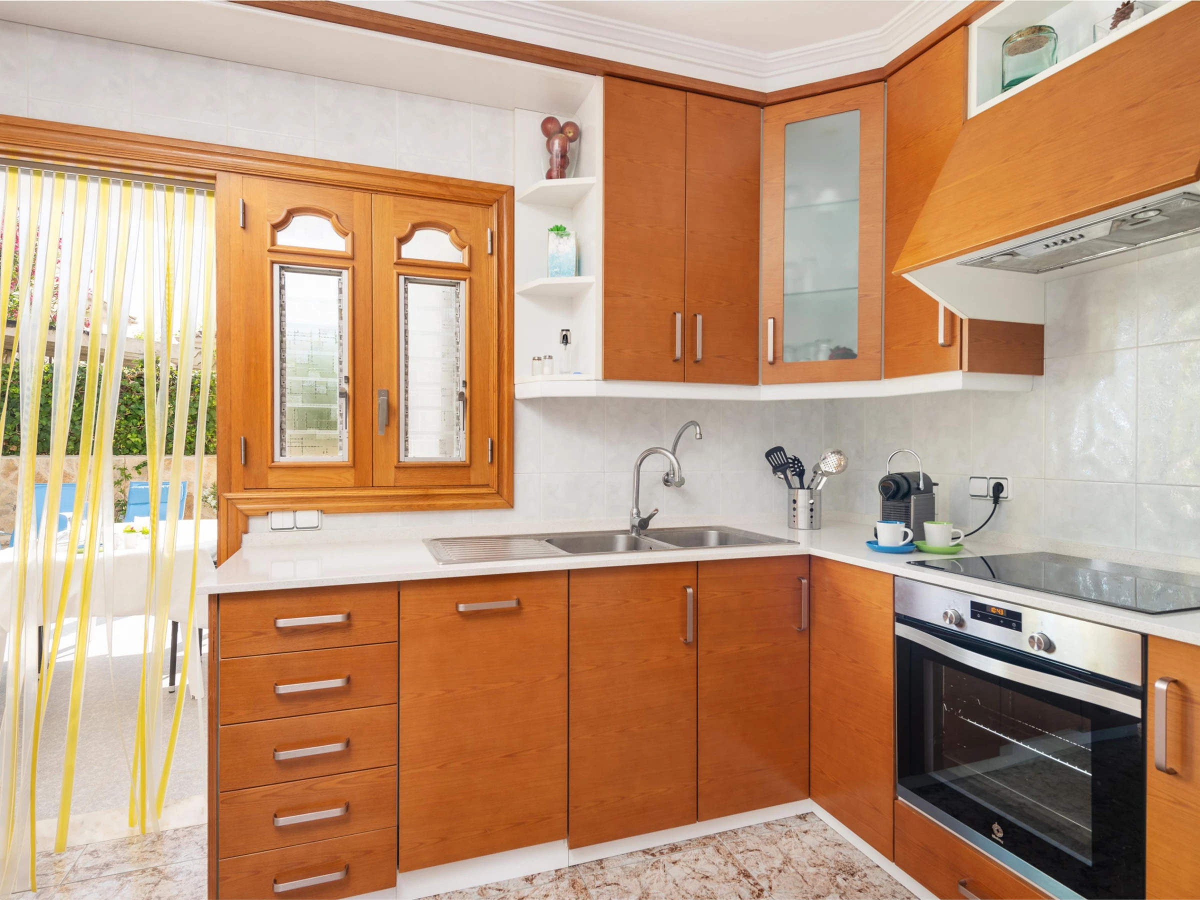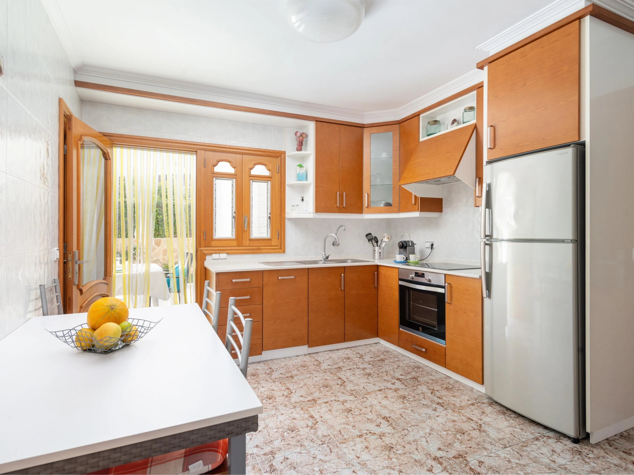 La cuisine, est équipée avec réfrigérateur, micro-ondes, four, congélateur, lave-vaisselle, cafetière et grille pain.