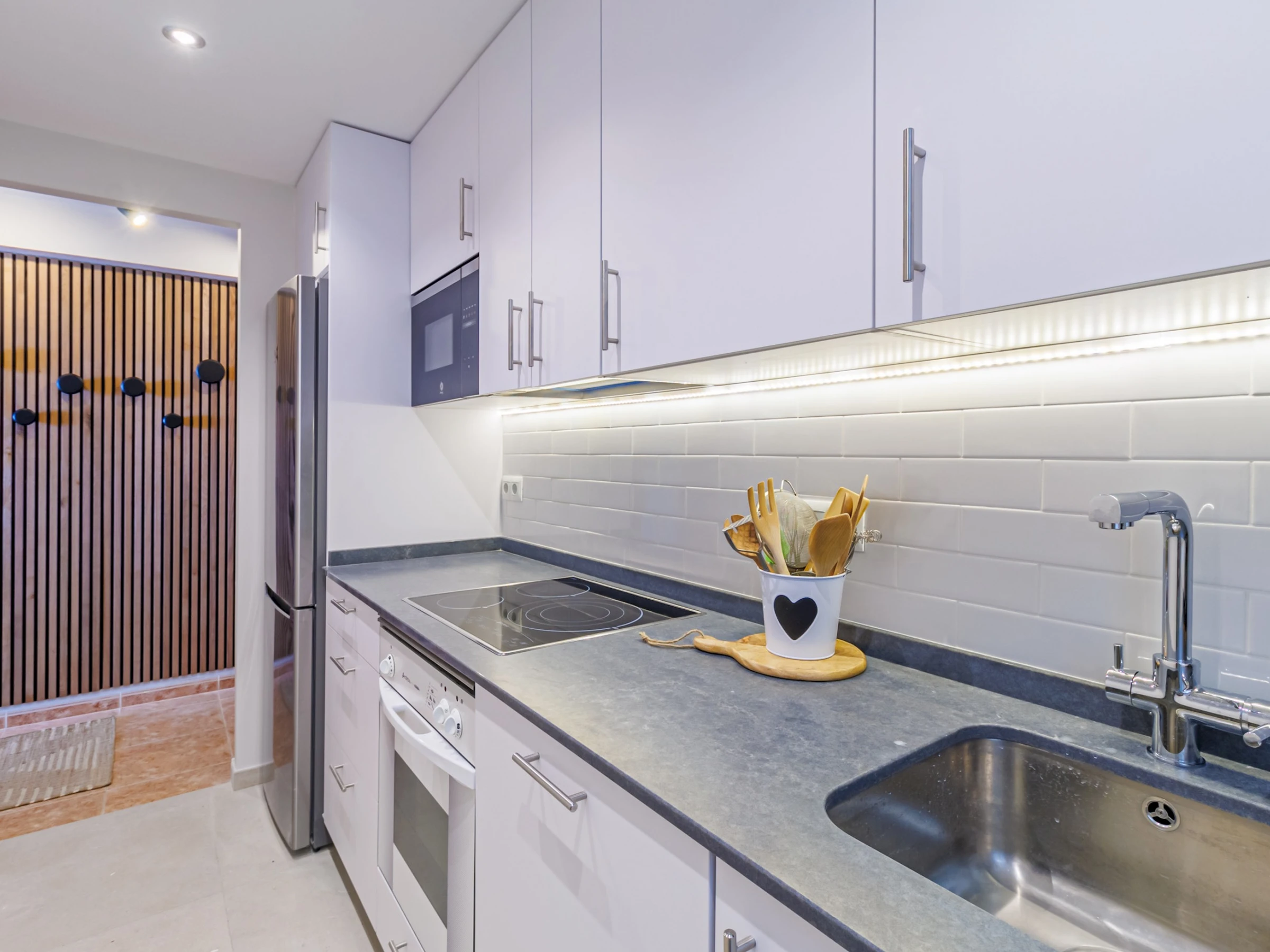 La cuisine, est équipée avec réfrigérateur, four, congélateur, lave-vaisselle, vaisselle/couverts et ustensiles/cuisine.
