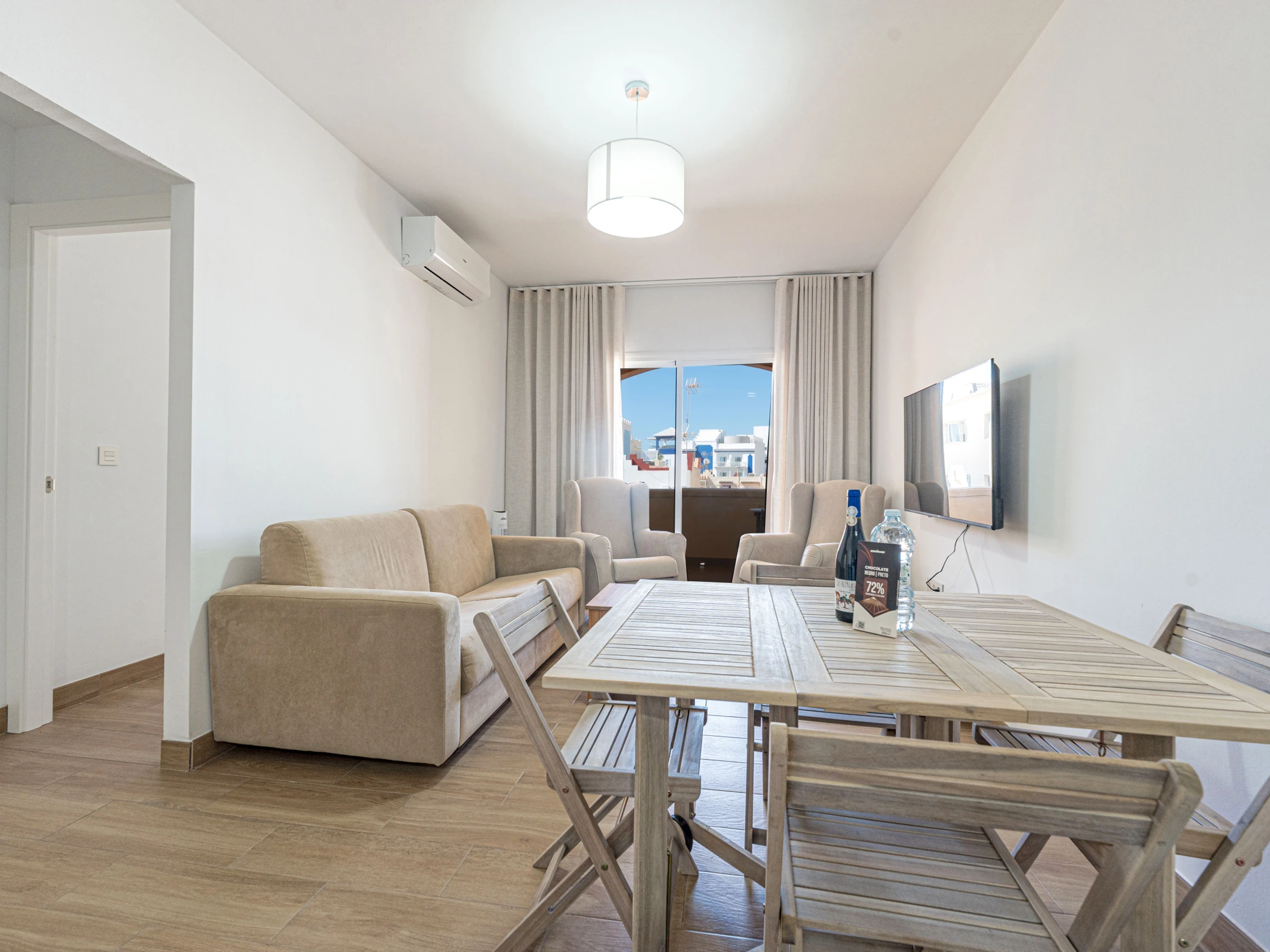 L'appartement dispose de deux chambres : l'une avec un lit double de haute qualité et l'autre avec deux lits simples, offrant confort et espace pour accueillir jusqu'à 4 personnes. Il dispose également d'un balcon confortable, idéal pour se détendre et prendre son petit-déjeuner.