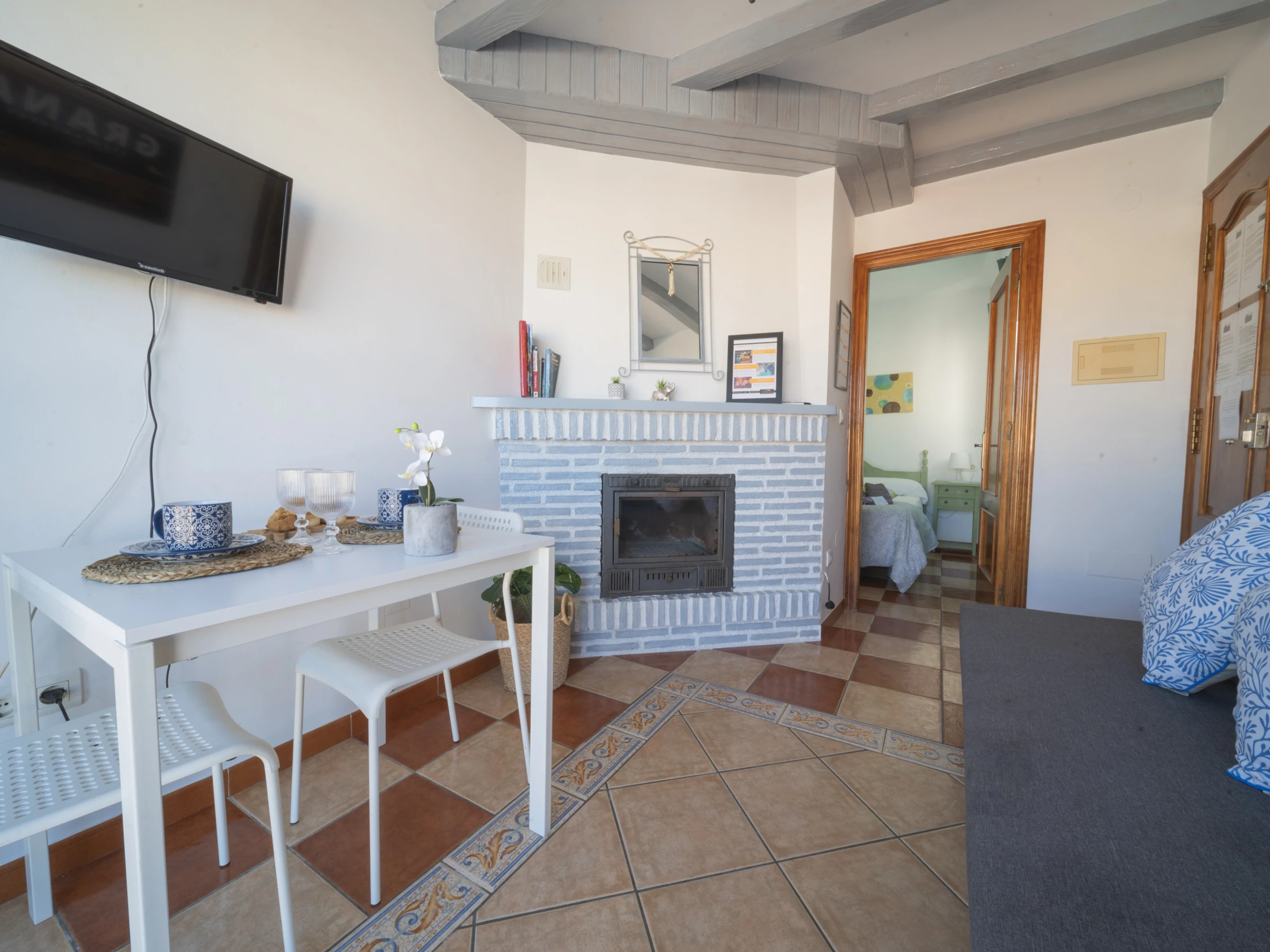 Elle dispose de terrasse, barbecue, cheminée, fer à repasser, accès internet (wifi), climatisation dans le salon, 1 Télévision.