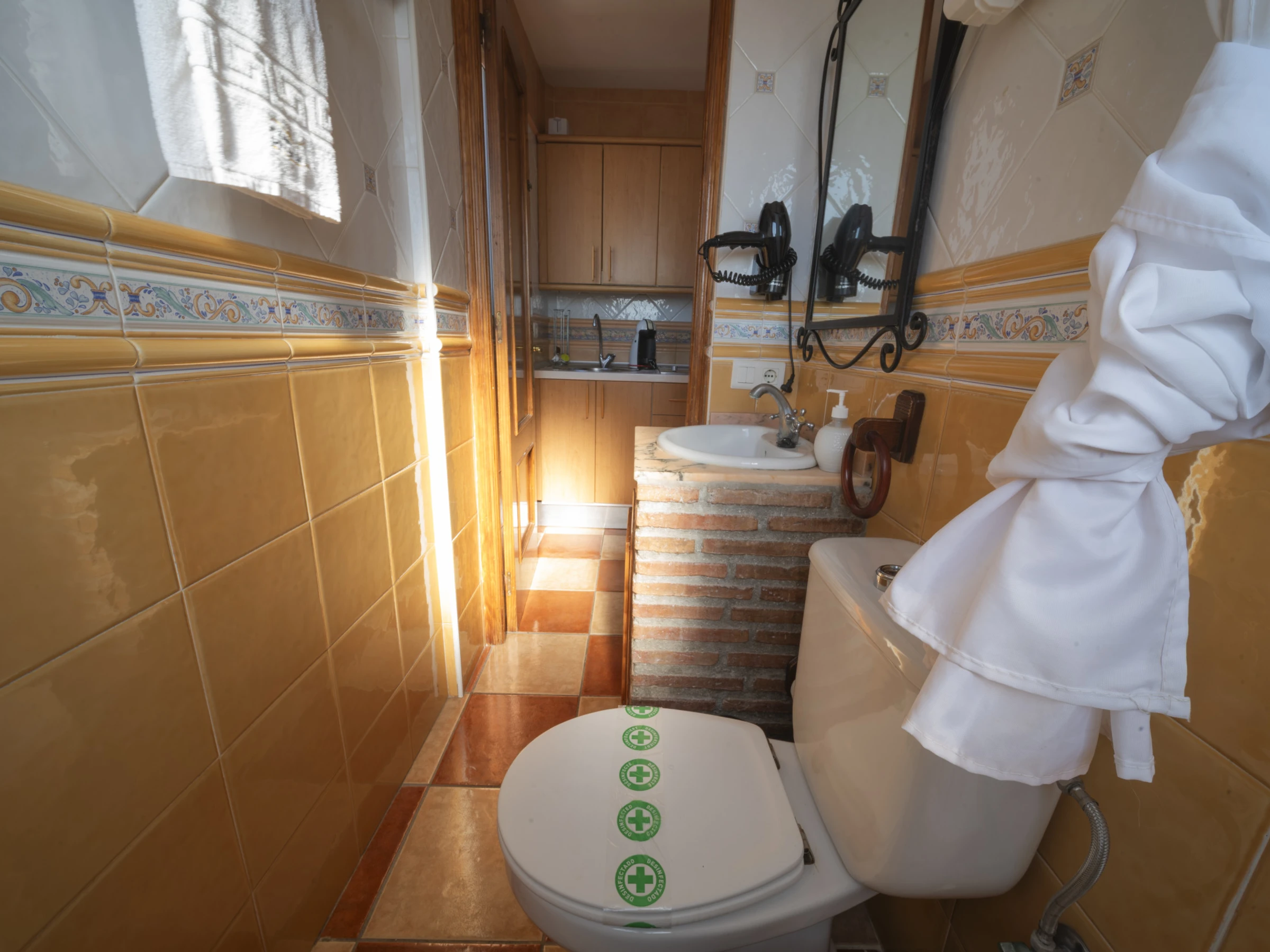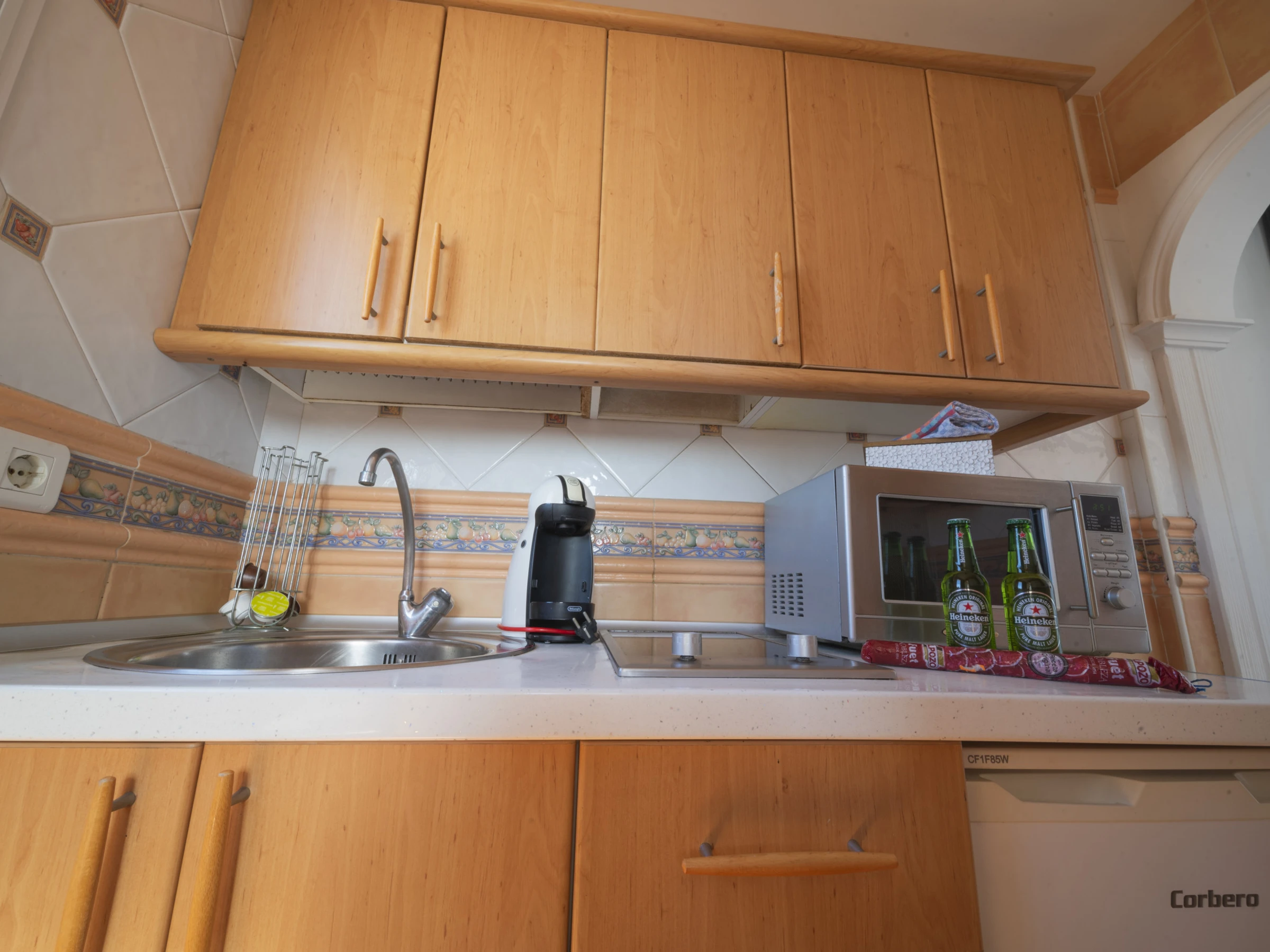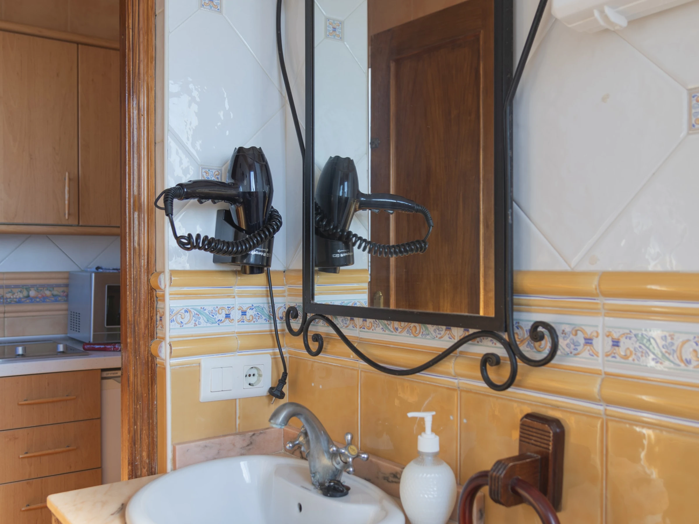 La cuisine indépendante, à vitrocéramique, est équipée avec réfrigérateur, micro-ondes, vaisselle/couverts, ustensiles/cuisine, cafetière, grille pain et bouilloire.