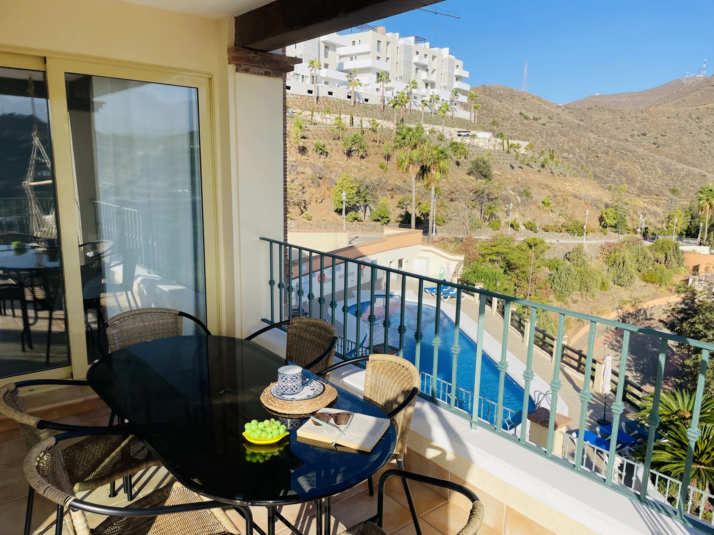 L'appartement dispose d'une magnifique terrasse privée avec vue panoramique sur la mer et les montagnes. Équipée d'une table et de chaises, c'est l'endroit idéal pour se détendre et profiter du paysage. De plus, vous pourrez profiter d'une piscine communautaire, parfaite pour vous rafraîchir et vous amuser avec vos proches.