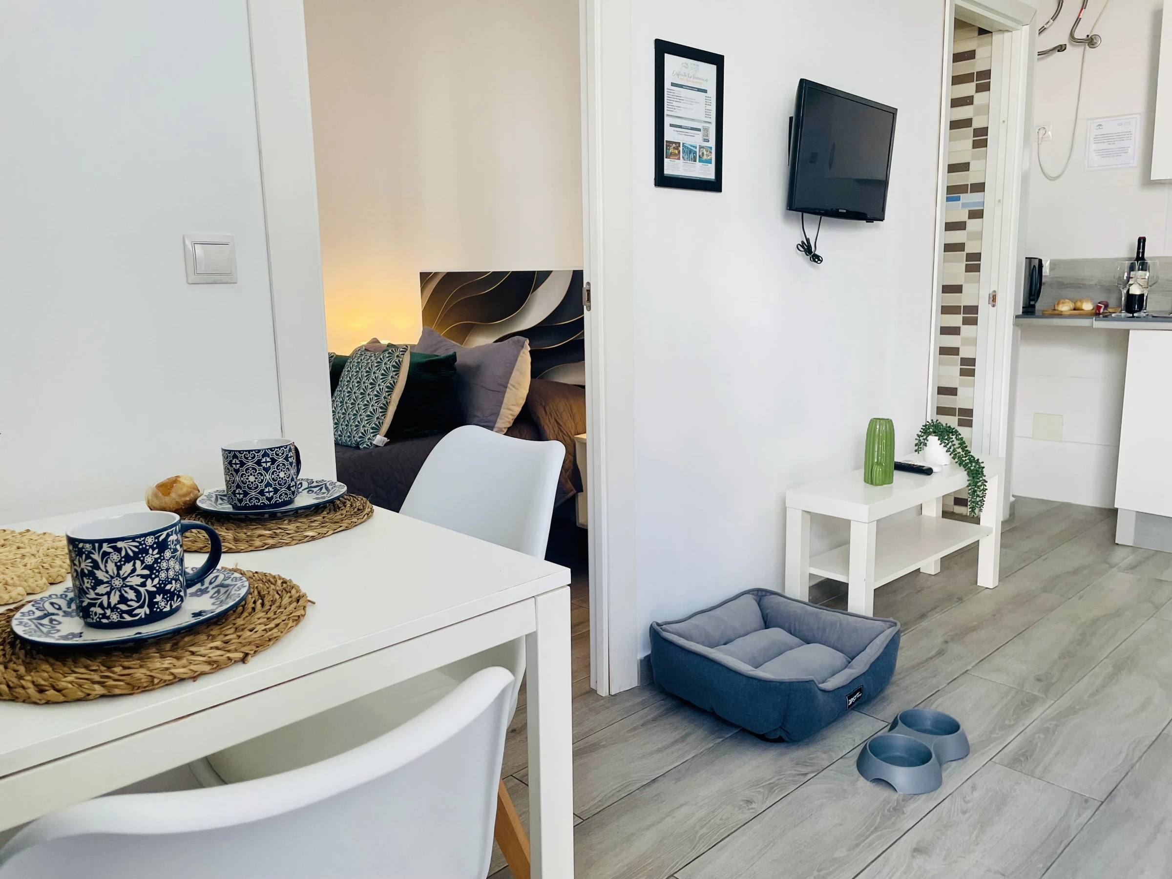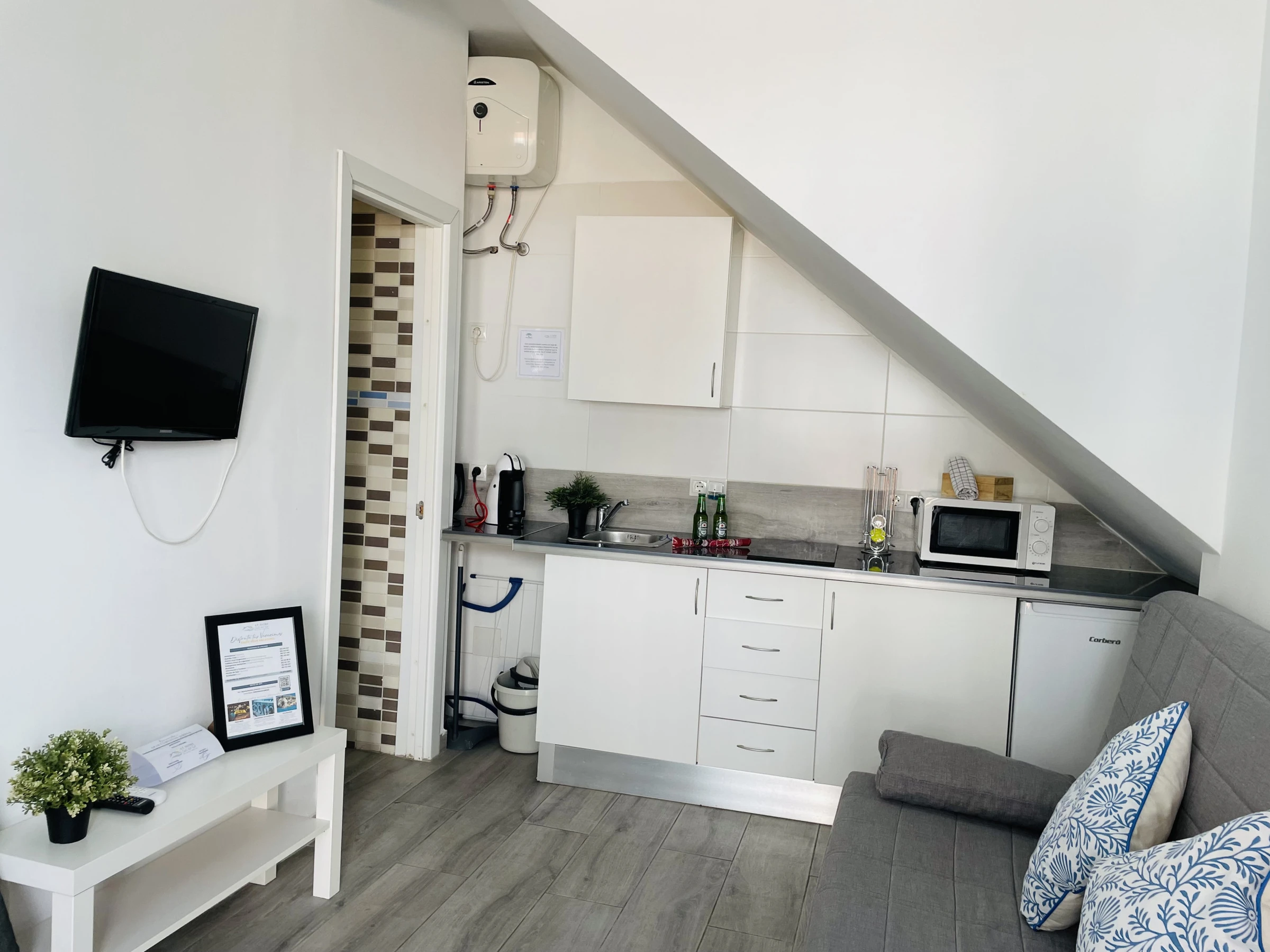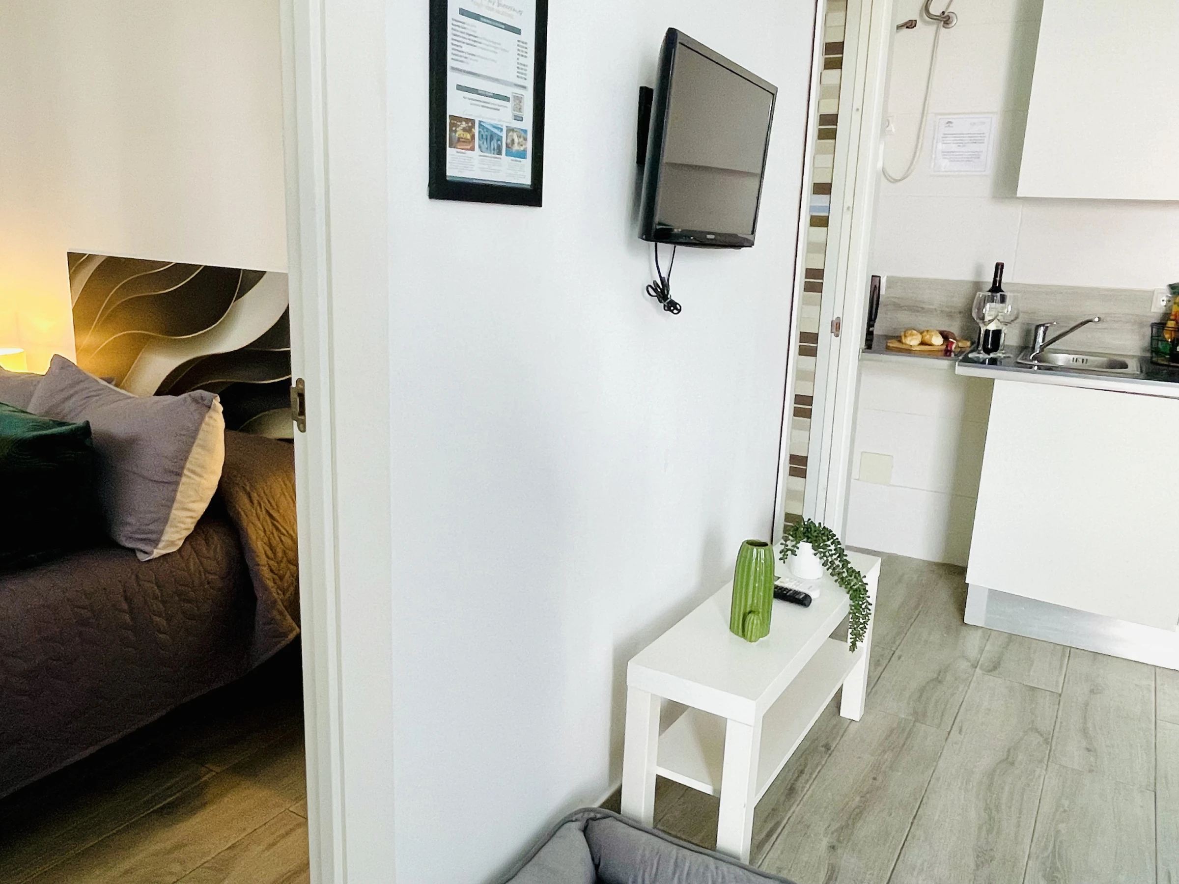 De plus, l'appartement offre la climatisation pour que vous vous sentiez à l'aise à tout moment de l'année, une télévision pour vous divertir, un réfrigérateur pour stocker vos aliments et une machine à capsules et un bouilloire pour que vous puissiez préparer vos boissons préférées. Nous proposons également le wifi, des draps et des serviettes pour votre confort.