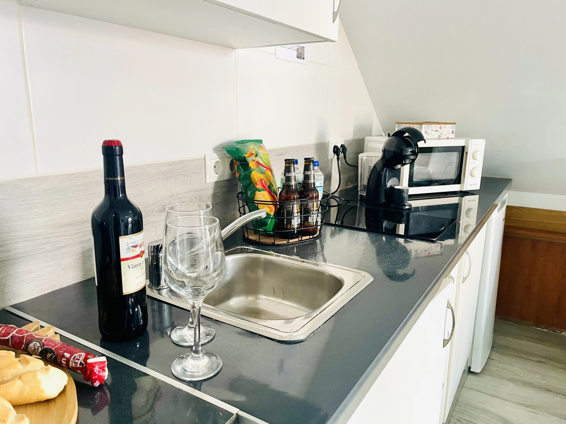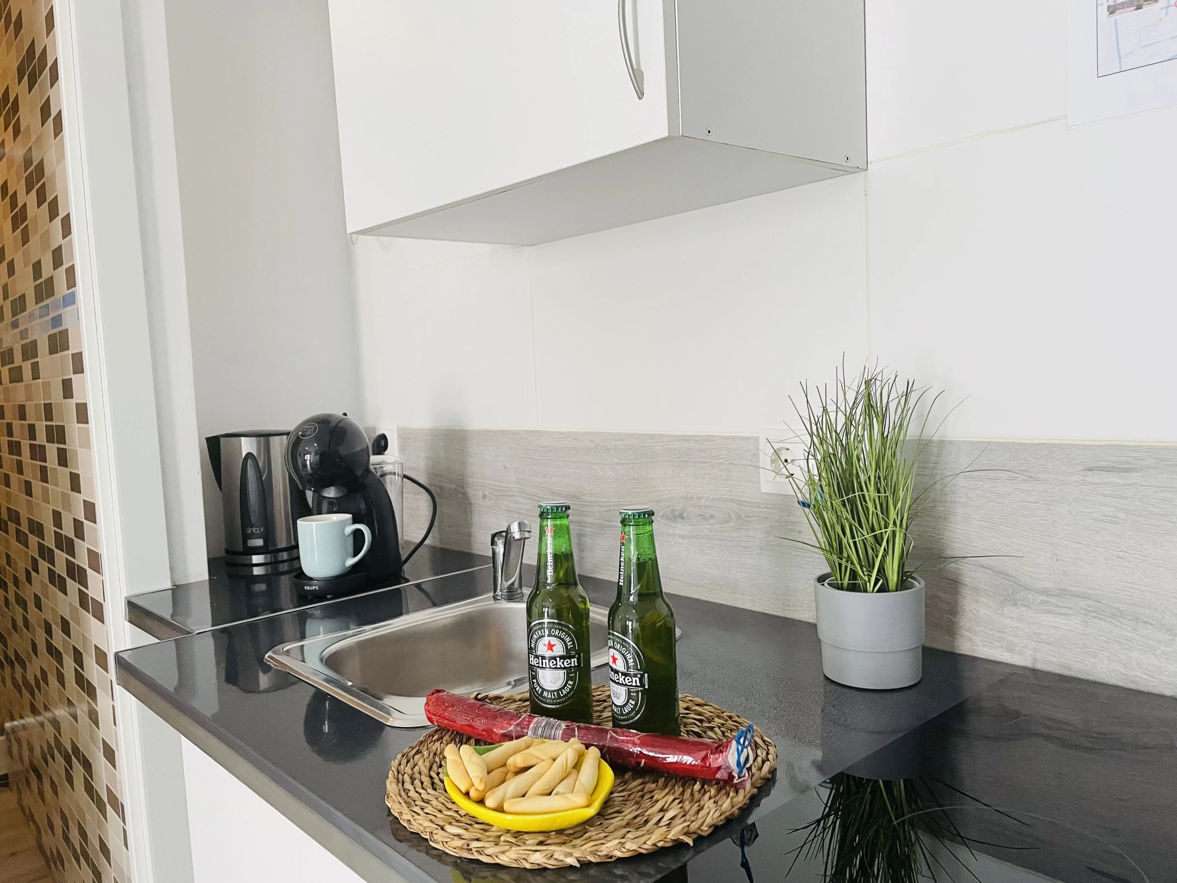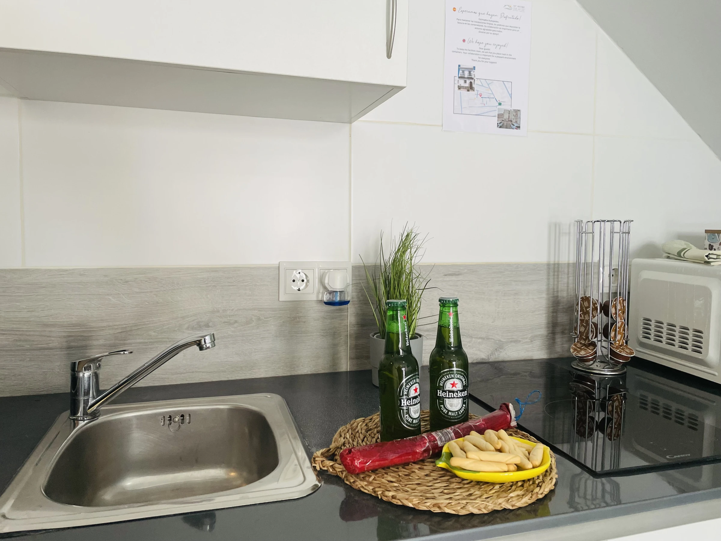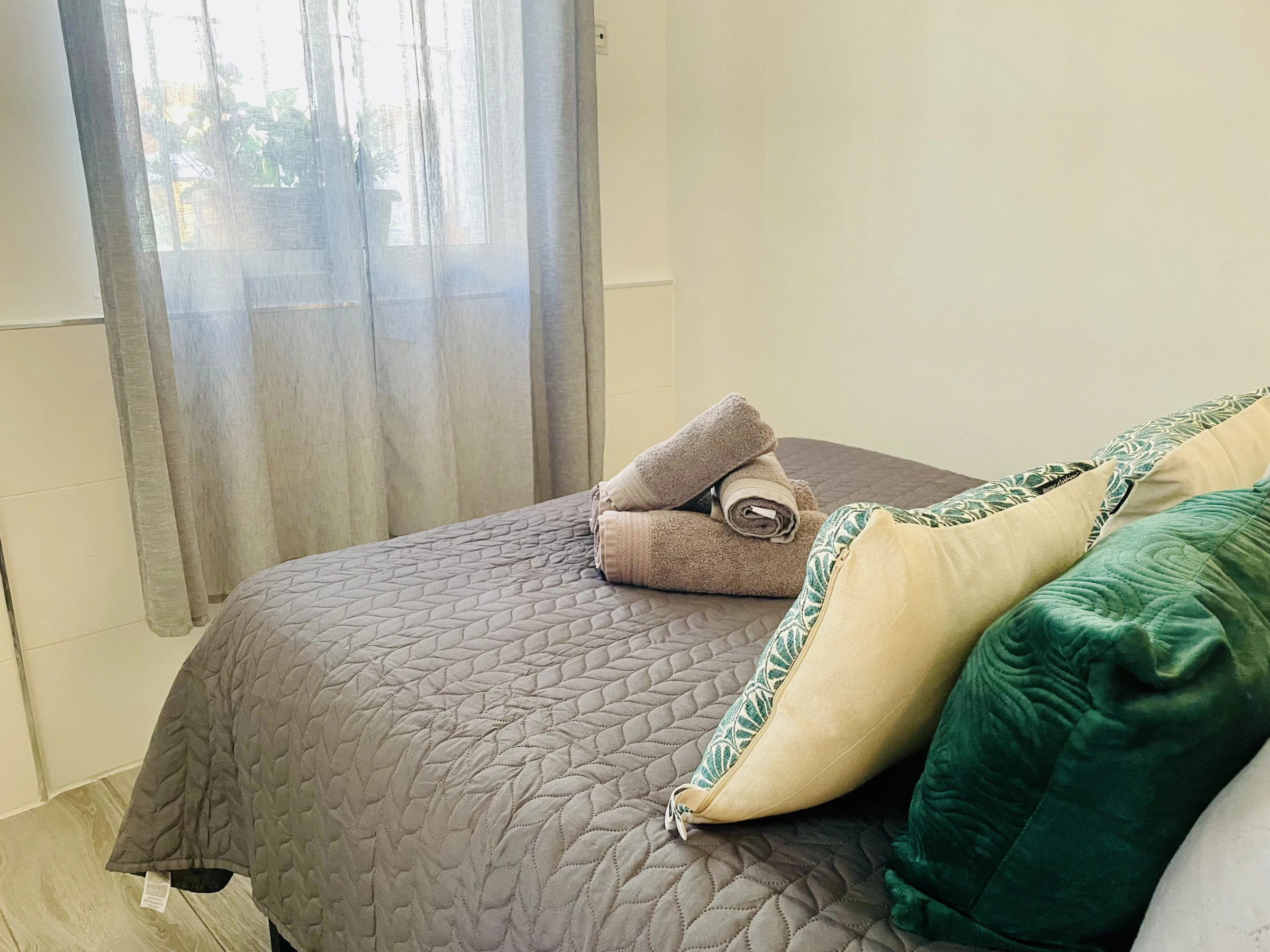 De plus, l'appartement offre la climatisation pour que vous vous sentiez à l'aise à tout moment de l'année, une télévision pour vous divertir, un réfrigérateur pour stocker vos aliments et une machine à capsules et un bouilloire pour que vous puissiez préparer vos boissons préférées. Nous proposons également le wifi, des draps et des serviettes pour votre confort.