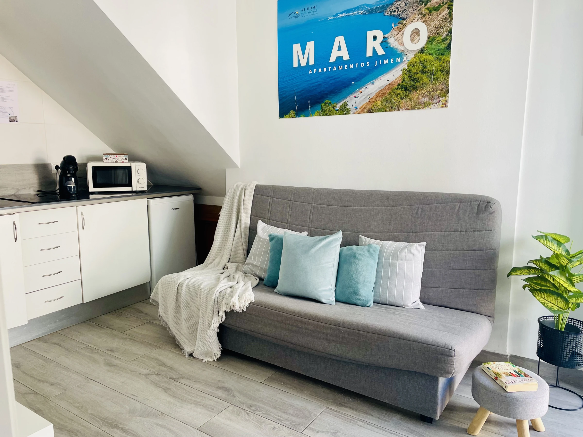 Profitez d'un séjour enchanteur dans ce bel appartement situé au centre de Nerja, à seulement 900 mètres de la populaire plage de Burriana, connue pour son sable doré et ses eaux cristallines. Vous êtes également à 2,6 km de Punta Lara, une belle plage tranquille, et à seulement 600 mètres du célèbre Balcon de l'Europe, où vous pourrez profiter de vues panoramiques sur la mer.