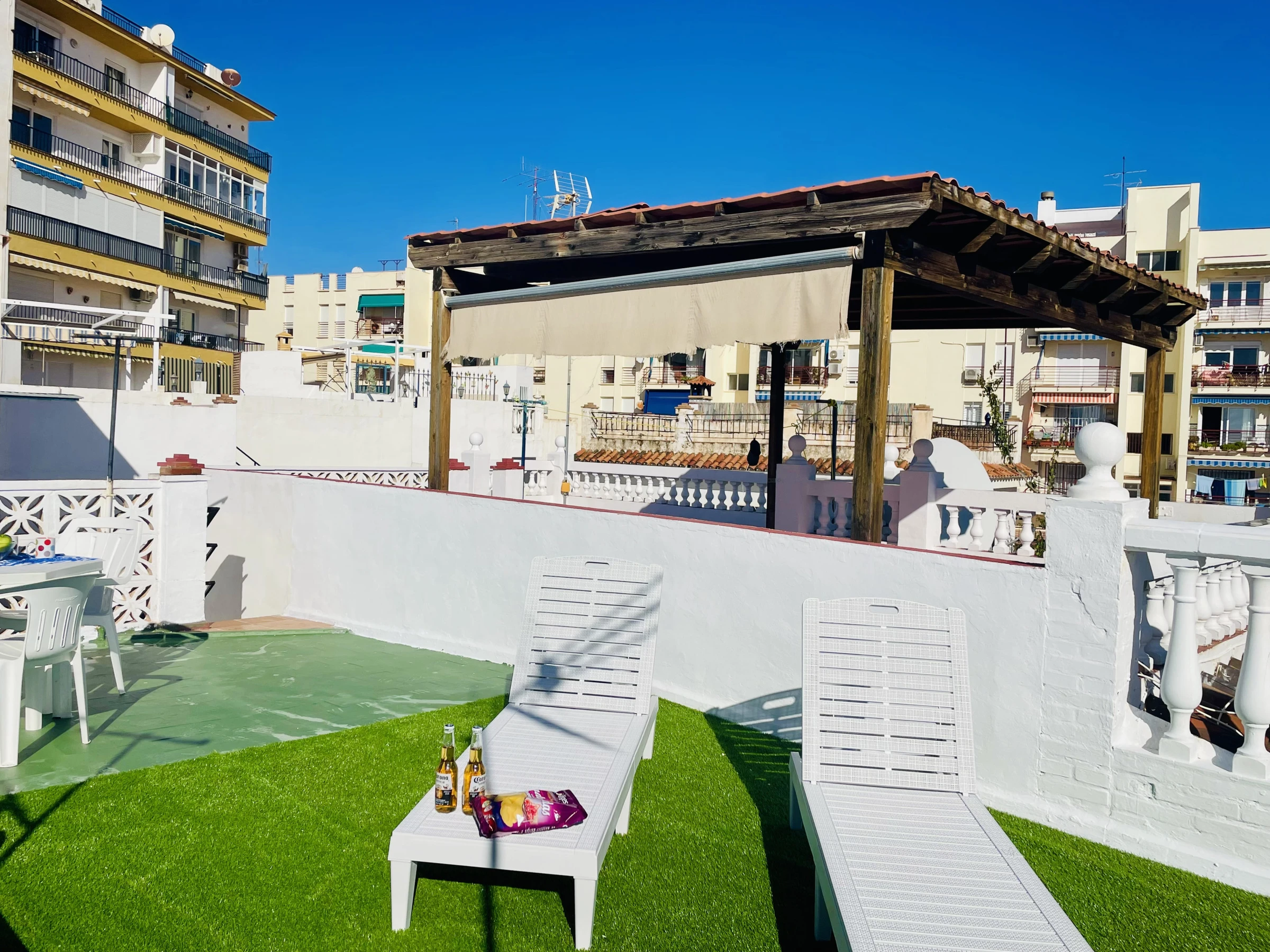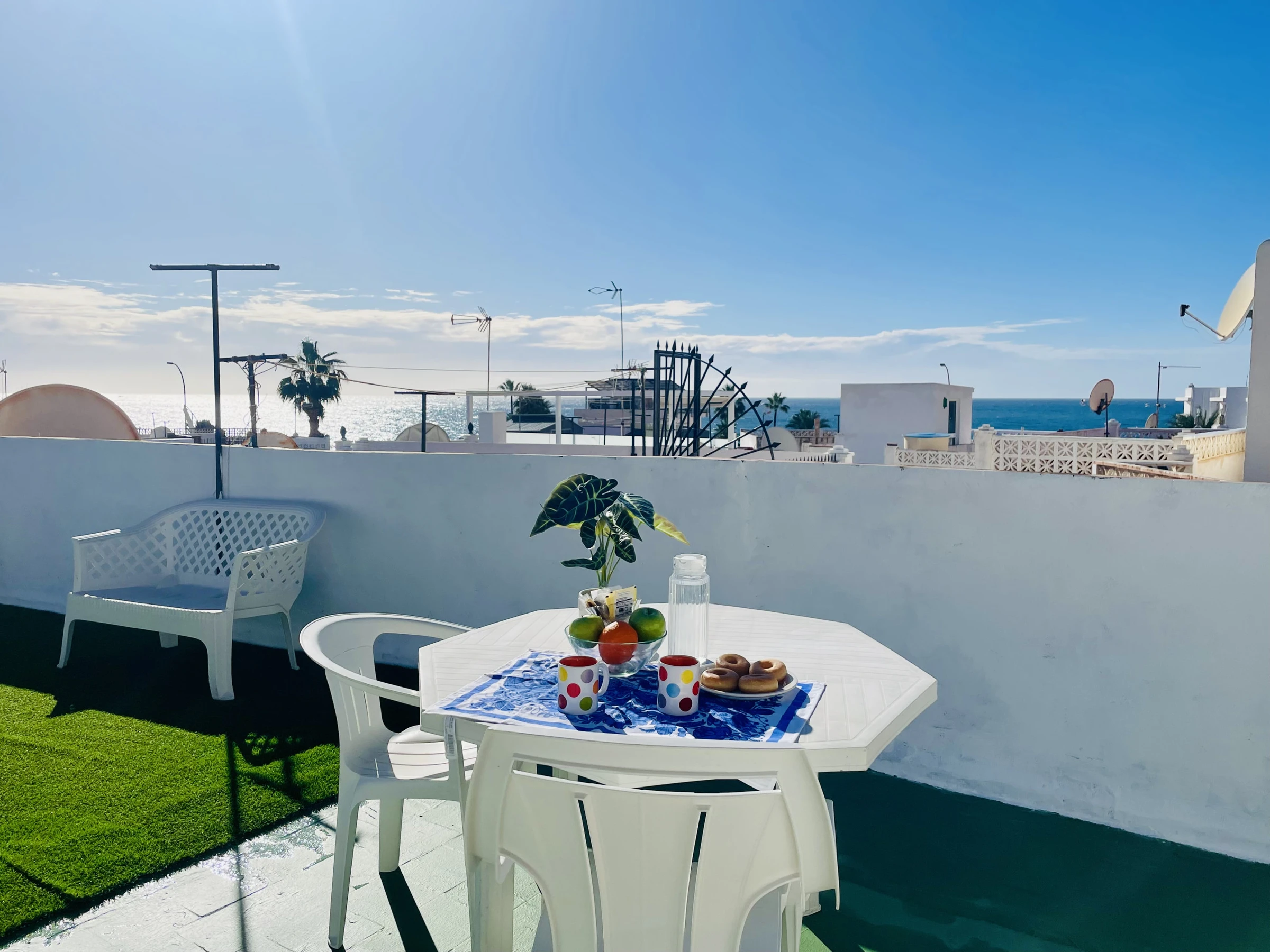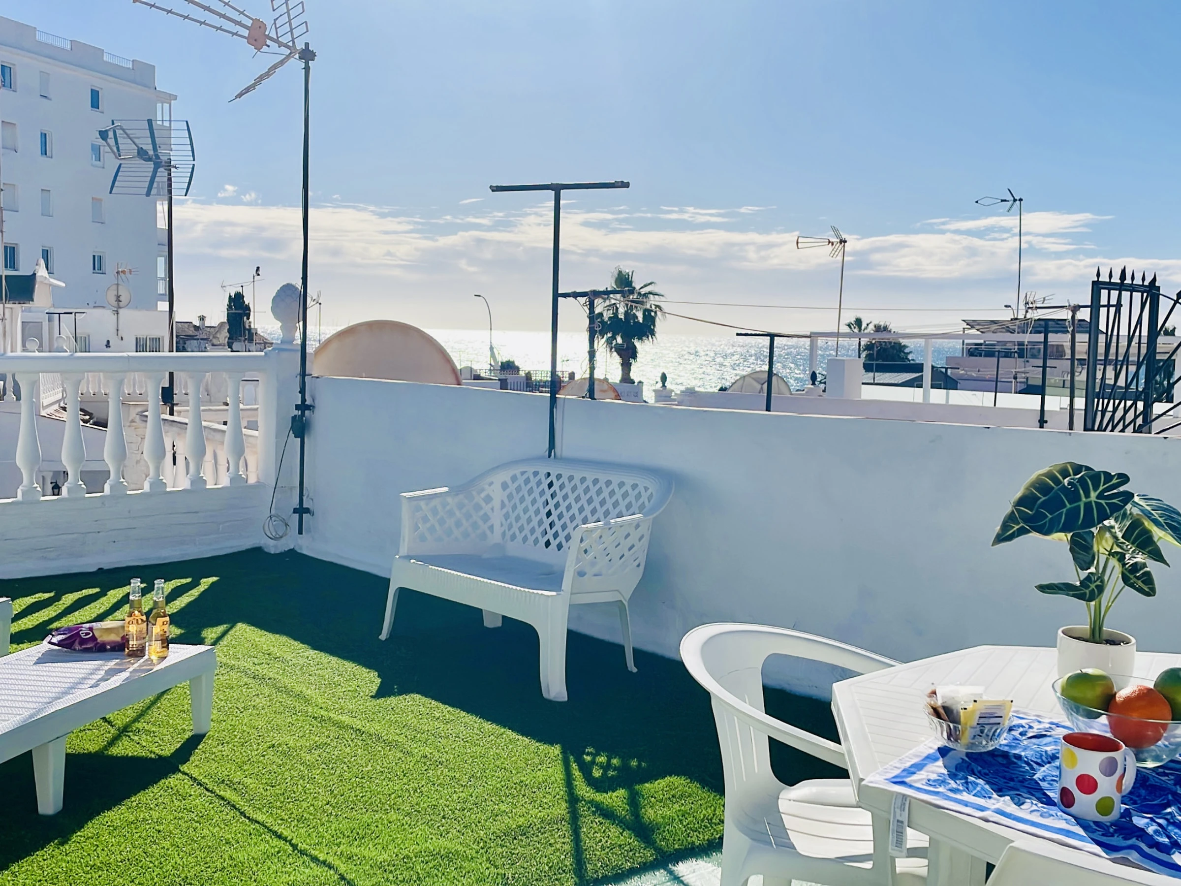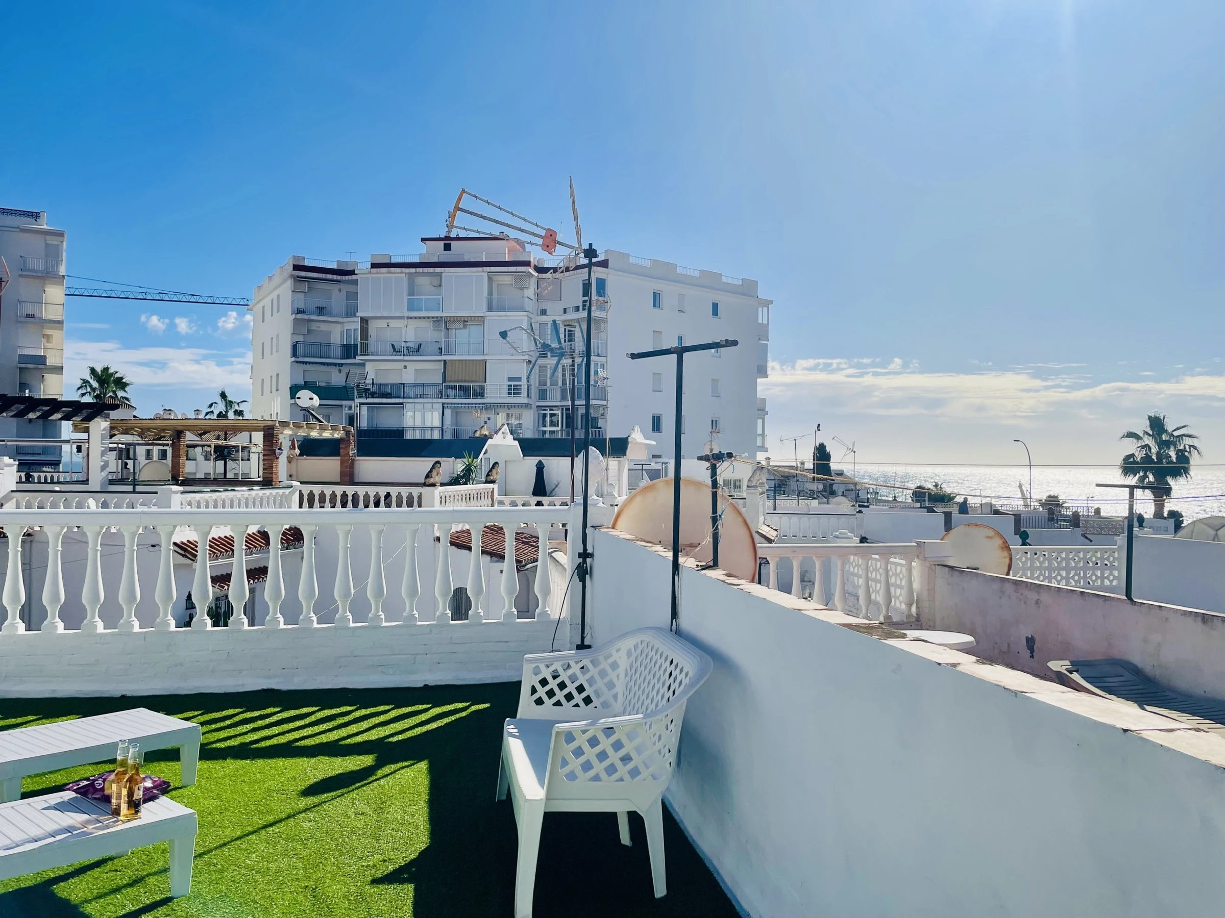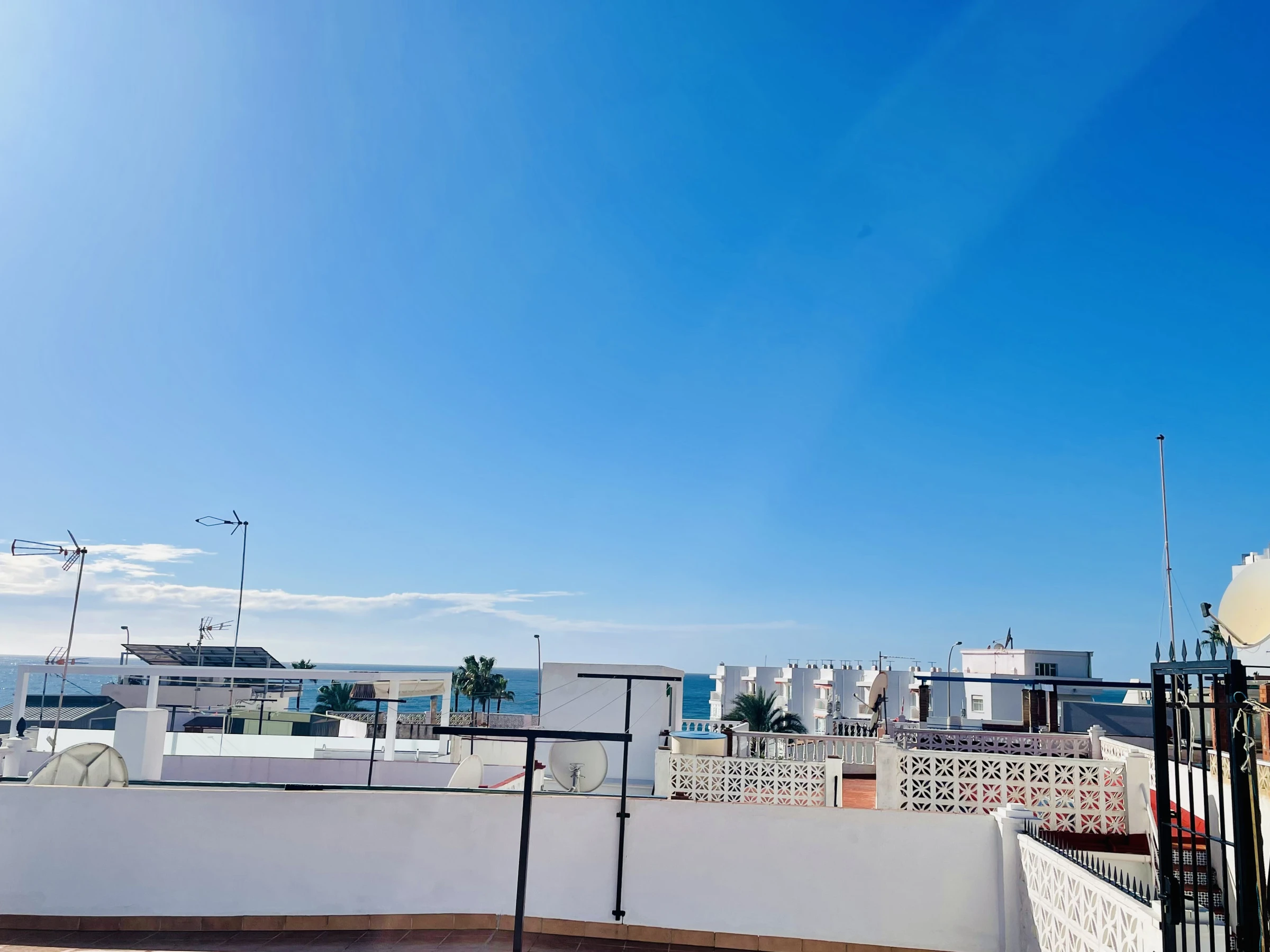 Enfin, la maison dispose d’un fantastique solarium avec vue sur la mer, équipé de chaises longues et d’un coin détente, parfait pour profiter du soleil, se relaxer ou contempler les couchers de soleil.