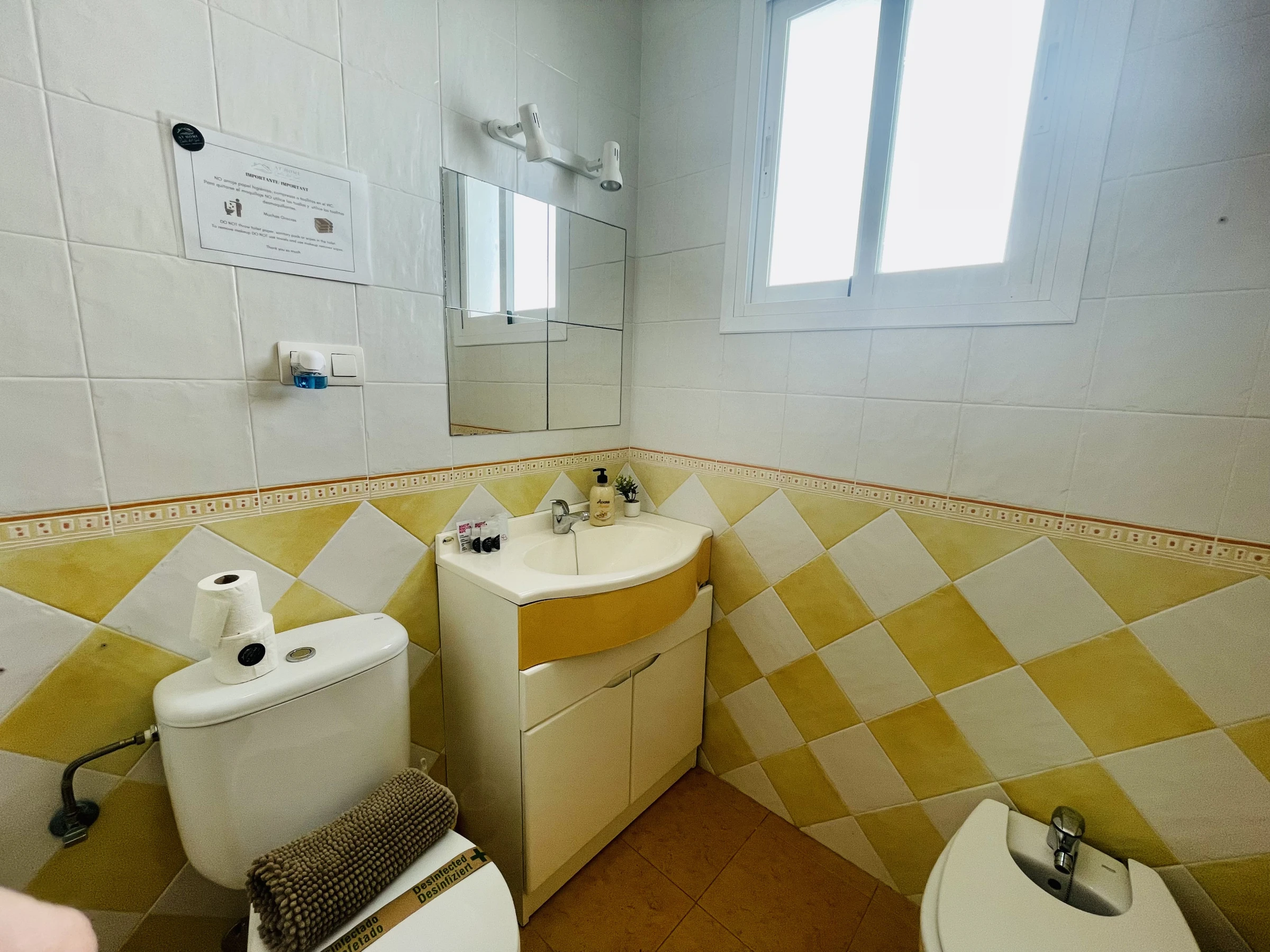 De plus, au premier étage, la maison dispose d’une salle de bain complète avec douche, sèche-cheveux et bidet.