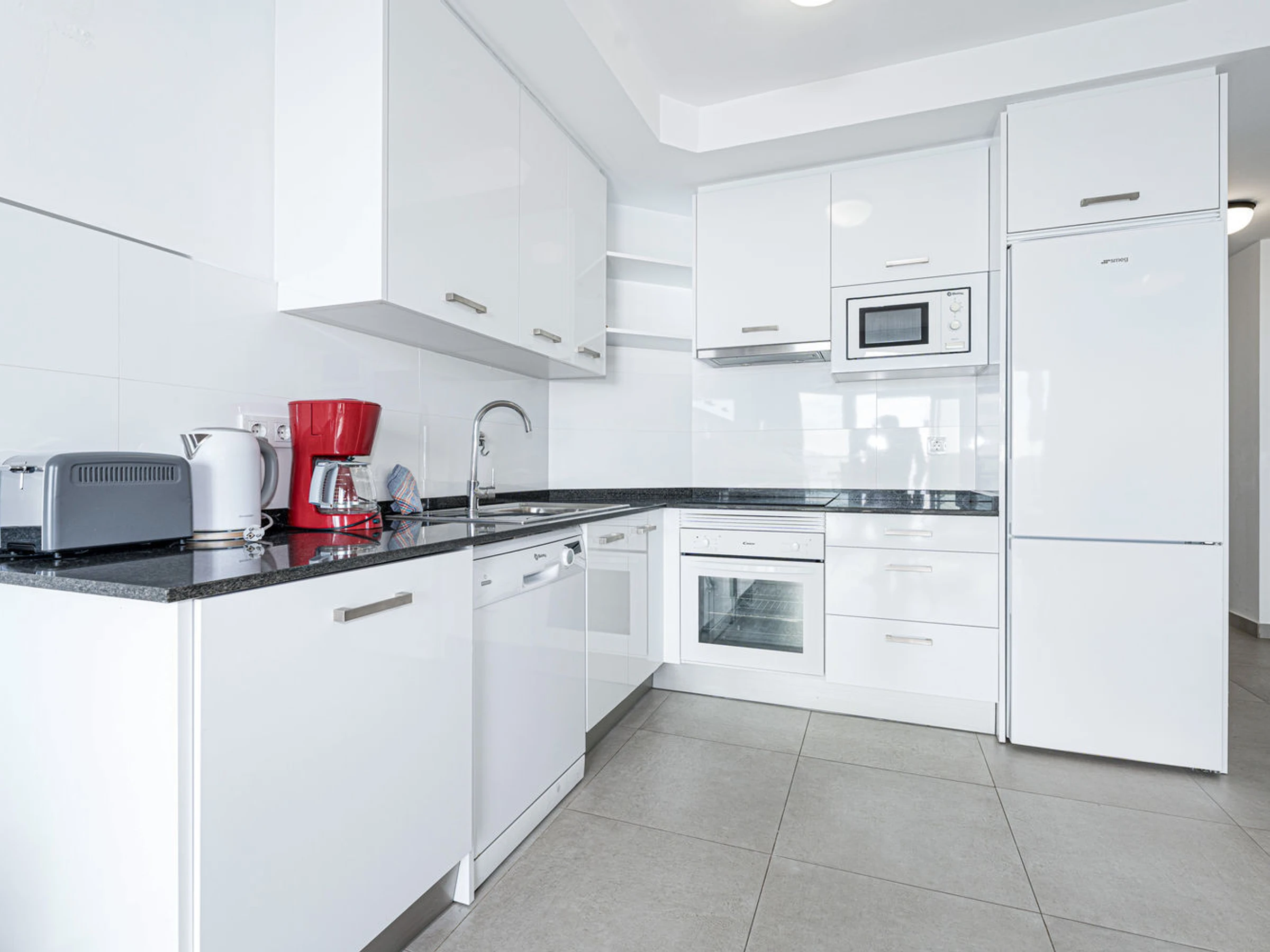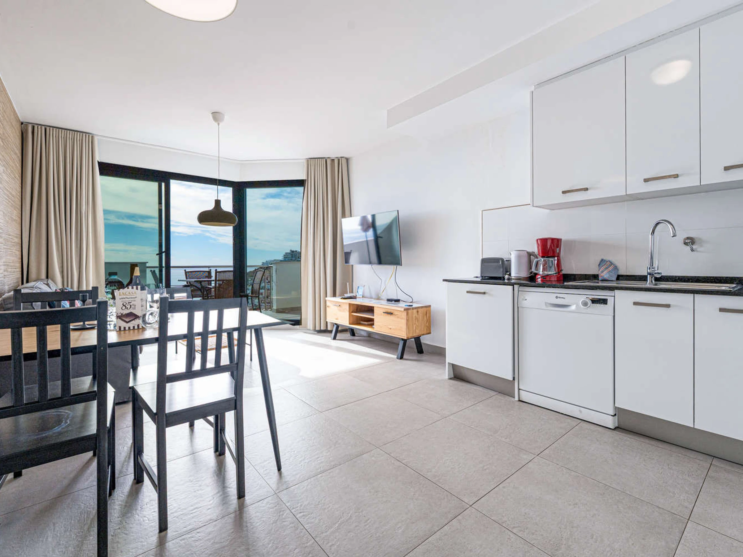 Avec ses 2 chambres, ses 2 salles de bains et sa cuisine ultramoderne équipée de tous les appareils les plus récents, vous vous sentirez comme chez vous.