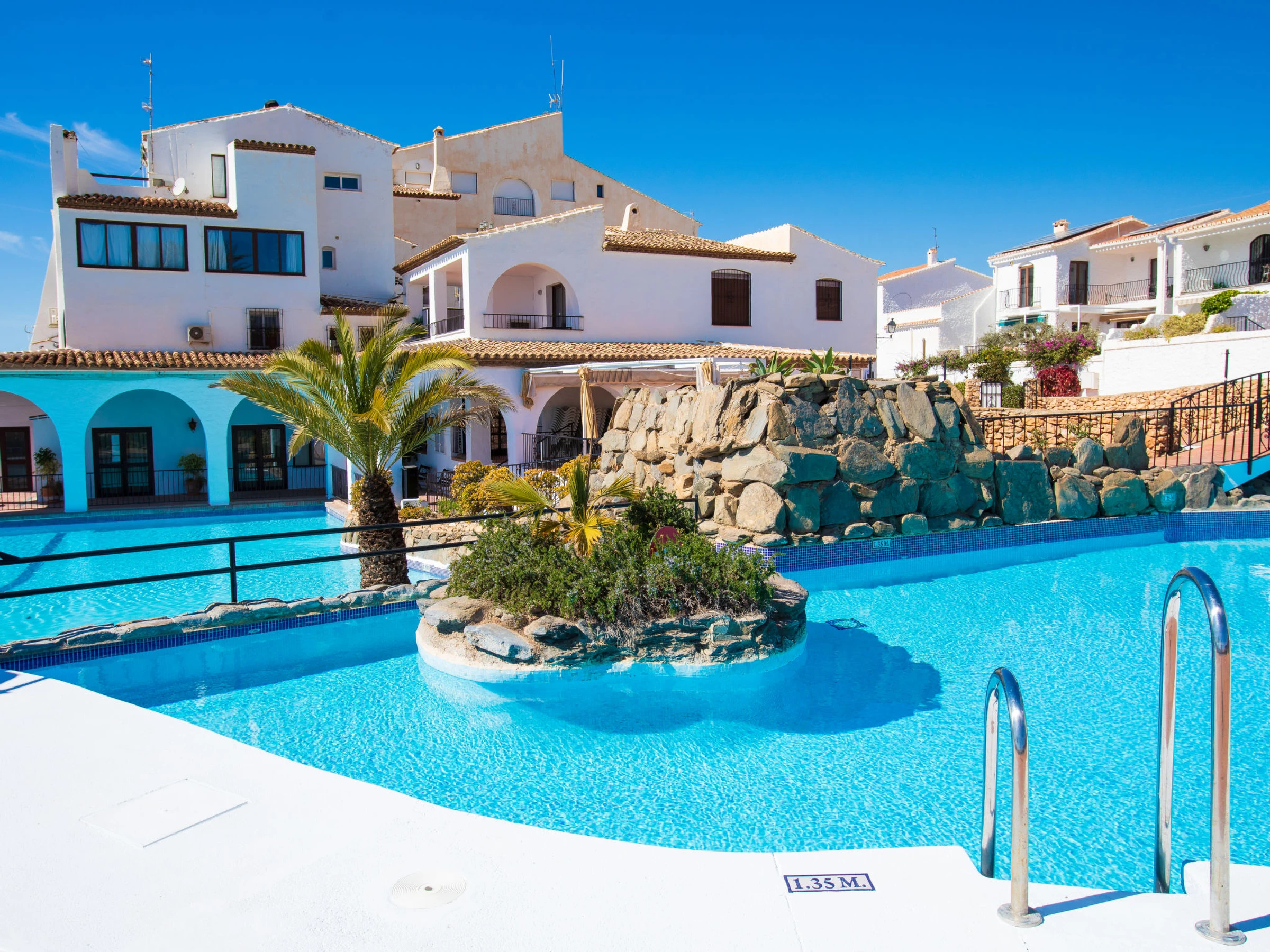 "Los Olivos de Capistrano", maison mitoyenne 3 pièces 121 m2. Spacieux et clair, aménagement fonctionnel et confortable: séjour/salle à manger avec Télévision numérique, air-conditionné et chauffage à air chaud. Sortie sur le jardin, sur le jardinet. Cuisine ouverte (5 plaques de cuisson, four, lave-vaisselle, grille-pain, bouilloire électrique, micro-ondes, congélateur, cafetière électrique, combiné micro-ondes). Sortie sur la terrasse. WC séparé. À l'étage supérieur: 1 chambre avec 2 lits (90 cm, longueur 200 cm), bain/douche/WC, air-conditionné et chauffage à air chaud. 1 chambre avec 1 grand-lit (160 cm, longueur 200 cm), bain/douche/WC, air-conditionné et chauffage à air chaud. Sortie sur la terrasse. Grand jardinet. Meubles de terrasse. Très belle vue sur la mer, les montagnes et la piscine. A disposition: lave-linge, coffre-fort, fer à repasser, chaise haute pour enfant, lit bébé, sèche-cheveux. Internet (Connexion WIFI, gratuit). [hidden] // Reg. Nr.: ESFCTU[hidden][hidden][hidden][hidden]4