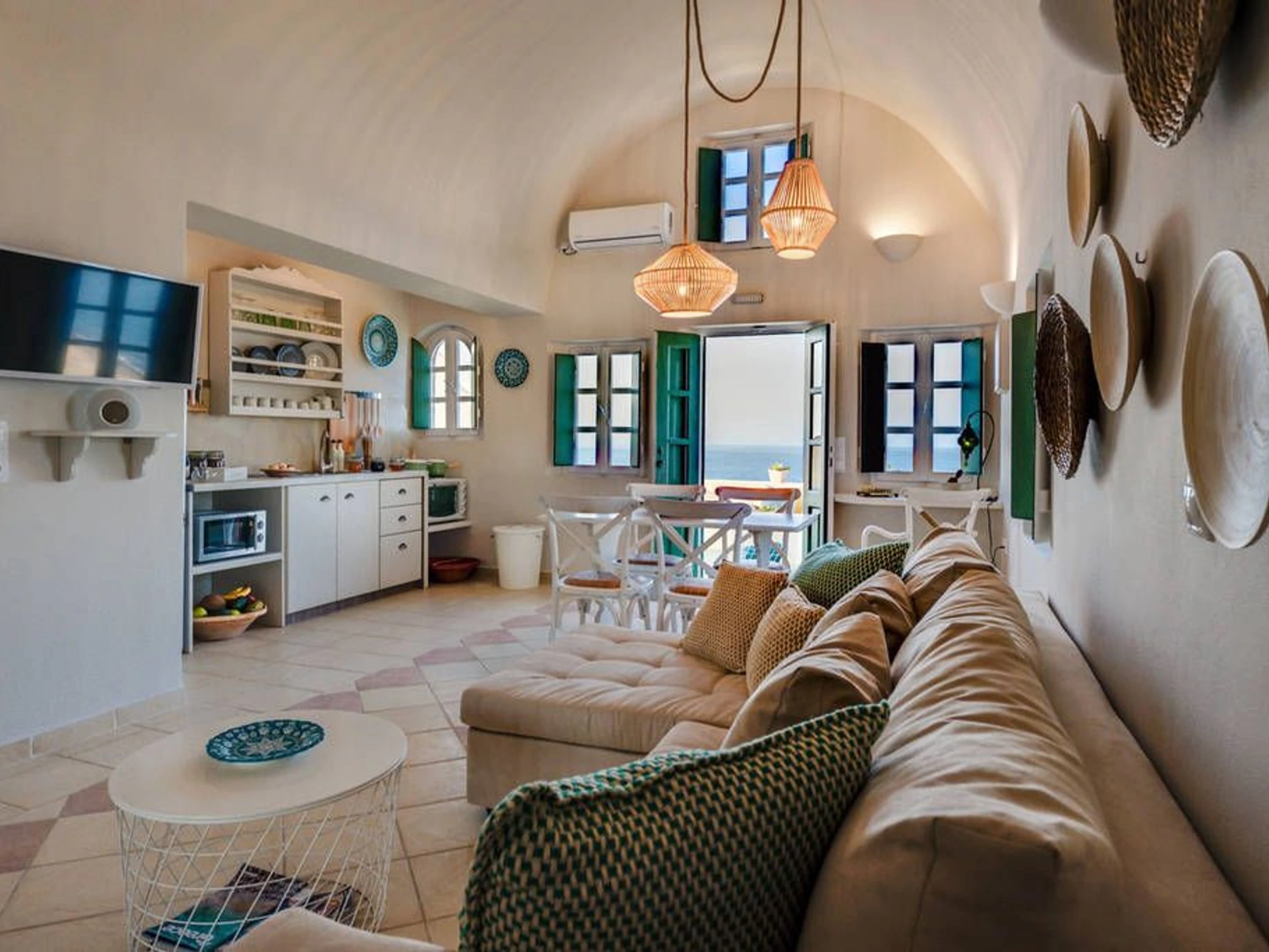 La cuisine, est équipée avec réfrigérateur, micro-ondes et cafetière.