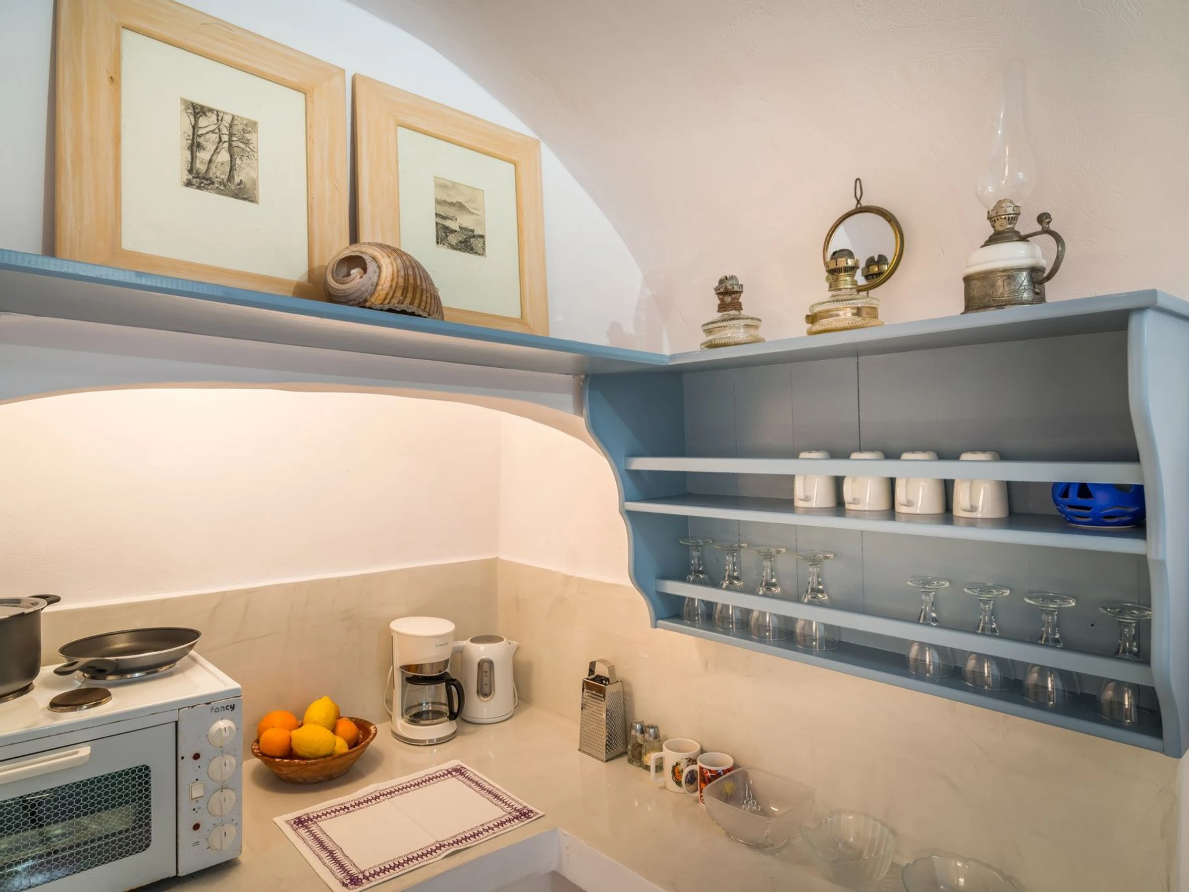 La cuisine, est équipée avec réfrigérateur, micro-ondes, four, congélateur et cafetière.