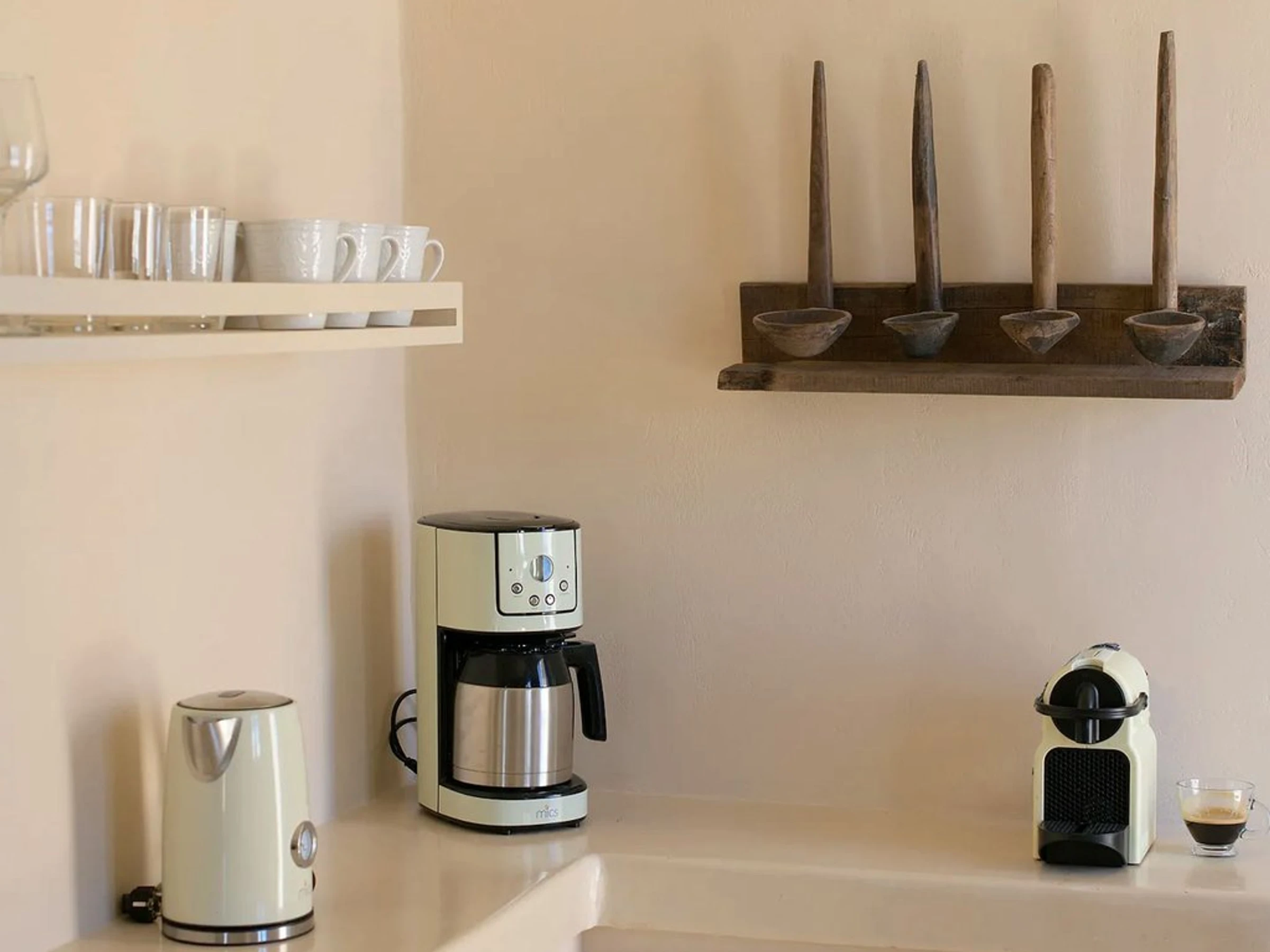 La cuisine, est équipée avec réfrigérateur et cafetière.