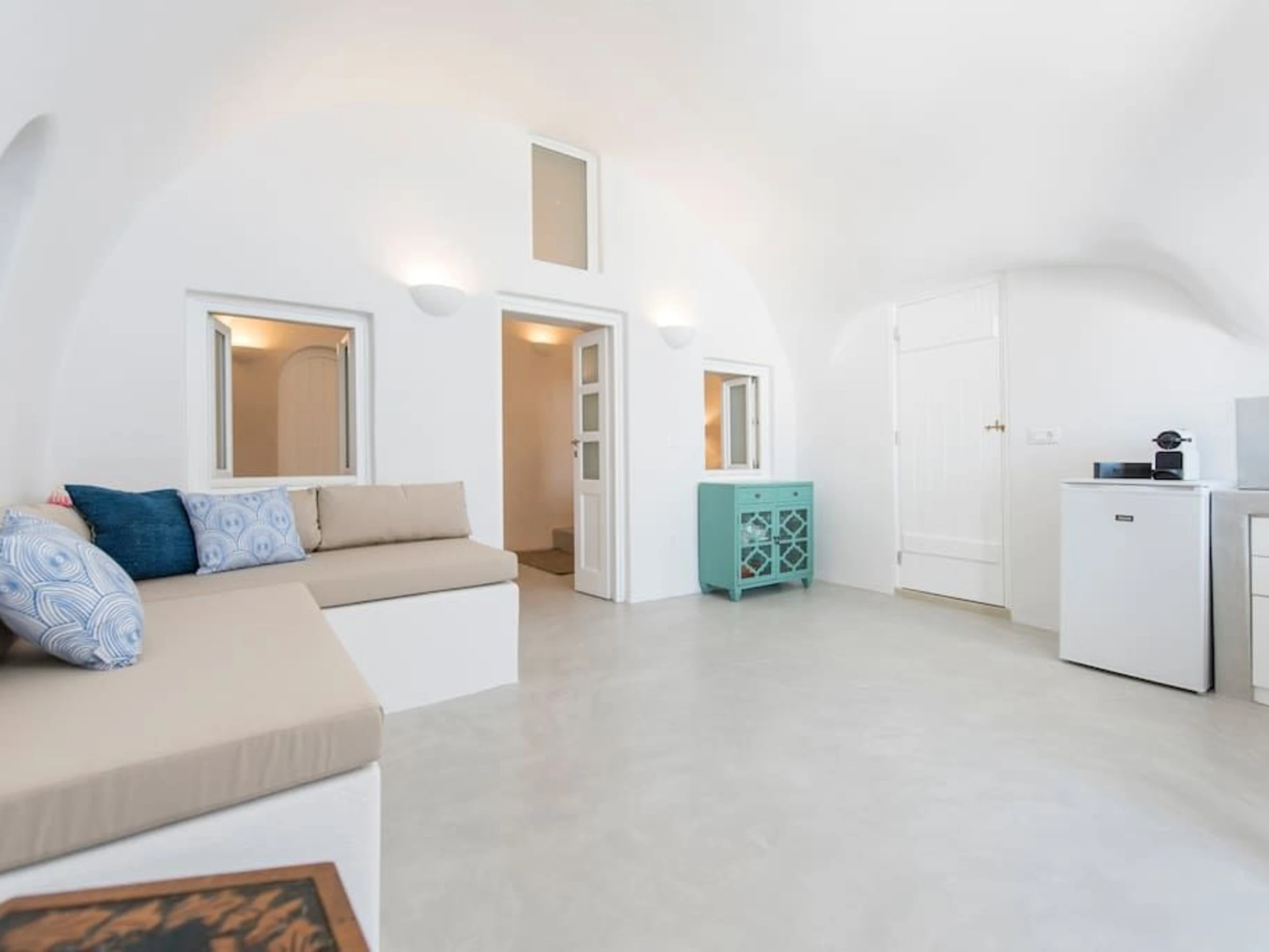 La cuisine, est équipée avec réfrigérateur, congélateur et cafetière.