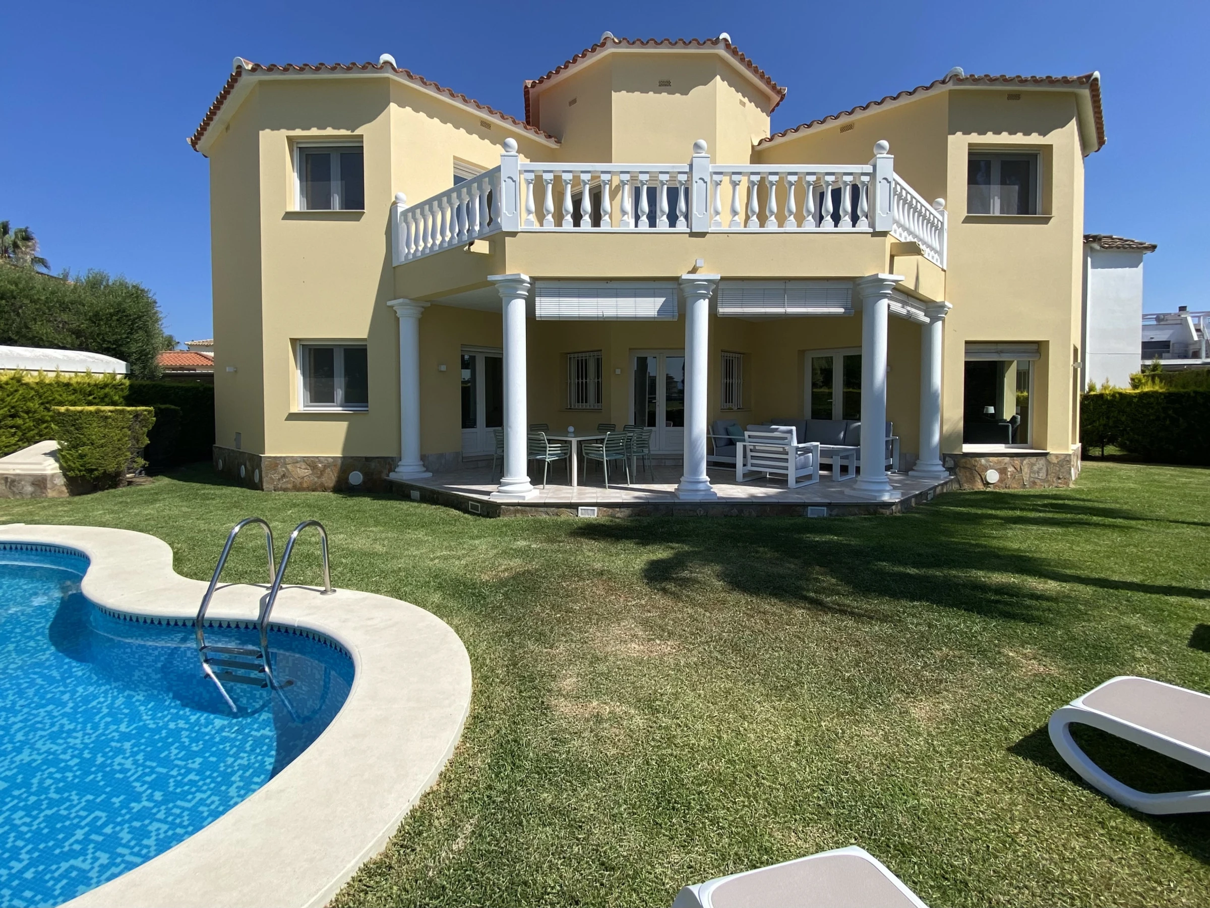 La Villa Barcelona est une maison de rêve. Elle se trouve sur la Costa Blanca entre Valence et Alicante dans la station balnéaire luxueuse d'Oliva Nova. La villa est située au bout d'une impasse dans un emplacement de premier choix (calme et central), directement sur la première ligne du golf. Vous pouvez atteindre à pied en quelques minutes l'une des plus belles plages d'Espagne avec son sable blanc fin, le terrain de golf, les terrains de paddle, d'excellents restaurants, etc., ainsi que le centre équestre international. Le terrain d'environ 800 m² dispose d'un parking privé et d'une piscine chauffée (8 x 4 m). La villa luxueusement équipée de 313 m² offre tout pour vos vacances de rêve. Construite en 2011 selon les normes de qualité de vie les plus élevées, la villa a été rénovée en 2025 après un changement de propriétaire et améliorée visuellement et techniquement. La villa exclusive dispose d'un confort de vie de qualité neuve, qui est exceptionnel pour un bien locatif ! Les quatre chambres principales, dont trois avec salles de bains de luxe en suite, une quatrième salle de bains, ainsi que les toilettes pour invités, l'espace de vie ouvert spacieux avec colonnes, grande salle à manger et cuisine de luxe ouverte sont remarquables. Toutes les chambres et l'espace de vie disposent d'un accès direct aux grandes terrasses du rez-de-chaussée et du premier étage avec une vue fantastique sur le golf et la chaîne de montagnes à l'horizon. Avec vue sur la piscine, se trouve au rez-de-chaussée la terrasse couverte encadrée de colonnes (environ 25 m²), qui offre toujours suffisamment d'ombre. Dans l'espace salon spacieux, vous et vos invités pouvez vous détendre à tout moment. Autour d'une table séparée pour 8 personnes, vous pouvez prendre vos repas en plein air par tous les temps. La maison a été équipée techniquement de manière haut de gamme. Elle dispose de sa propre installation solaire, d'une pompe à chaleur et d'une technique de climatisation intégrée de haute qualité (chaud/froid), qui crée toujours un climat intérieur agréable. La villa dispose d'un Wi-Fi performant, d'un téléviseur de 65 pouces avec connexion satellite et d'un 2e téléviseur. La maison a été meublée avec goût avec des meubles de design sélectionnés, des lits de haute qualité, des armoires à miroir intégrées, des appareils de marque, etc. Les animaux de compagnie sont les bienvenus après discussion ! Le jardin est entièrement clôturé et bordé de haies de thuyas. Avec la Villa Barcelona, vous choisissez un objet exceptionnel qui vous permettra de passer de magnifiques vacances. Nous nous réjouissons de vous accueillir comme nos nouveaux invités !
