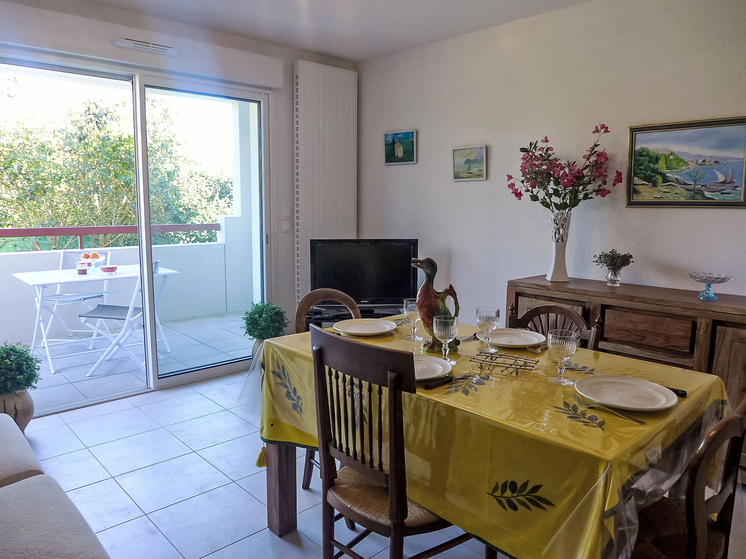 Apt 2 pièces 40 m2 au 1er étage. Aménagement confortable: séjour/salle à manger avec TV. Sortie sur la terrasse. 1 chambre avec 1 grand-lit (140 cm, longueur 190 cm). Cuisine ouverte (4 plaques vitrocéramiques, micro-ondes, cafetière électrique). Douche/WC. Meubles de terrasse. A disposition: lave-linge, fer à repasser. Internet (Connexion WIFI, en sus). Place de parking No 31 (couvert). Veuillez noter: logement non-fumeur. Détecteur de fumée. [hidden]