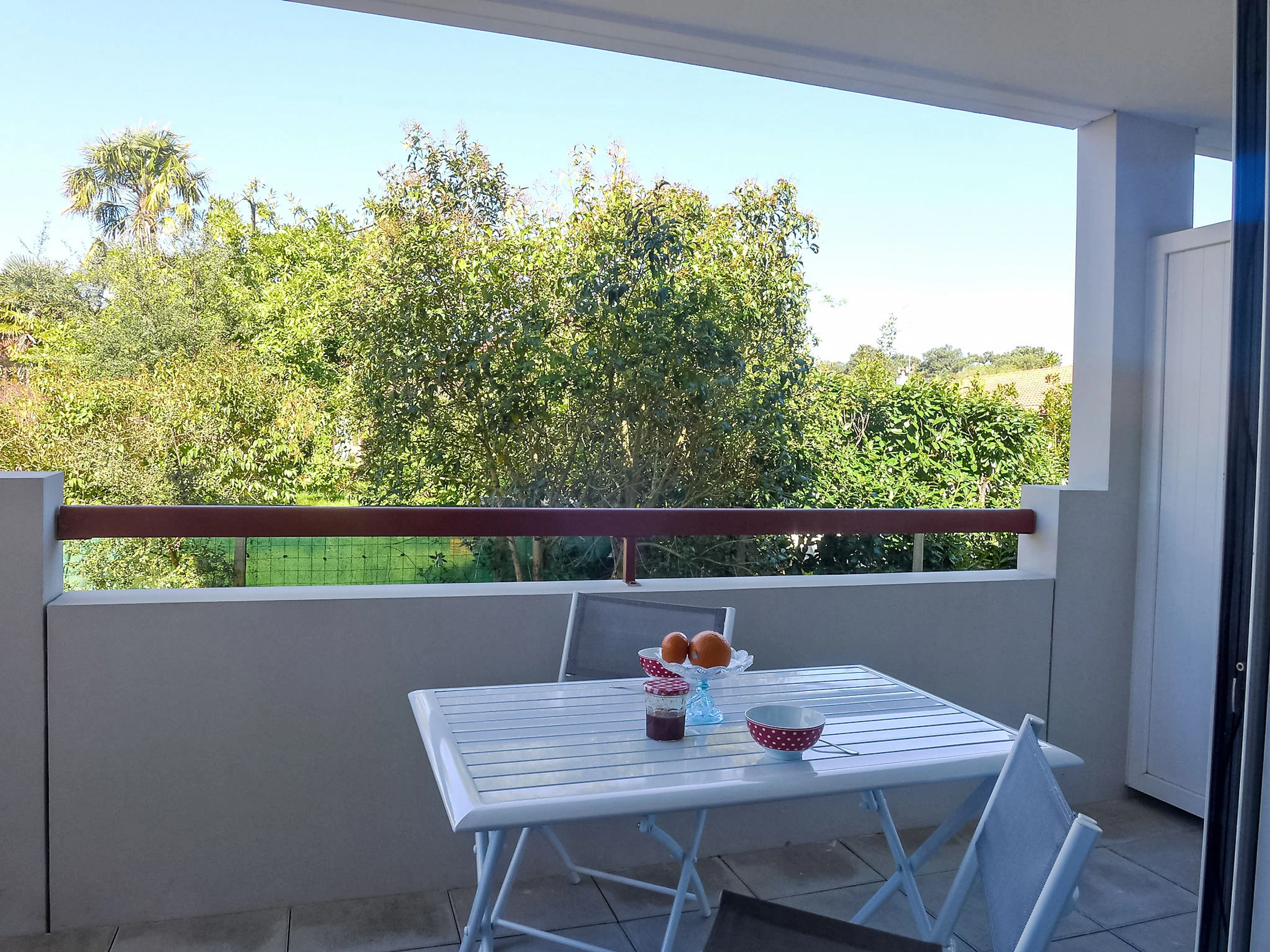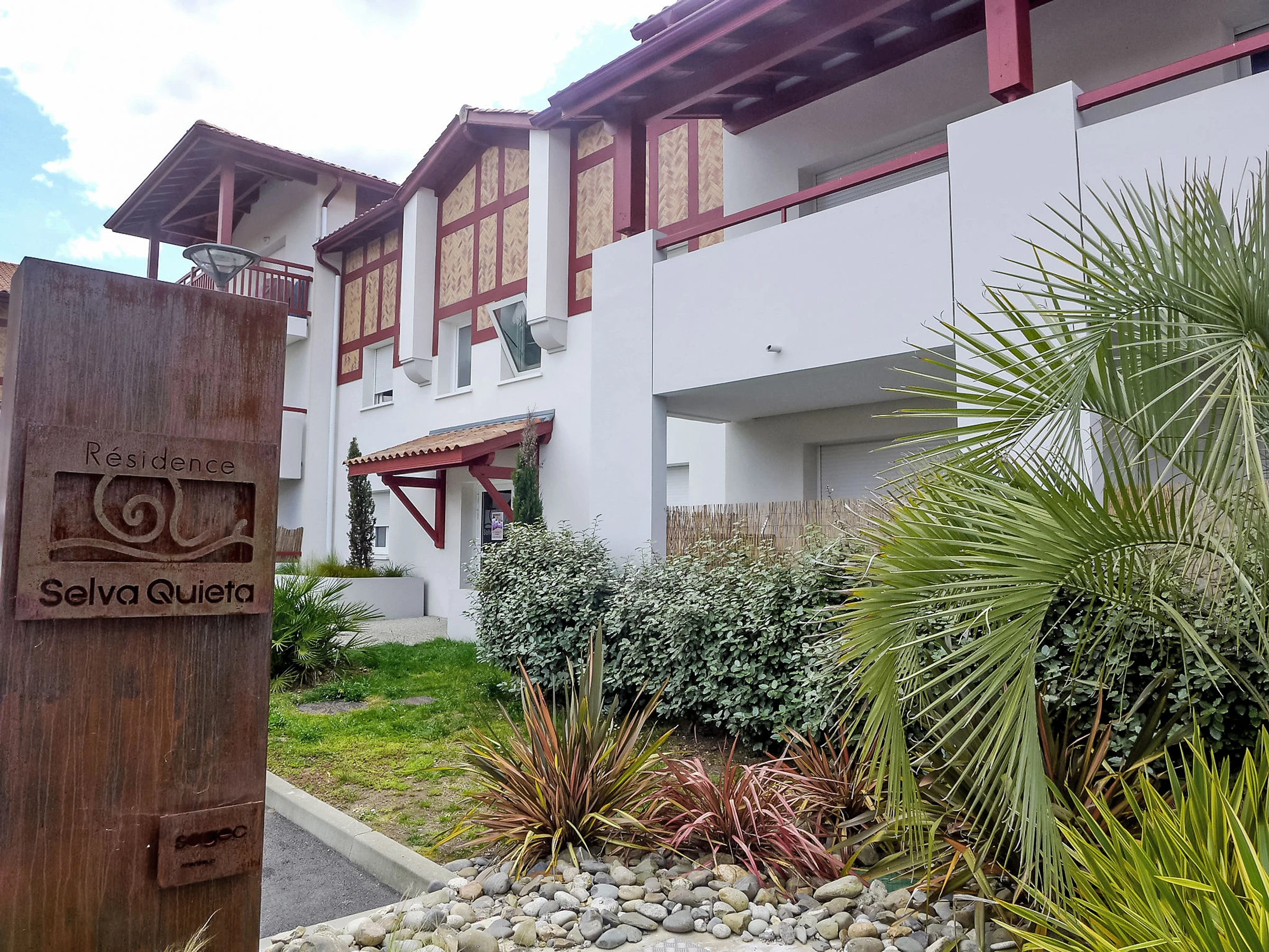 Ondres à 15 km de Hossegor: Petite résidence "Selvia Quetia", année de construction 2013. Dans la localité, à 500 m du centre, situation tranquille, à 2.5 km de la mer. Magasins 500 m, supermarché 1.5 km, bar 500 m, arrêt de bus 500 m, gare ferroviaire 800 m, plage de sable 2.5 km. La remise des clés a lieu à l’agence de HOSSEGOR, 15 km.