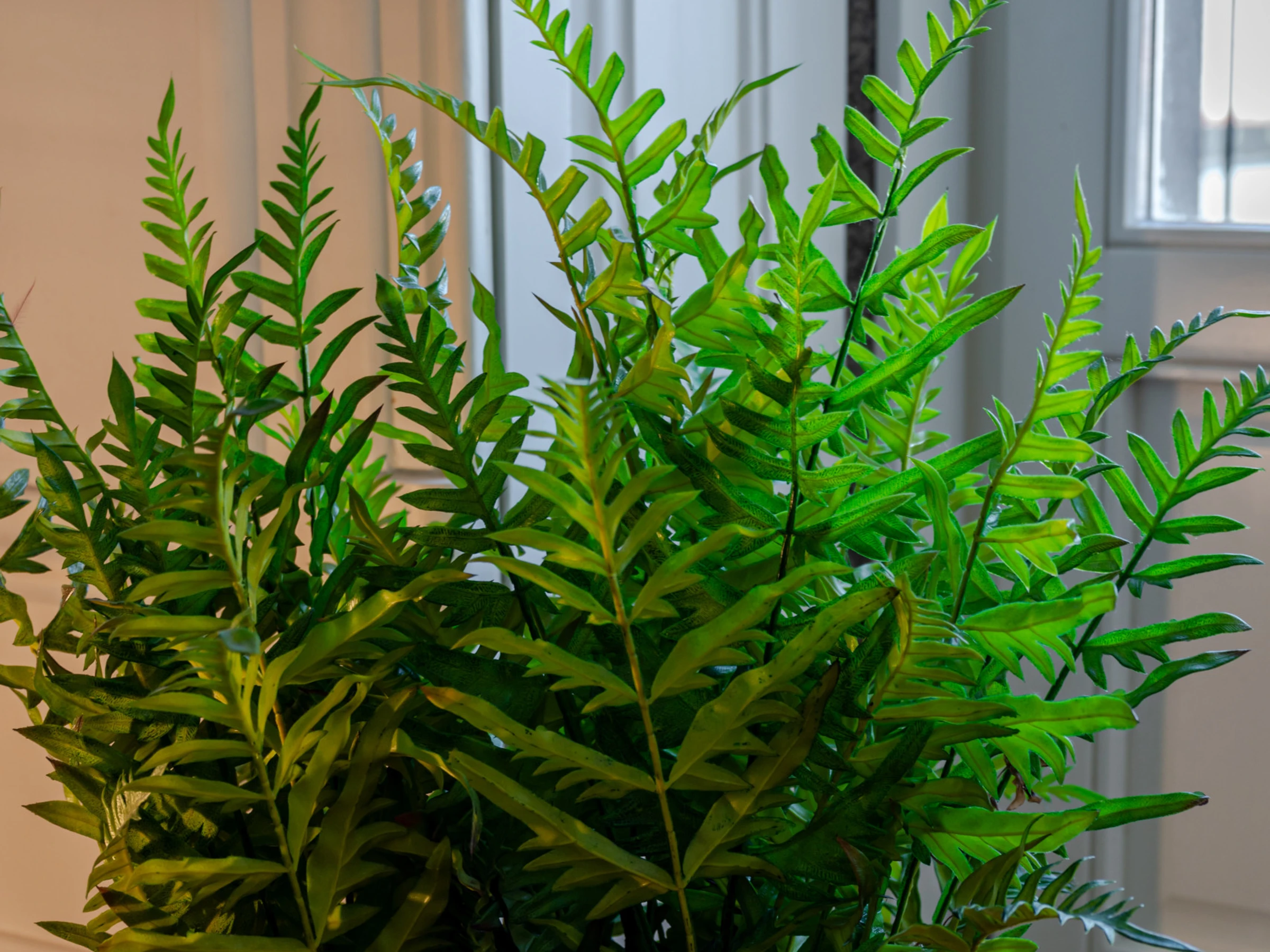 - Une table à manger ronde avec de hautes fenêtres laissant entrer une magnifique lumière naturelle ;