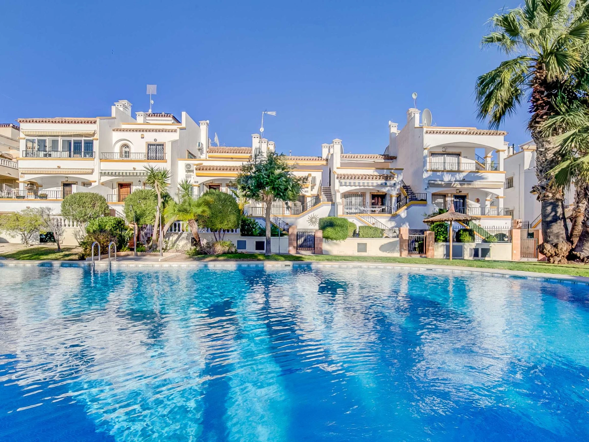 Résidence confortable "Los Dolses". Situation tranquille, ensoleillée, à 3 km de la mer, à 3 km de la plage. En commun: jardin avec pelouse, piscine en forme d’haricot (80 m2, profondeur 50 - 210 cm, disponibilité saisonnière: [hidden] - [hidden] Bassin pour les enfants, douche extérieure. Infrastructures de la Maison: ascenseur. Supermarché, restaurant, bar, café 500 m, arrêt de bus 2 km. Port plaisance 8 km, terrain de golf (18 trous) 3 km. Attractions à proximité: Cartagena 50 km, Alicante 70 km. Le propriétaire n'accepte pas les groupes de jeunes. Environnement très sensible au bruit. Silence et bonne tenue exigés.