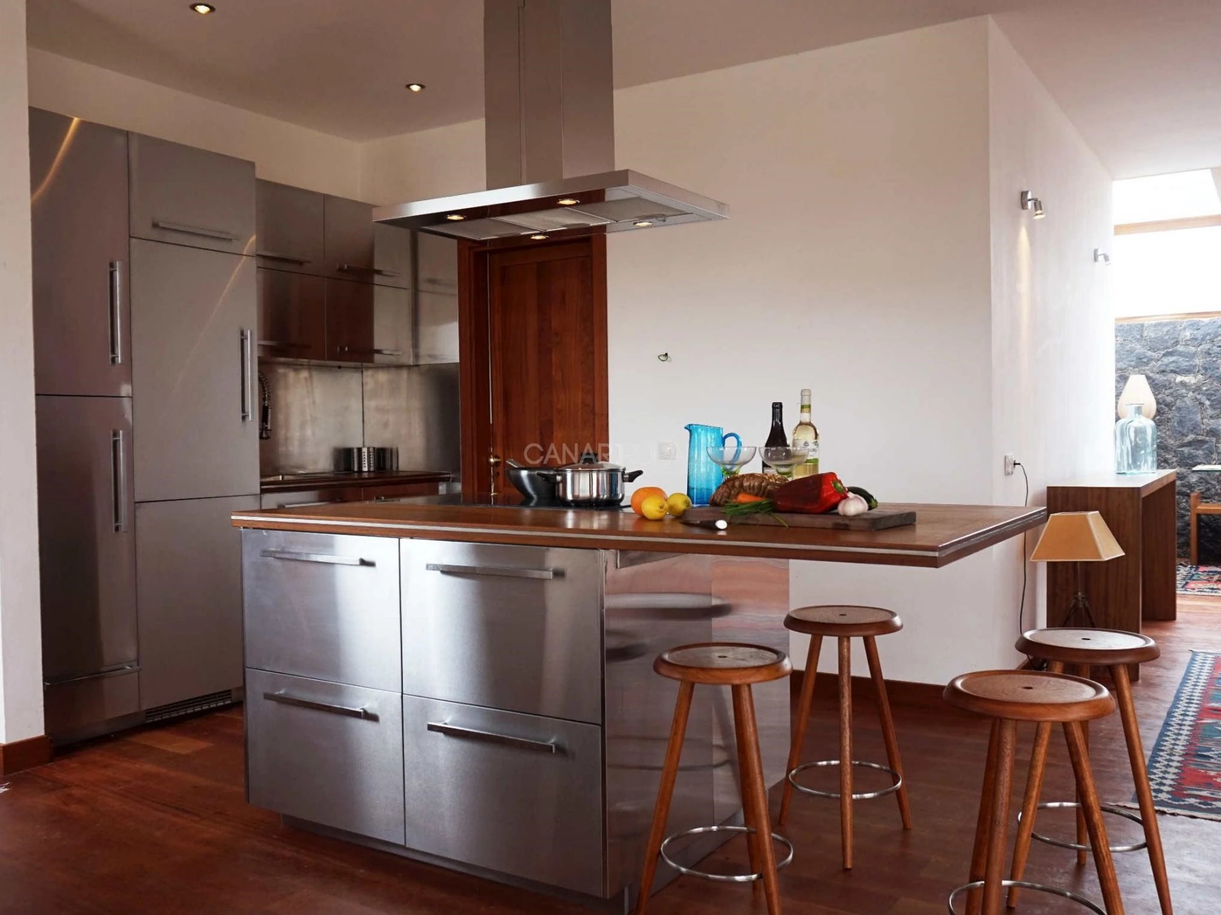 A l’intérieur, on distingue une décoration éclectique et élégante, une atmosphère éclairée et accueillante, très lié à l’esprit relaxé et informé de l’île. De grandes baies vitrées permettent de faire entrer la lumière naturelle et offrent des vues impressionnantes.
