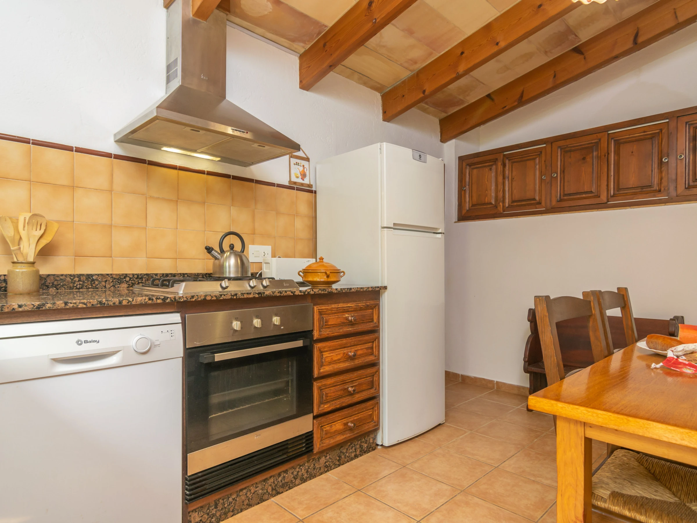 La cuisine, est équipée avec micro-ondes, congélateur, lave-vaisselle, cafetière et grille pain.