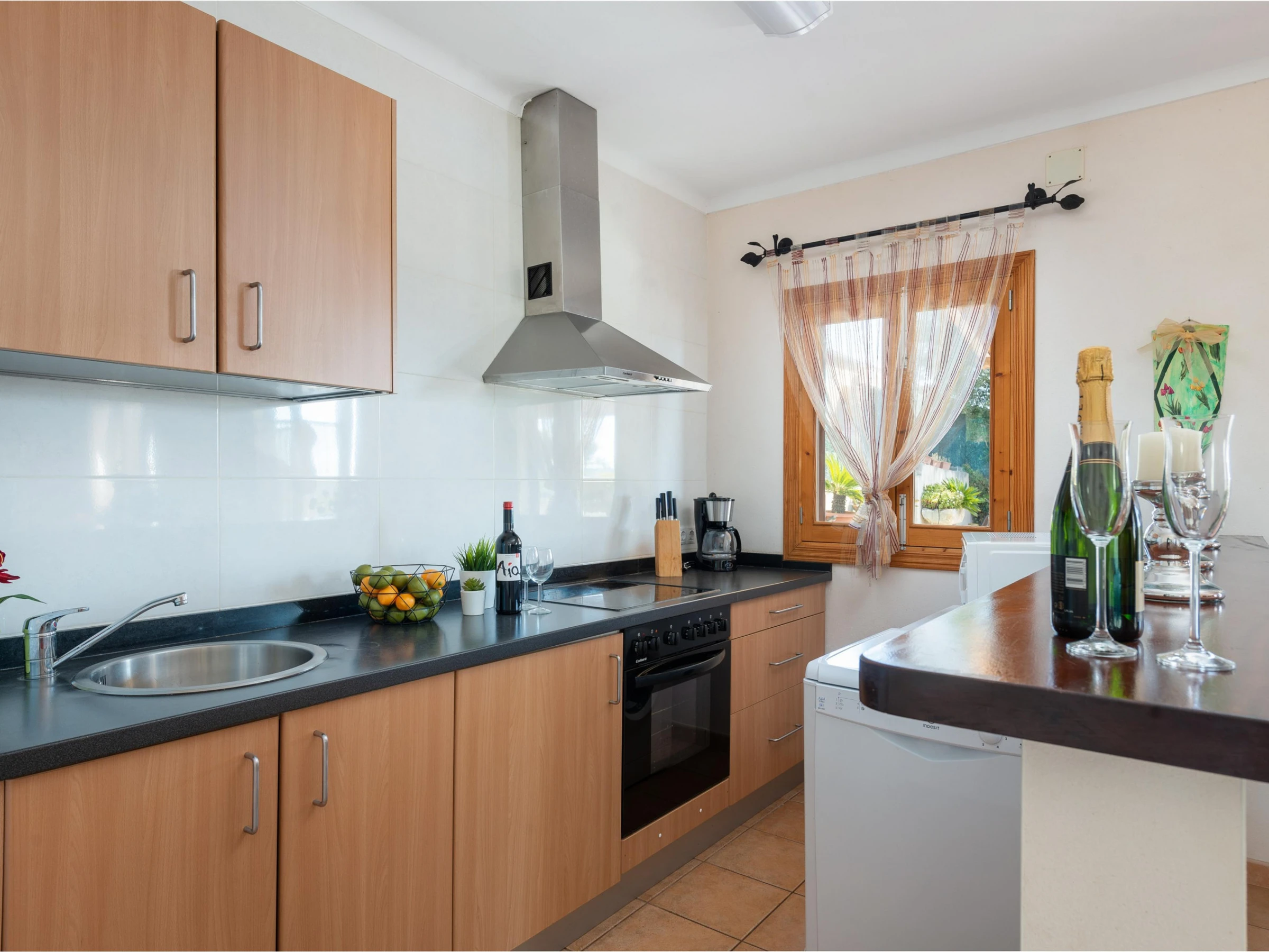 La cuisine, est équipée avec réfrigérateur, micro-ondes, four, congélateur, lave-vaisselle, cafetière et grille pain.