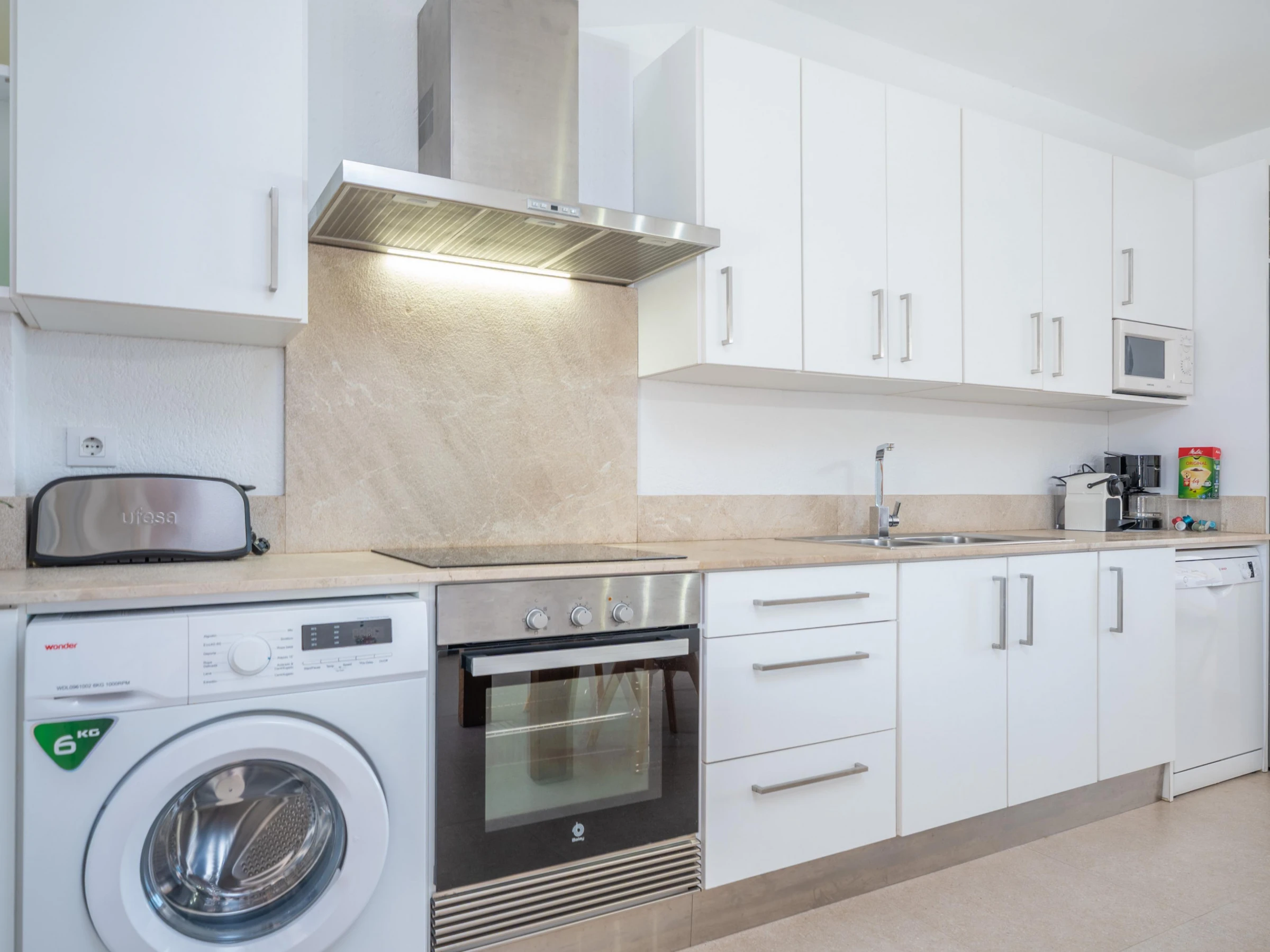 La cuisine, est équipée avec réfrigérateur, micro-ondes, four, congélateur, lave-vaisselle, cafetière et grille pain.
