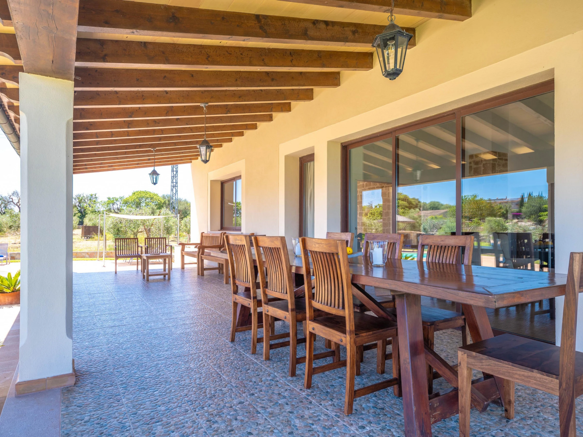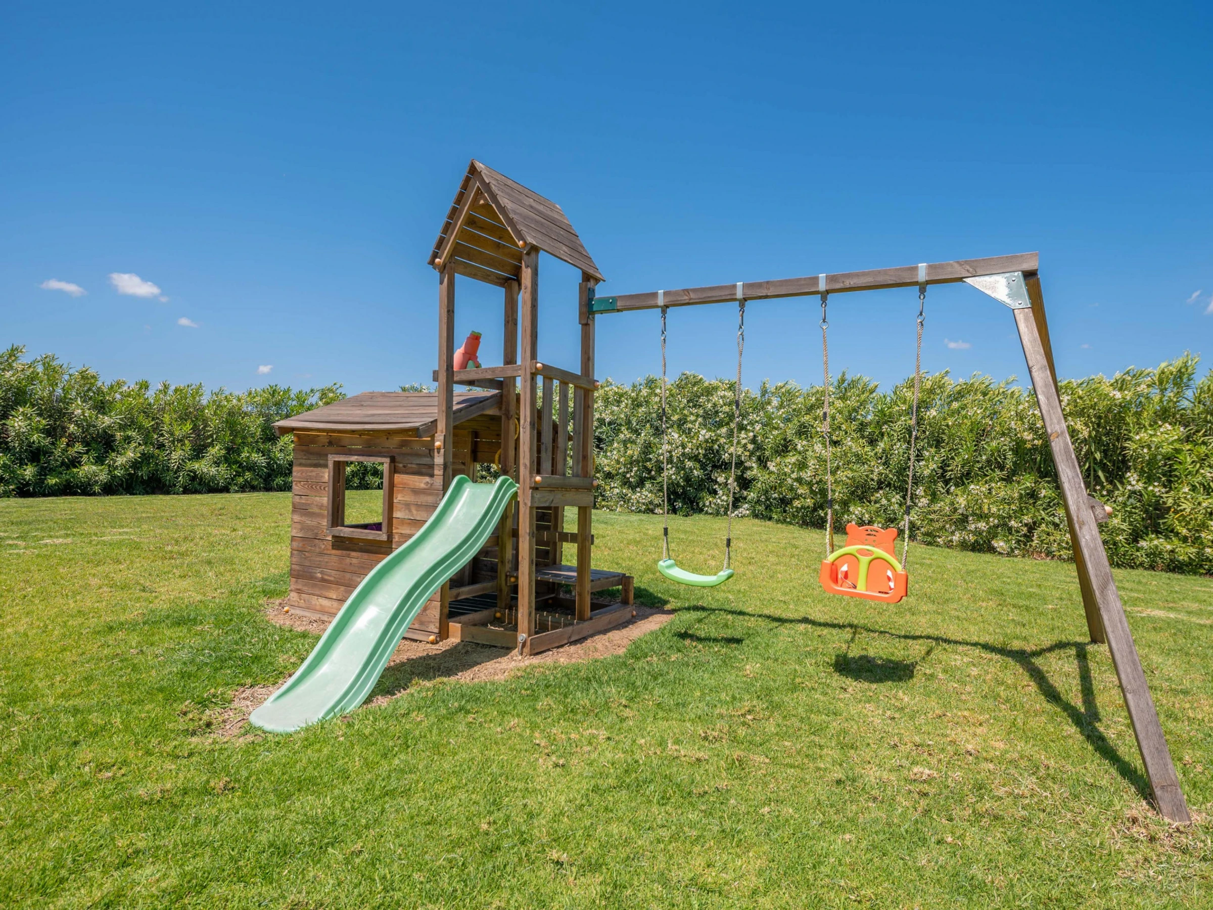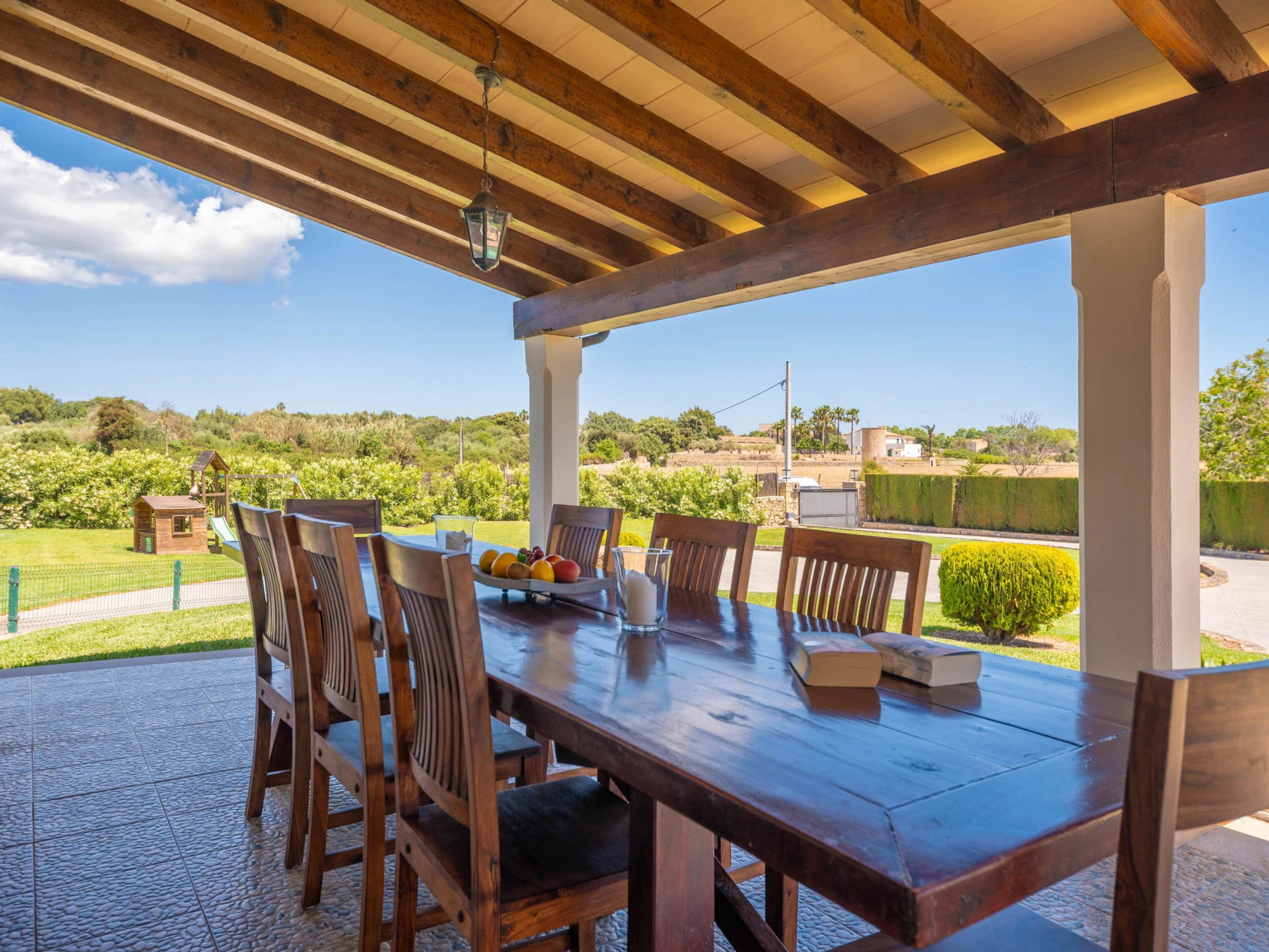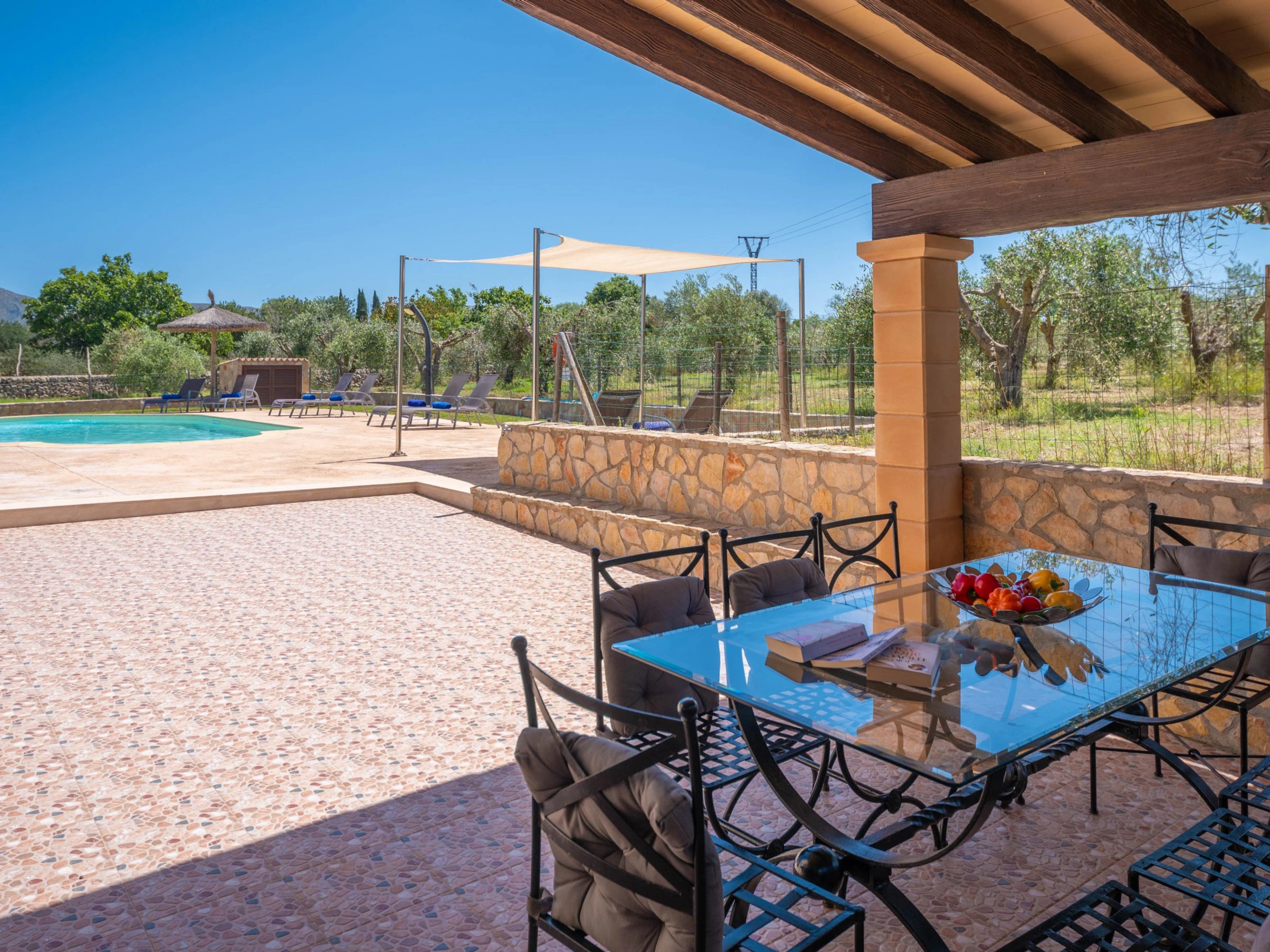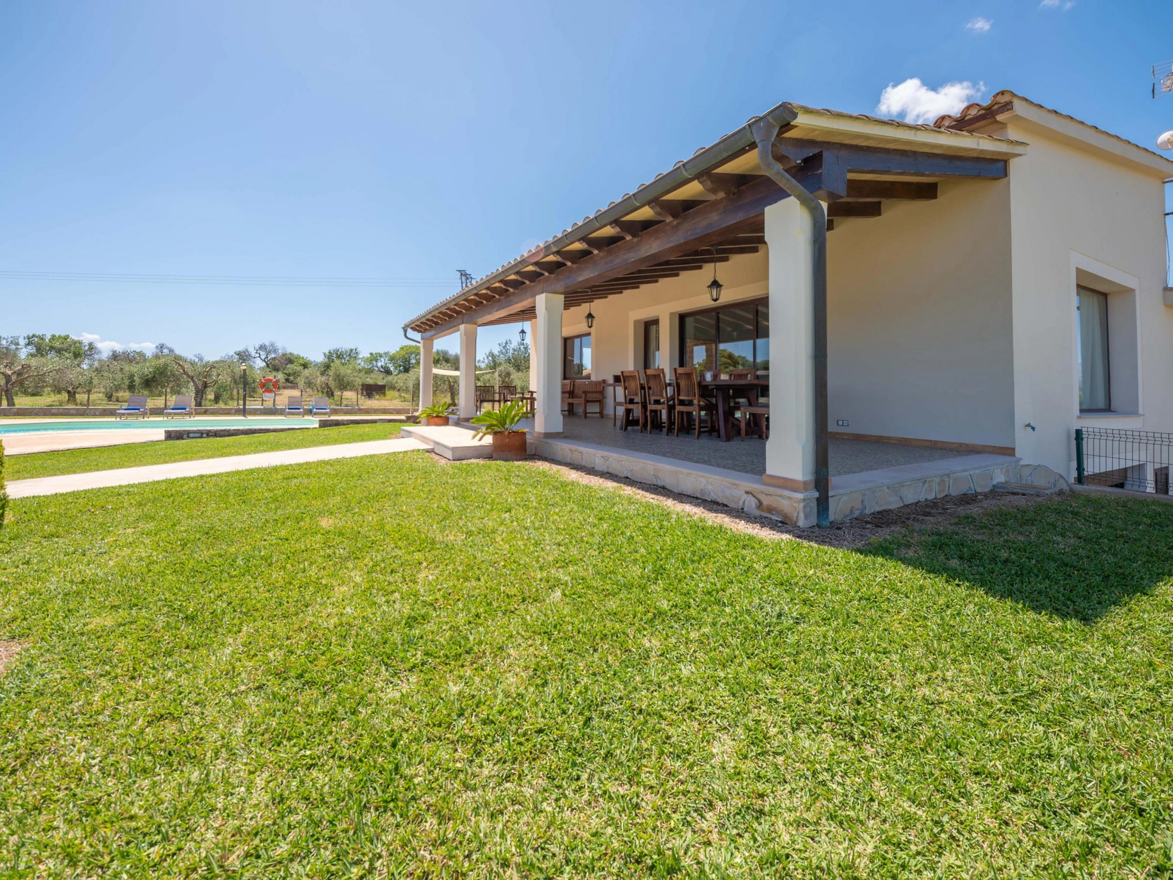 Cette magnifique villa offre des extérieurs spectaculaires. Le jardin verdoyant, la campagne et les montagnes entourent la maison et une magnifique piscine privée au sel. Elle mesure 9,4 x 4,2 m et a une profondeur de 1 à 1,7 m. Autour de la piscine, vous trouverez 8 chaises longues pour bronzer, un espace petit-déjeuner extérieur et une véranda pour profiter d'un barbecue. De plus, la véranda principale vous invite à vous détendre sur le canapé d'extérieur ou à dîner le soir. Les plus petits pourront profiter d'une aire de jeux dans le jardin.