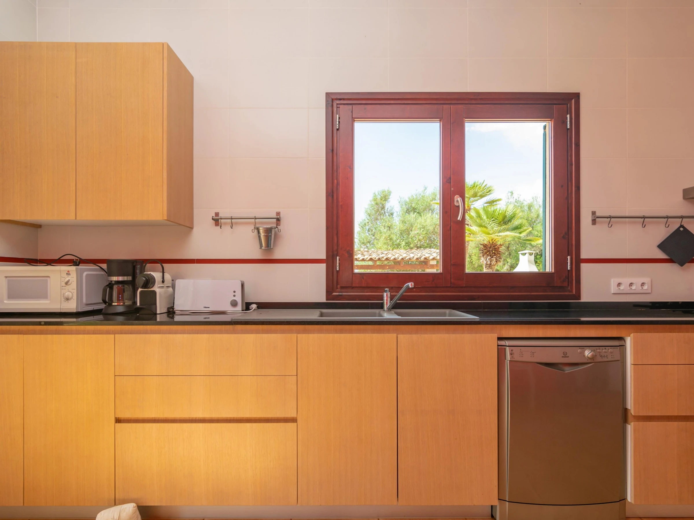 La cuisine, est équipée avec réfrigérateur, micro-ondes, four, congélateur, lave-vaisselle, cafetière et grille pain.