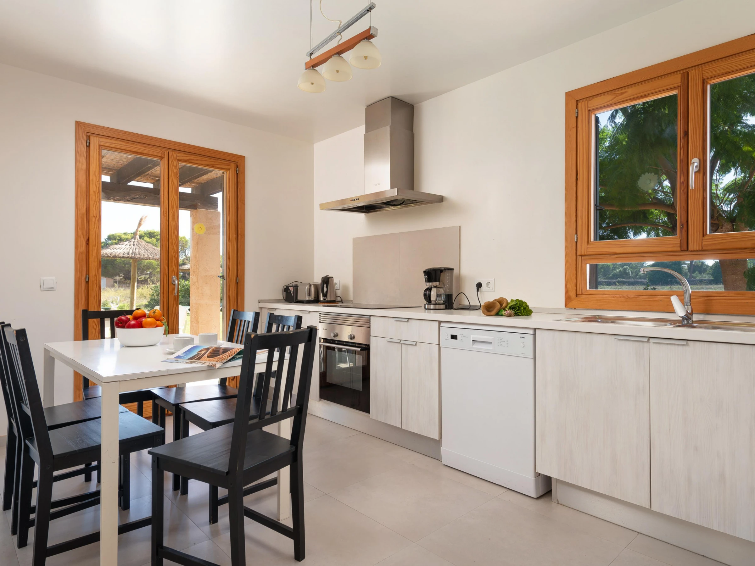 La cuisine, est équipée avec réfrigérateur, micro-ondes, four, congélateur, lave-vaisselle, cafetière et grille pain.