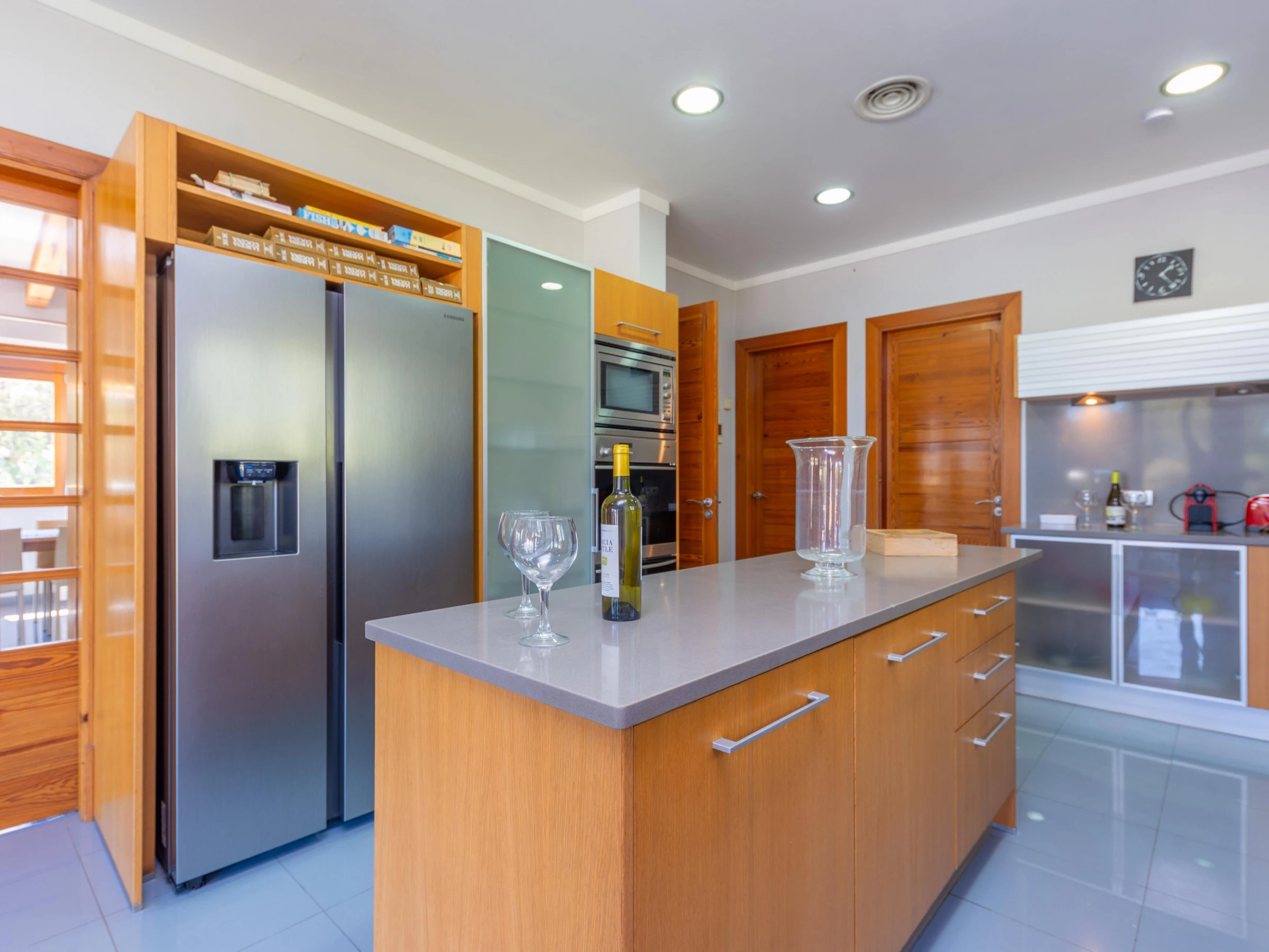 La cuisine, est équipée avec réfrigérateur, micro-ondes, four, congélateur, lave-vaisselle, cafetière et grille pain.